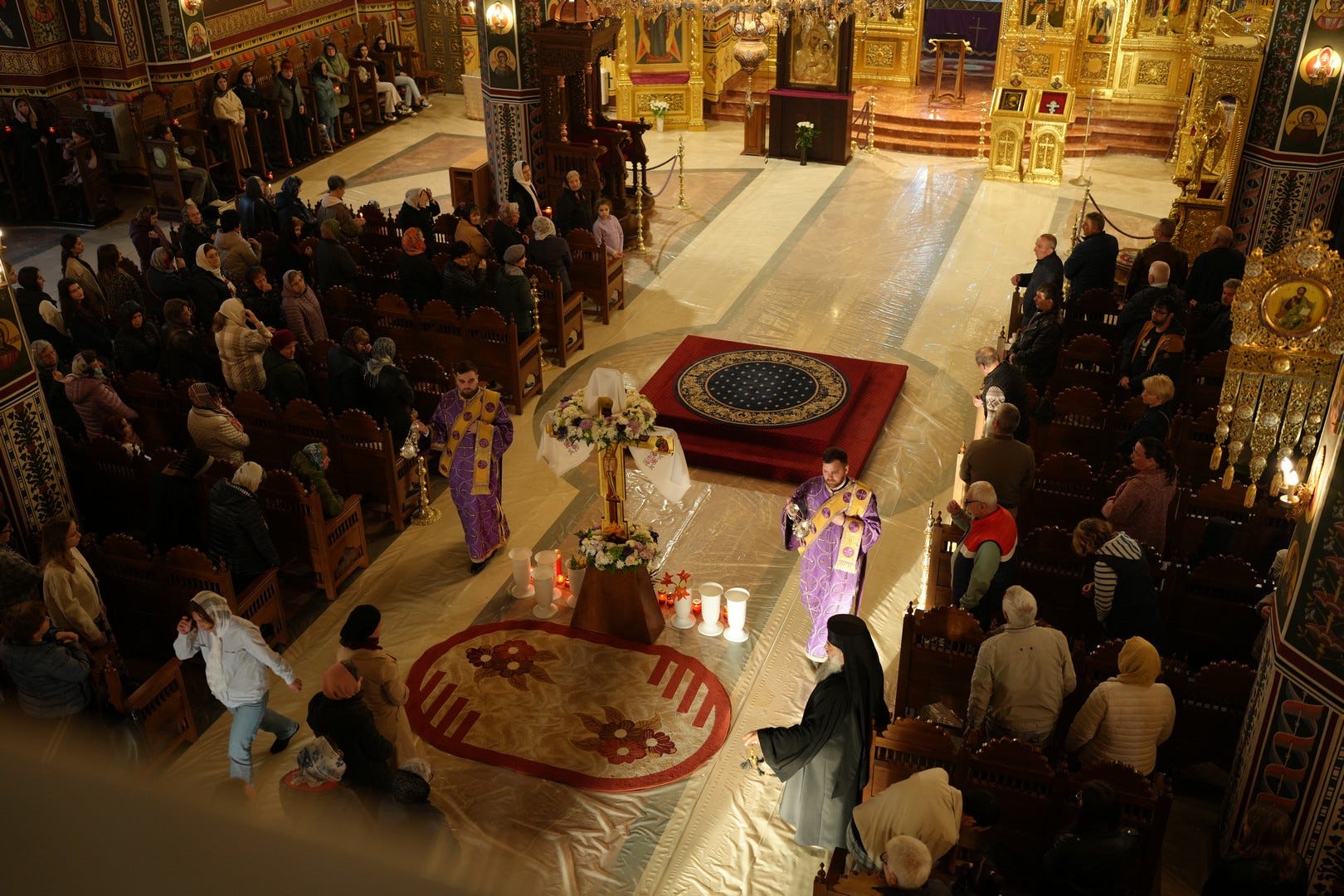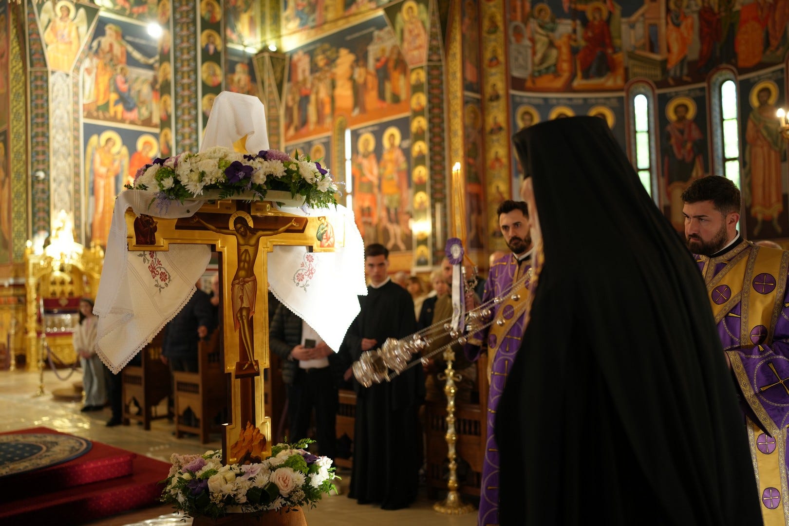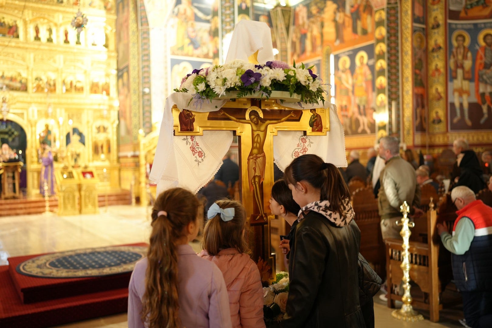 În cadrul slujbei, Sfânta Cruce a fost adusă în mijlocul bisericii și așezată spre închinare, într-un moment deosebit de încărcat spiritual, simbolizând jertfa Mântuitorului pentru mântuirea lumii.