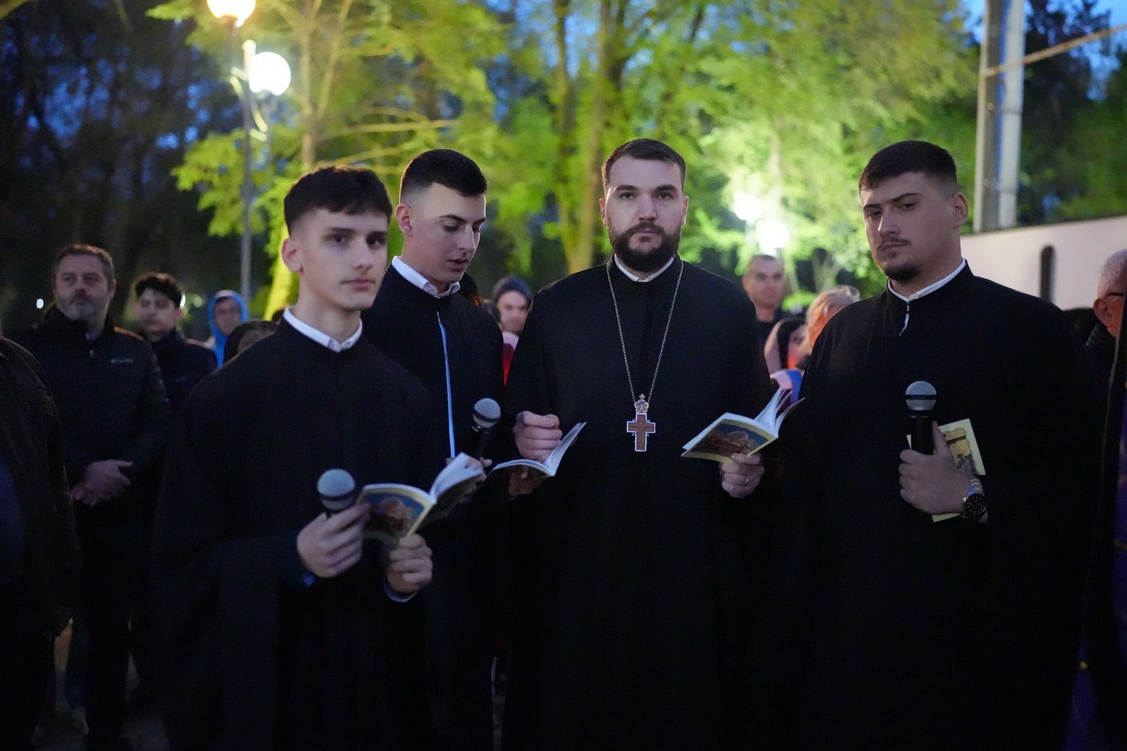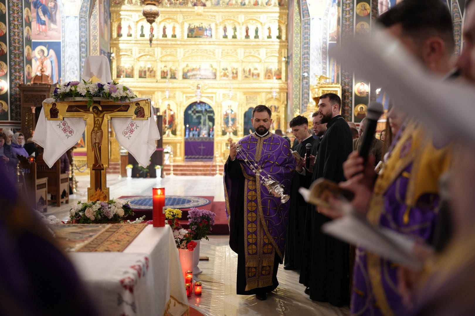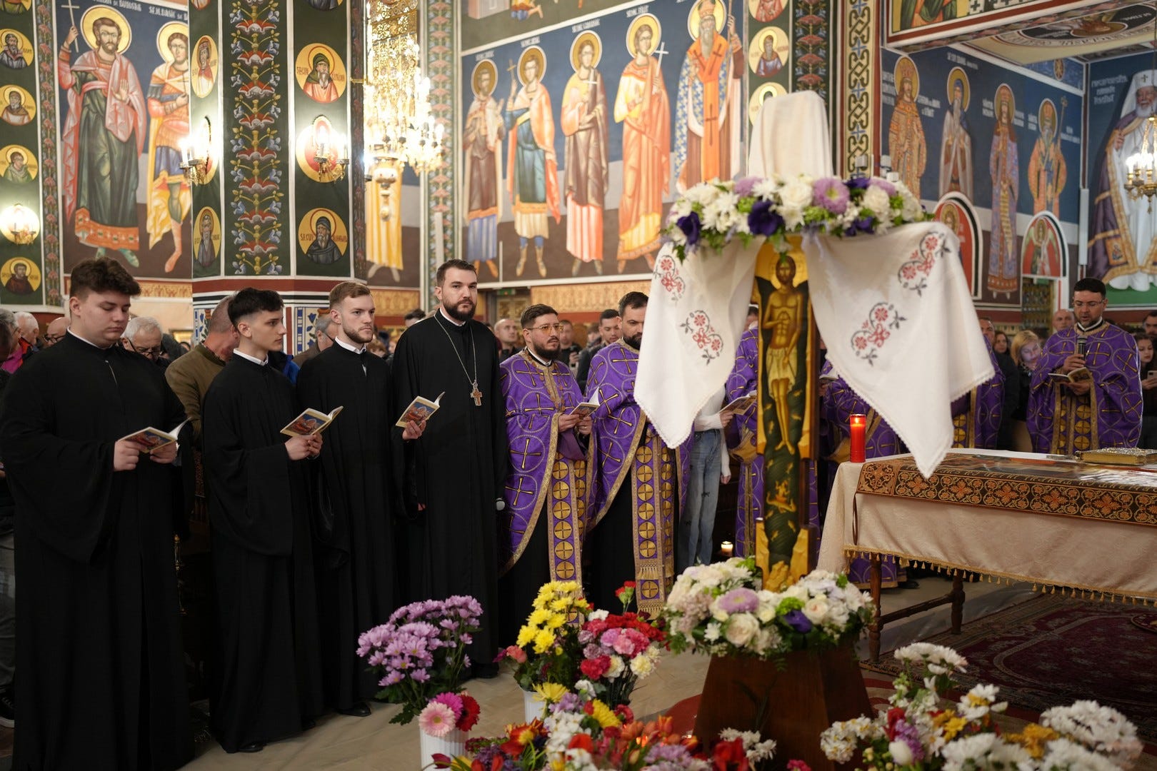 La slujbă au participat numeroși credincioși, care s-au rugat și au cântat imnul prohodului Domnului, în patru grupuri corale.