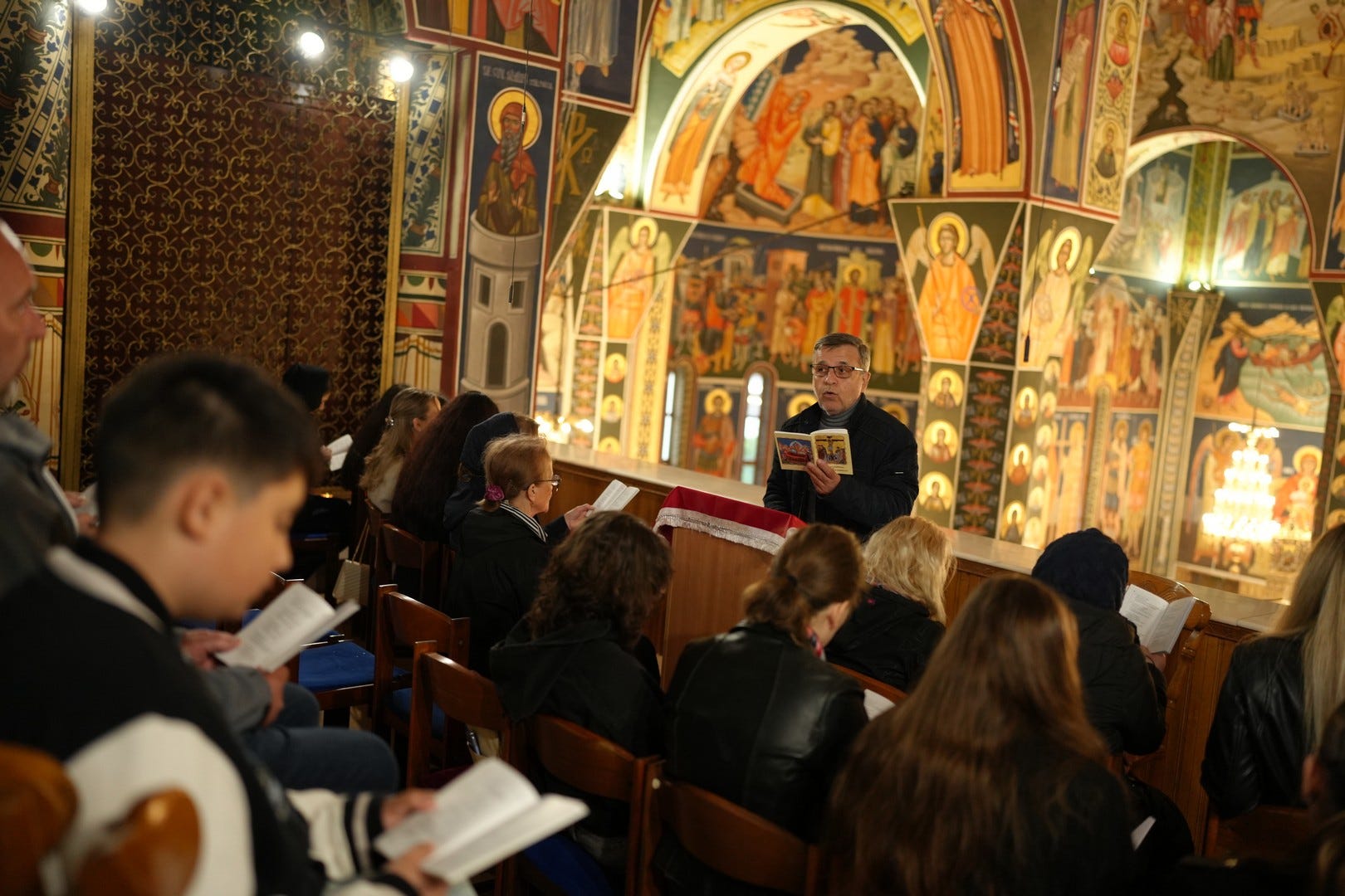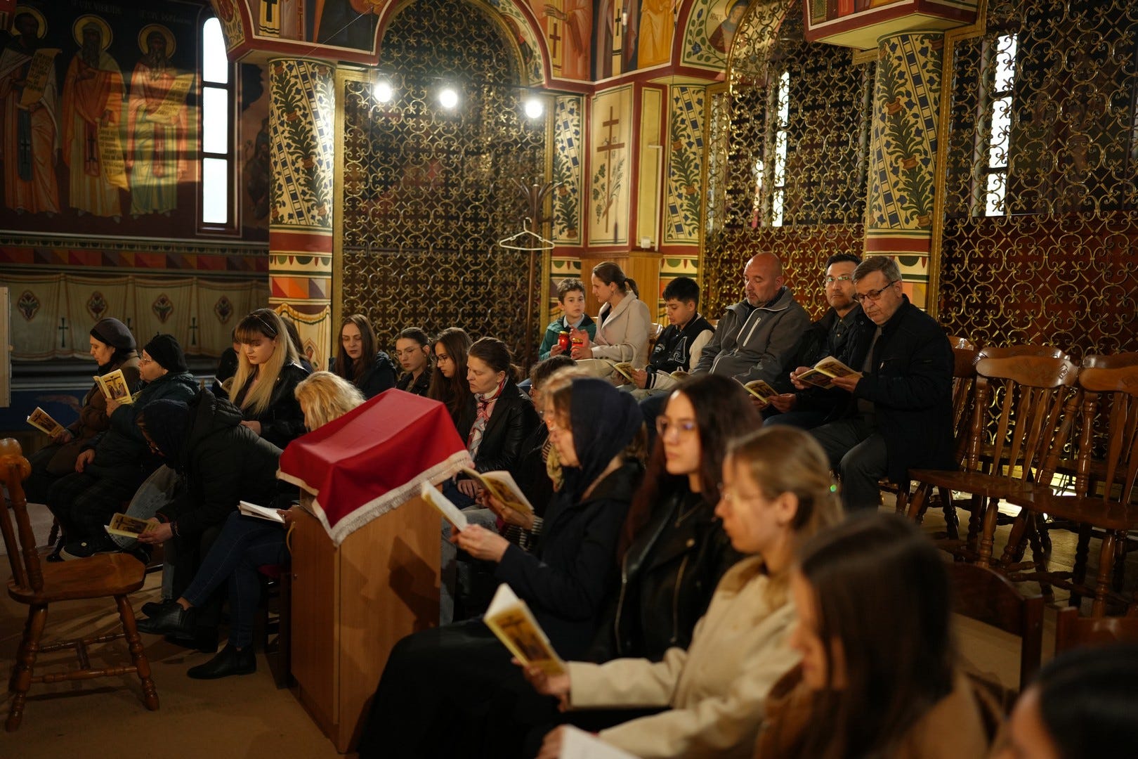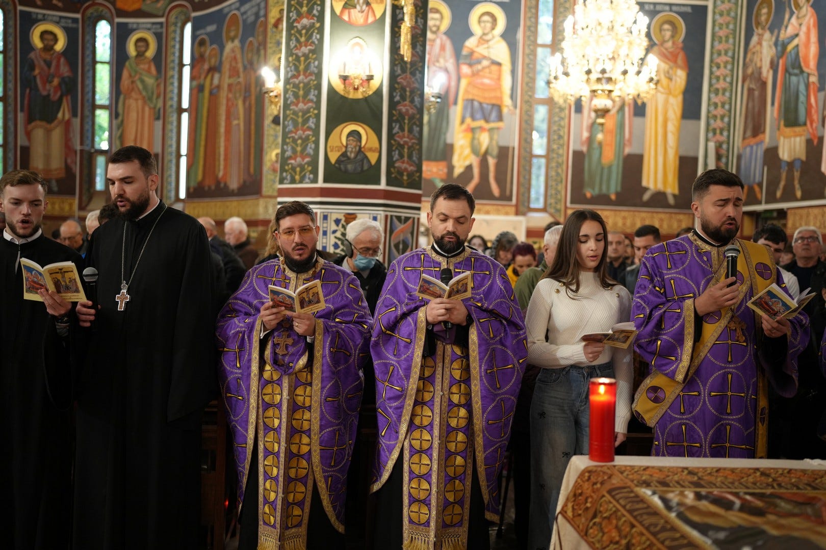 La slujbă au participat numeroși credincioși, care s-au rugat și au cântat imnul prohodului Domnului, în patru grupuri corale.