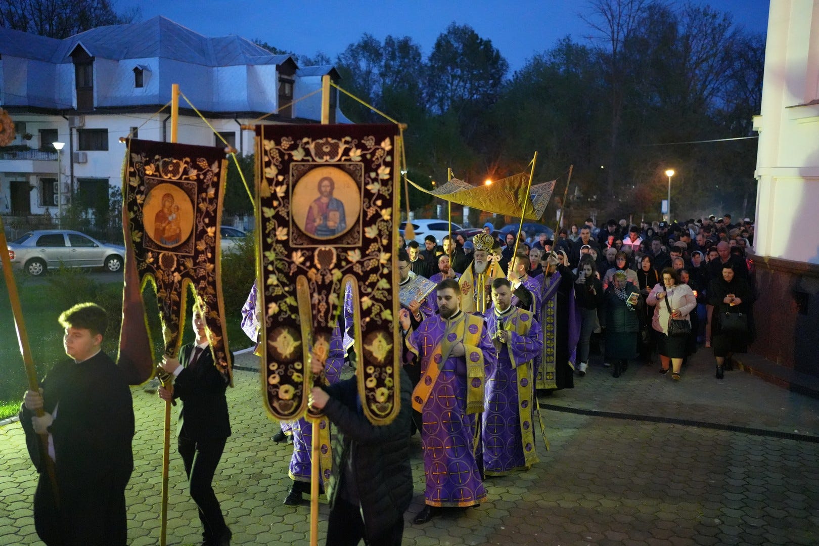 La sfârșitul Deniei, Preasfințitul Părinte Episcop, preoți și credincioși, au înconjurat, în procesiune, în jurul Catedralei Episcopale cu Sfântul Epitaf, o pânză pe care este pictată punerea în mormânt a Mântuitorului. După ce toți credincioșii au intrat în catedrală, trecând pe sub Sfântul Epitaf, acesta a fost așezat pe Sfânta Masă, unde va rămâne până la Praznicul Înălțării Domnului.