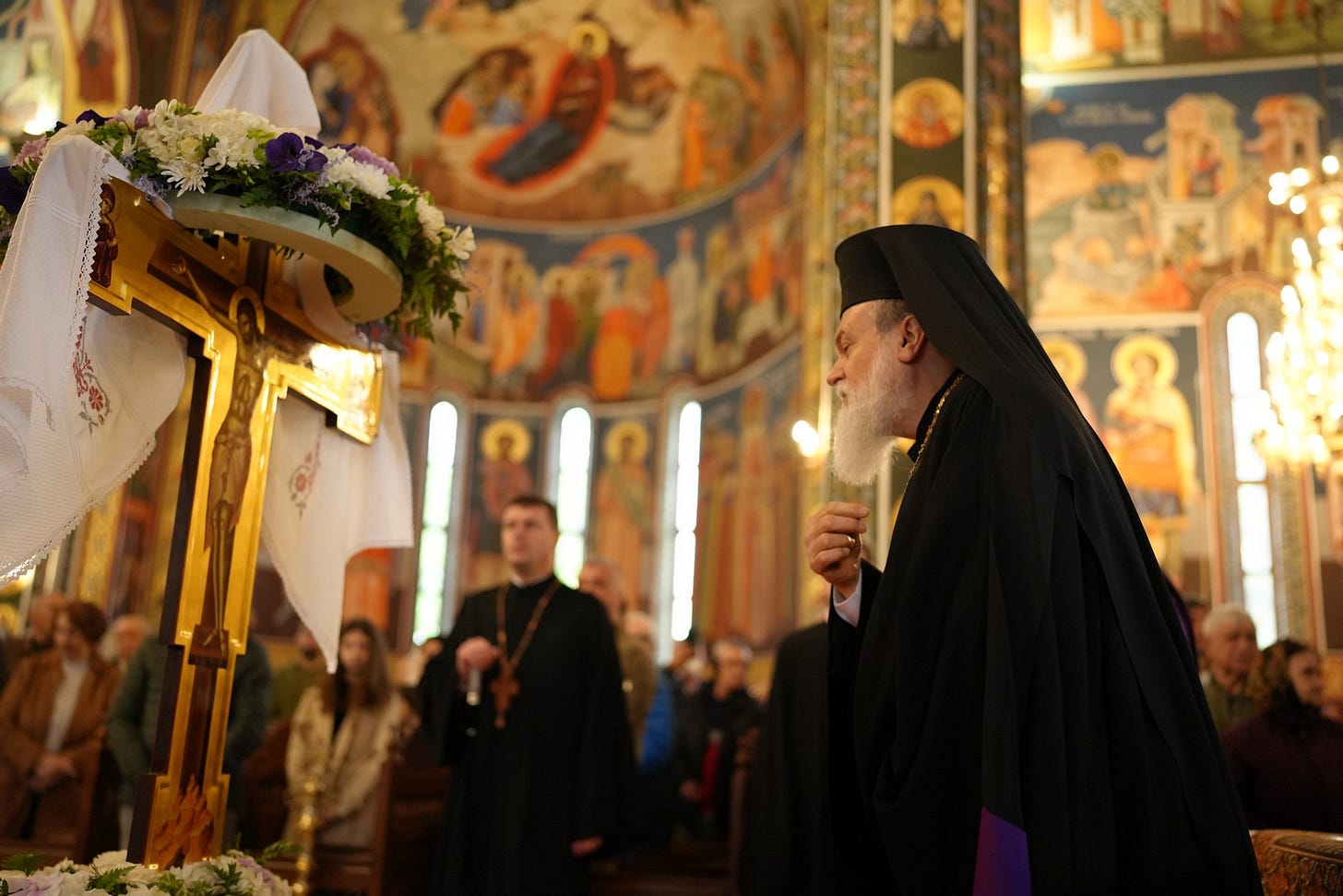 Preasfinția Sa a vorbit credincioșilor prezenți despre dramatismul acestei zile, numită și Sfânta și Marea Vineri, când Mântuitorul a fost judecat și osândit la instigarea conducătorilor templului, a fost răstignit, a murit pe Cruce și a fost îngropat în mormântul nou de lângă Golgota.