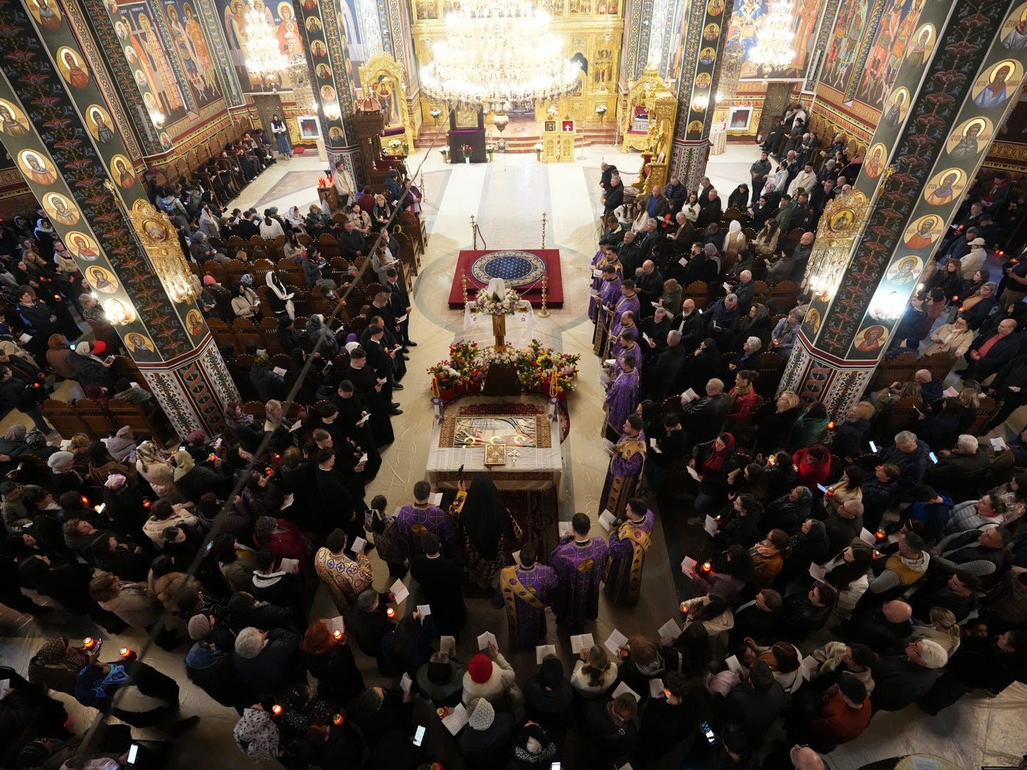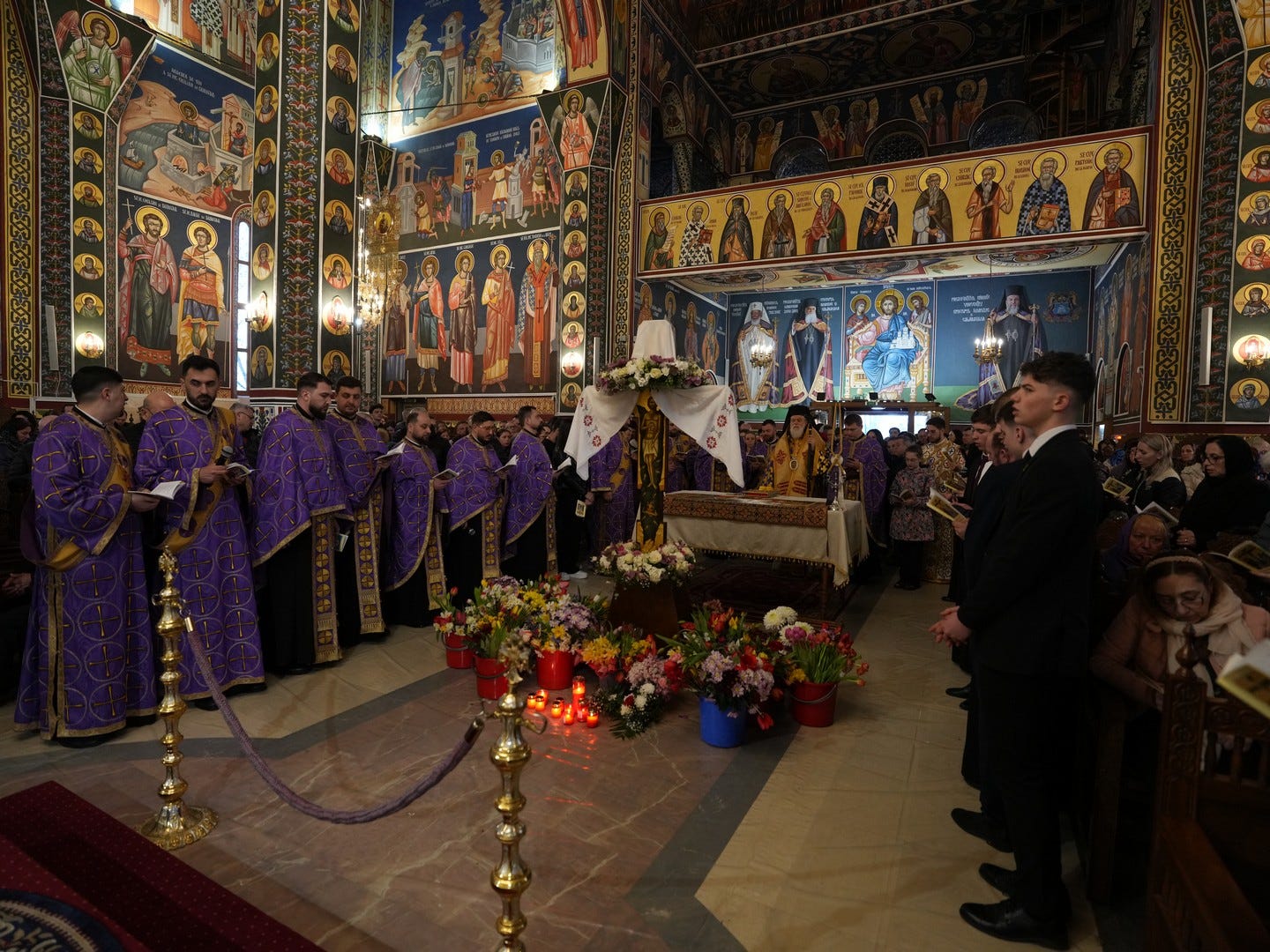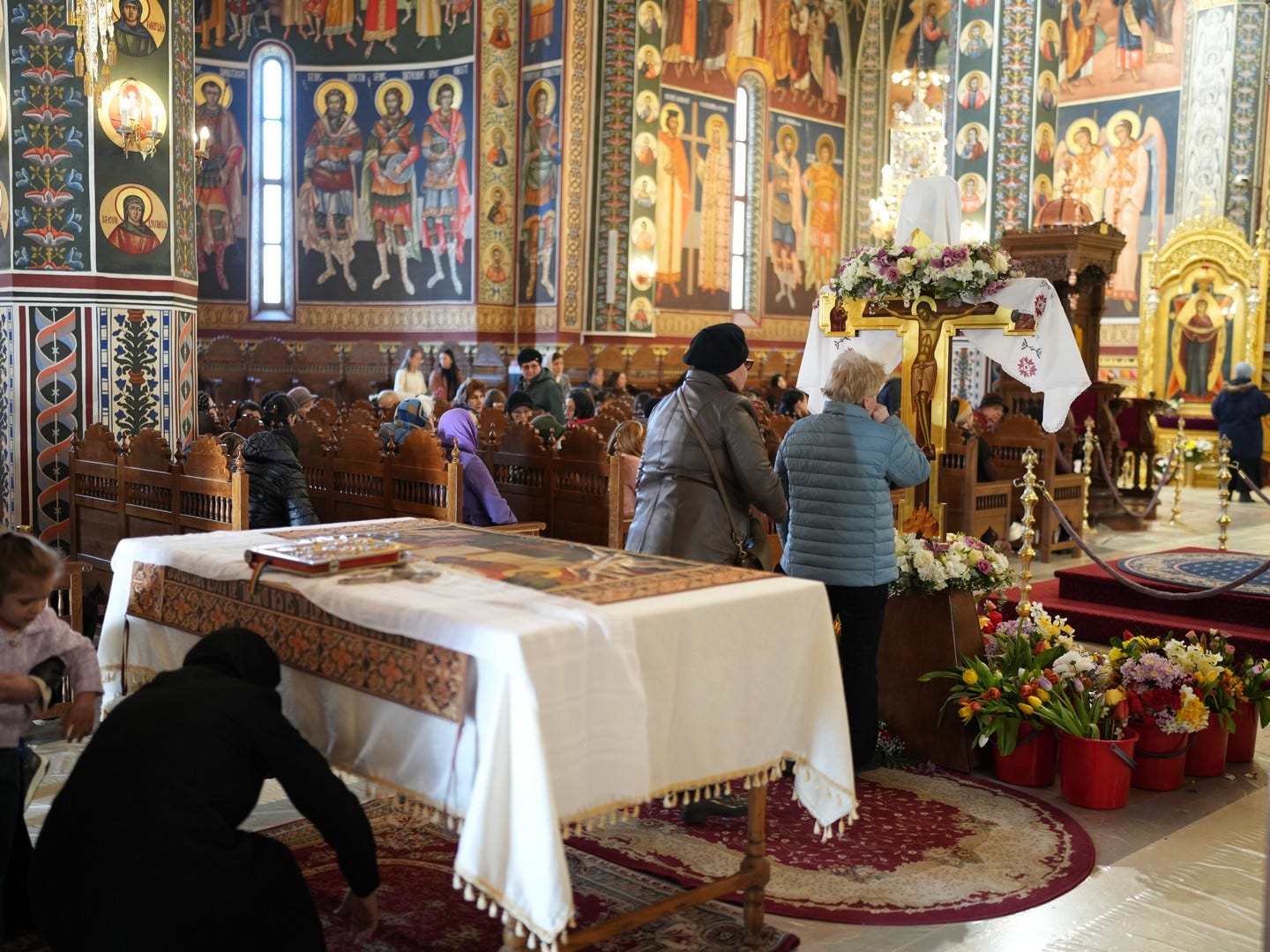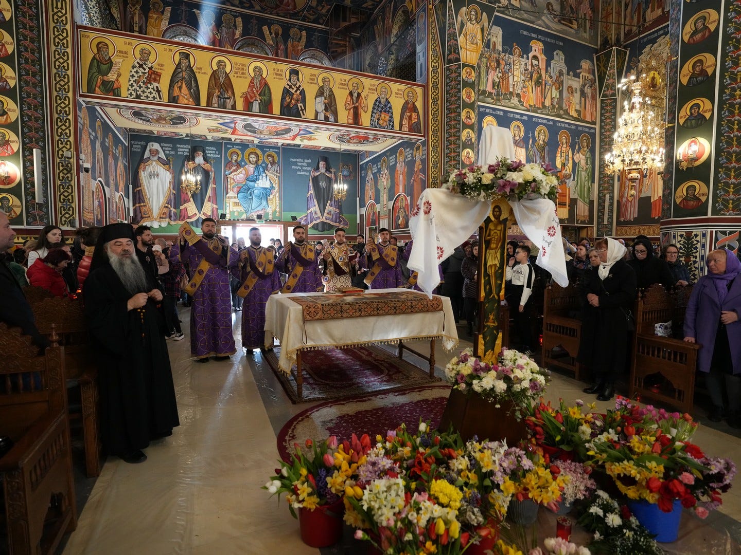 La slujbă au participat numeroși credincioși, care s-au rugat și au cântat imnul prohodului Domnului, în trei grupuri corale.
