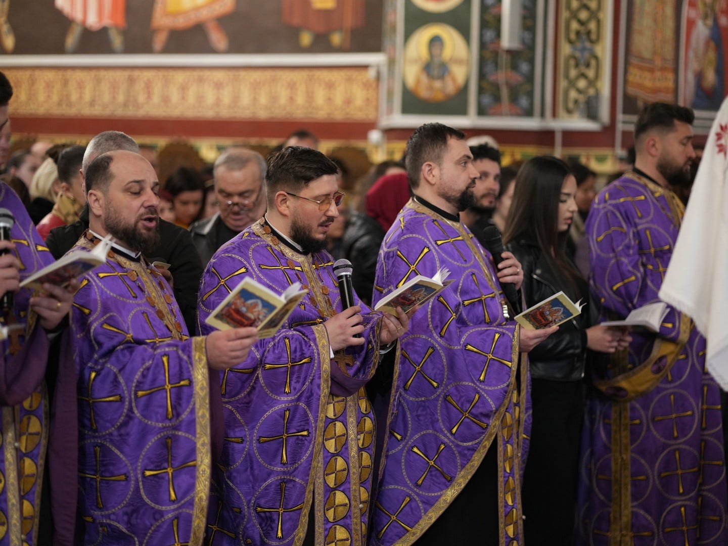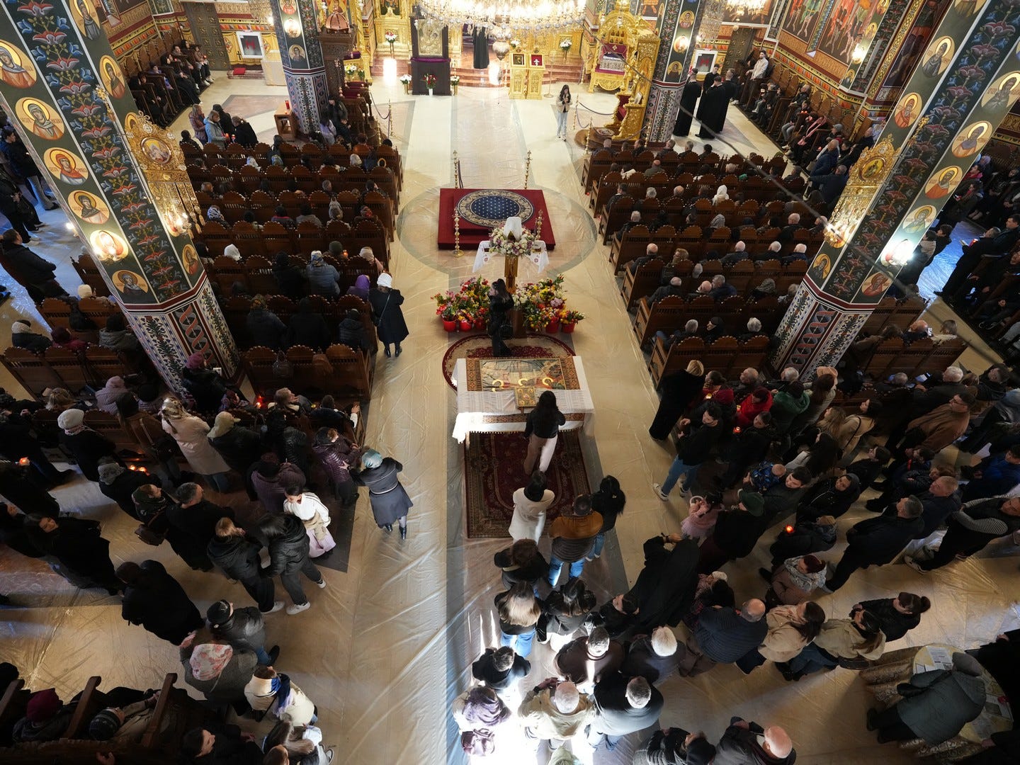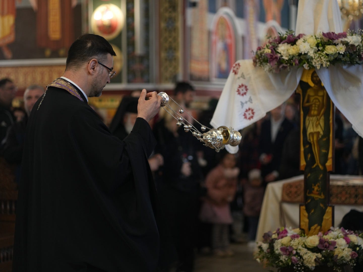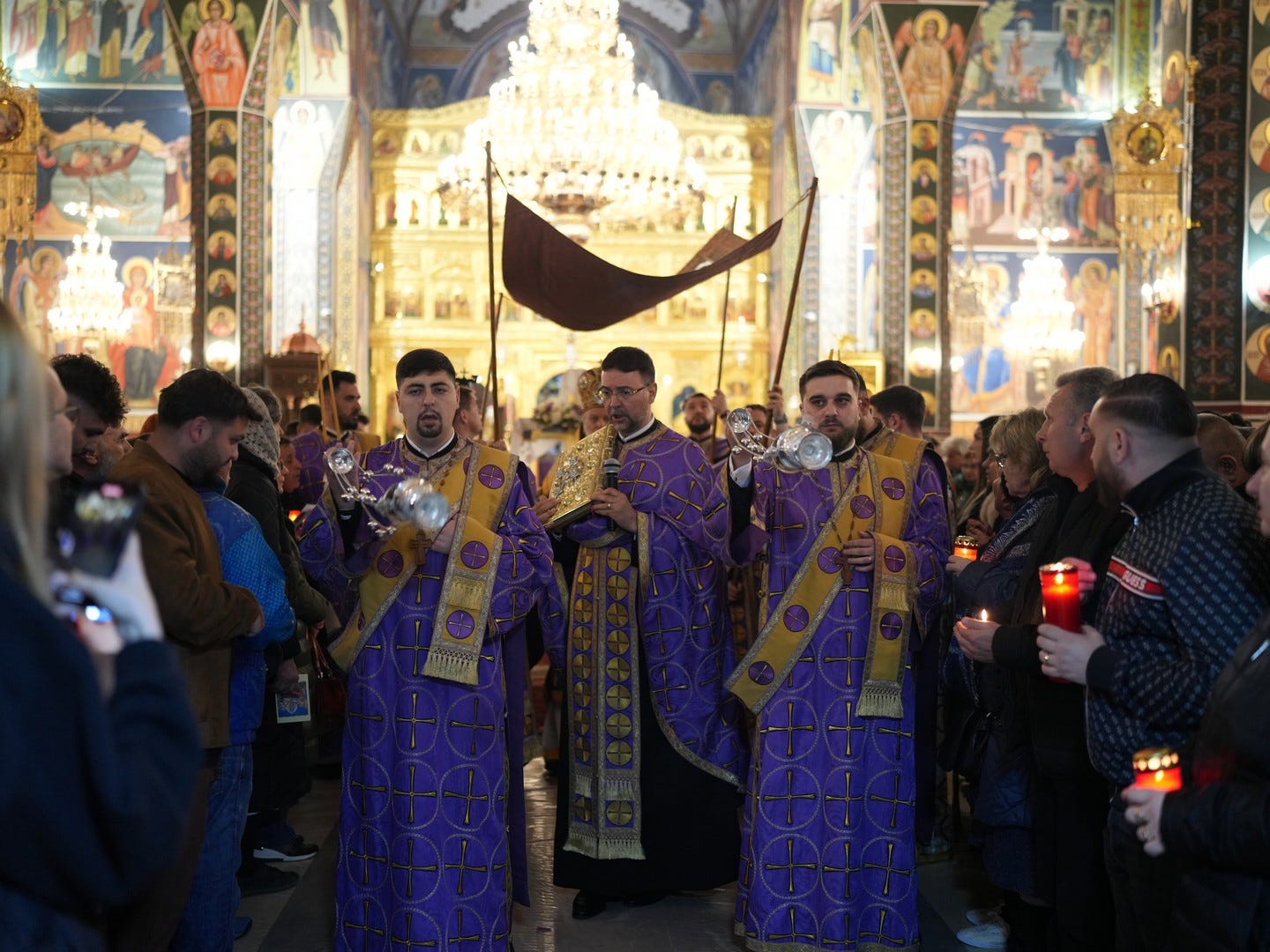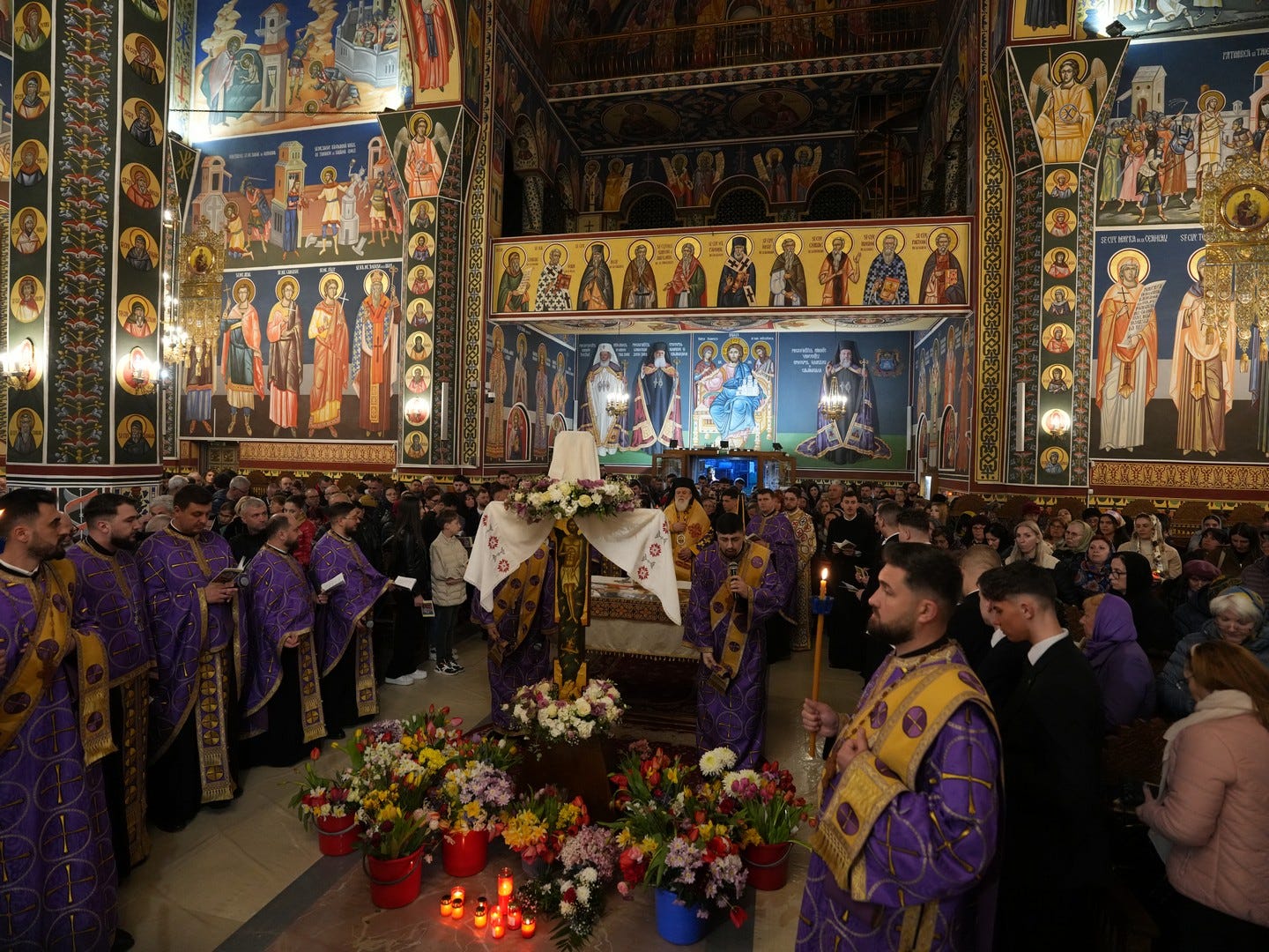 La slujbă au participat numeroși credincioși, care s-au rugat și au cântat imnul prohodului Domnului, în trei grupuri corale.