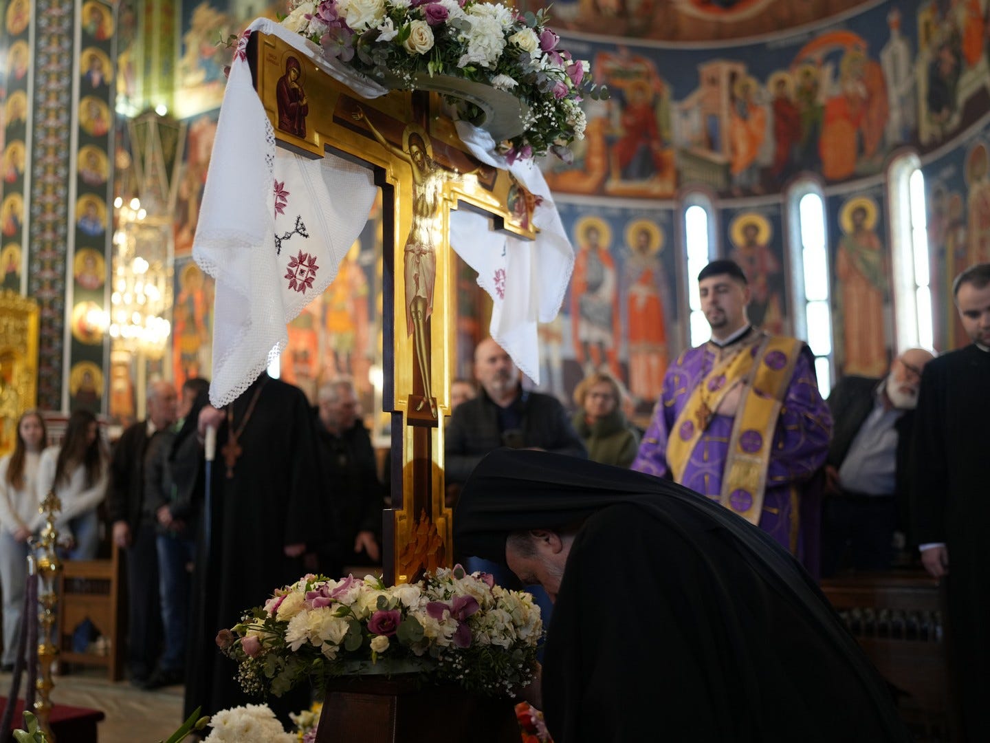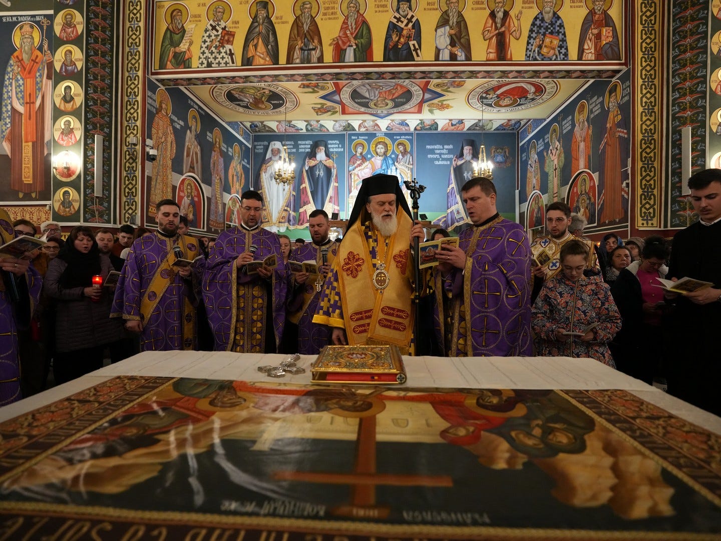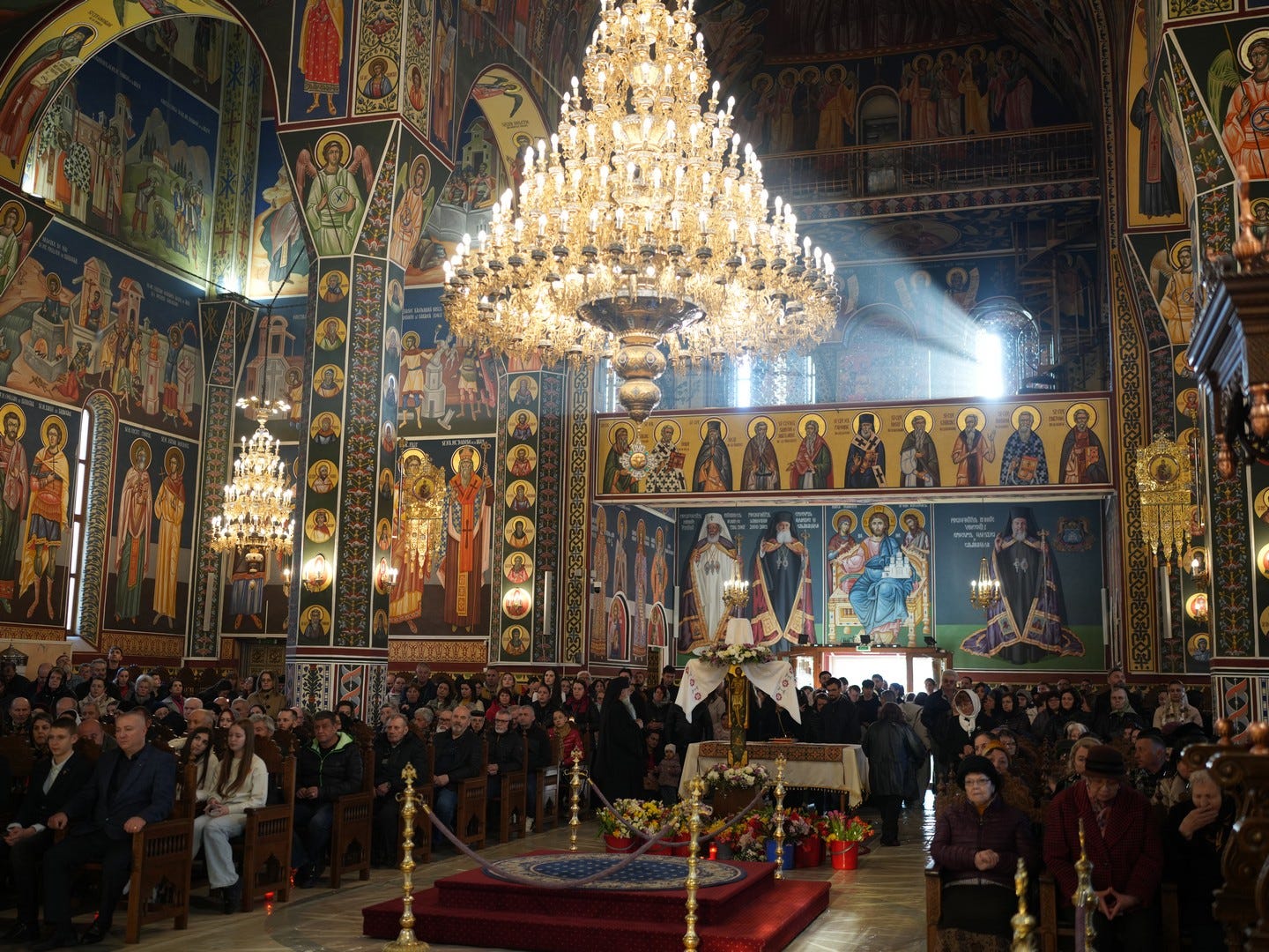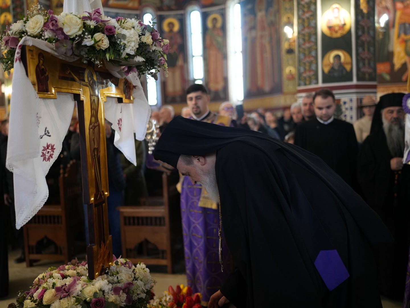 La slujbă au participat numeroși credincioși, care s-au rugat și au cântat imnul prohodului Domnului, în trei grupuri corale.