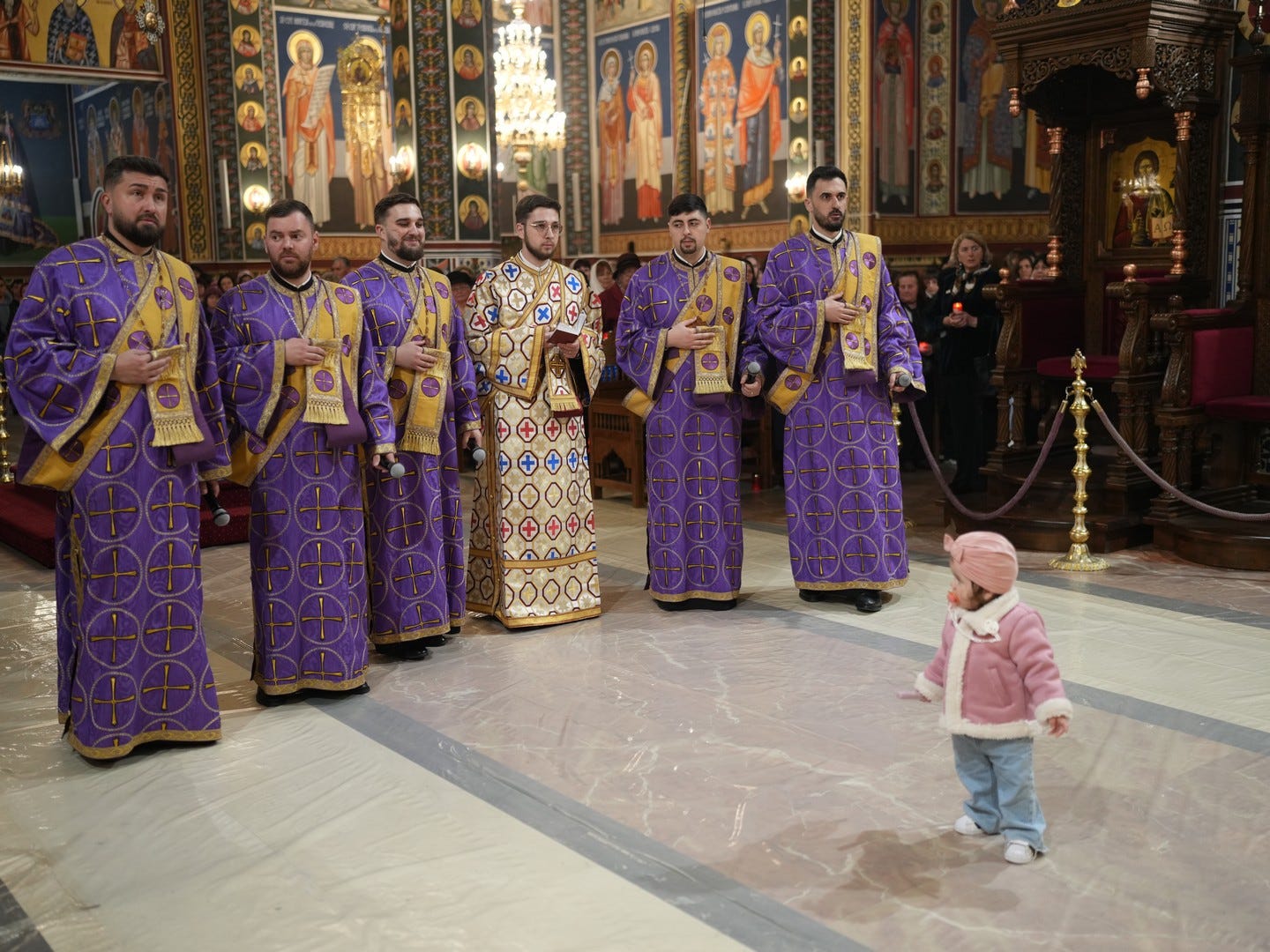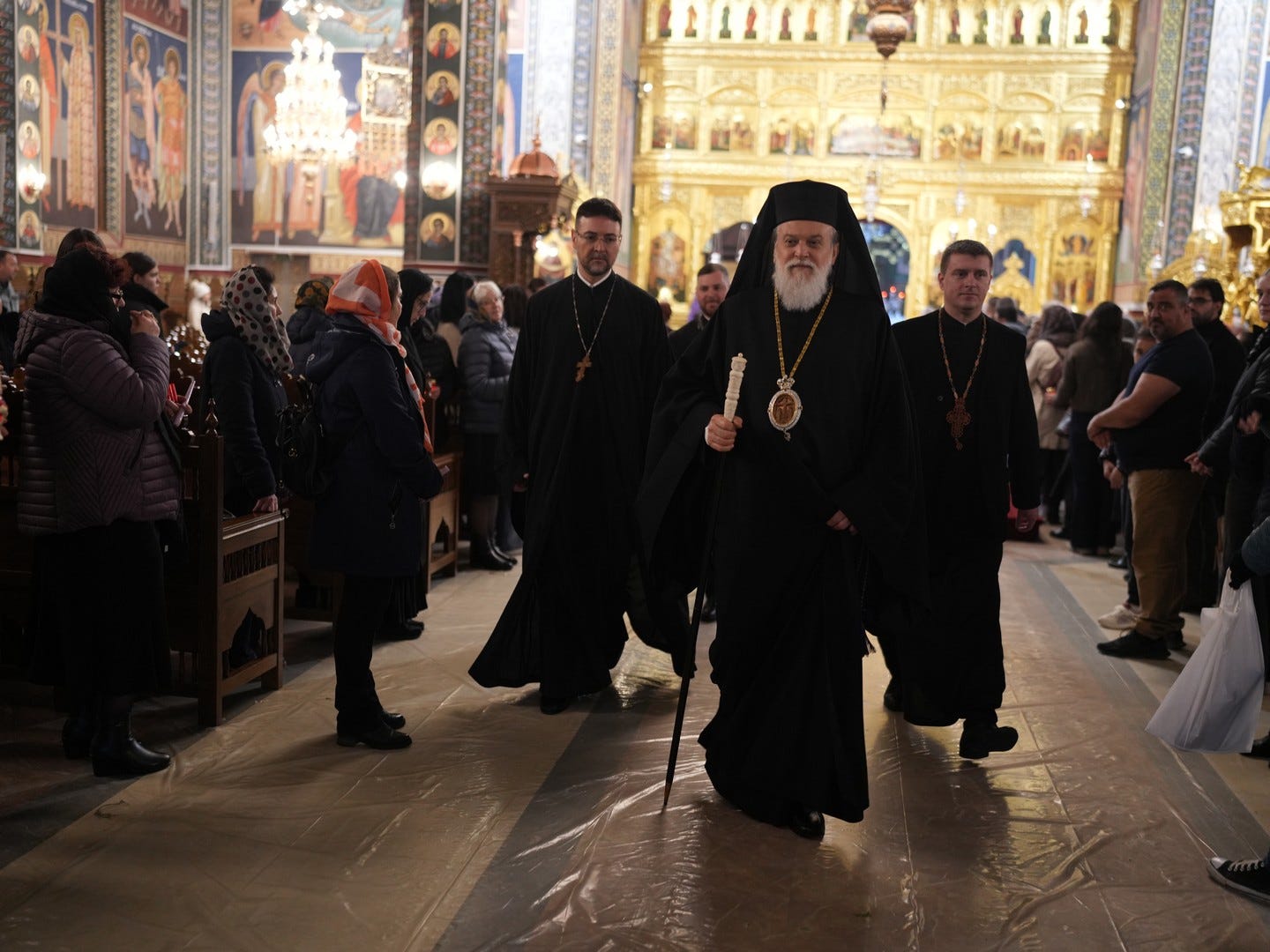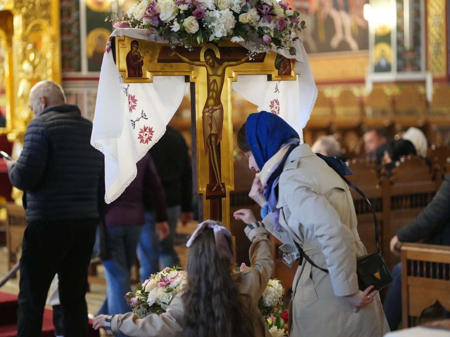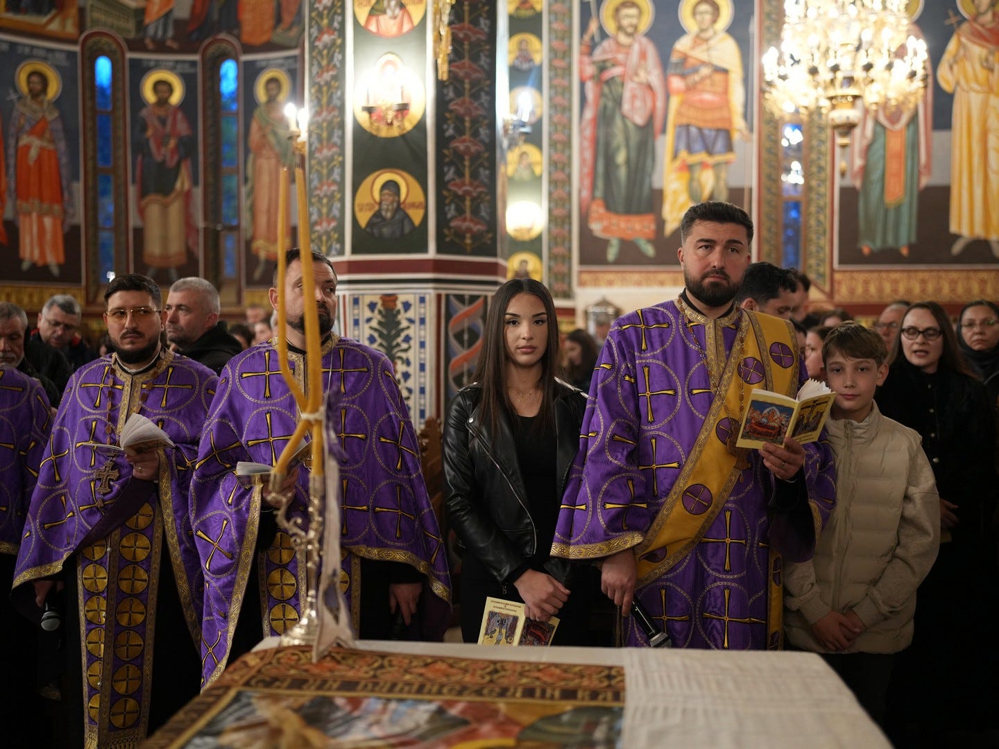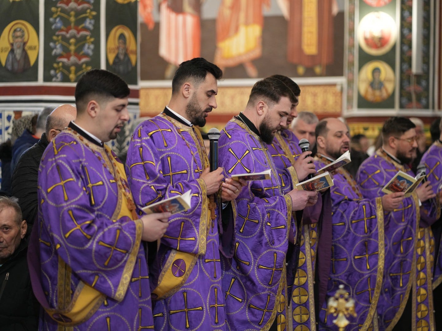 La slujbă au participat numeroși credincioși, care s-au rugat și au cântat imnul prohodului Domnului, în trei grupuri corale.