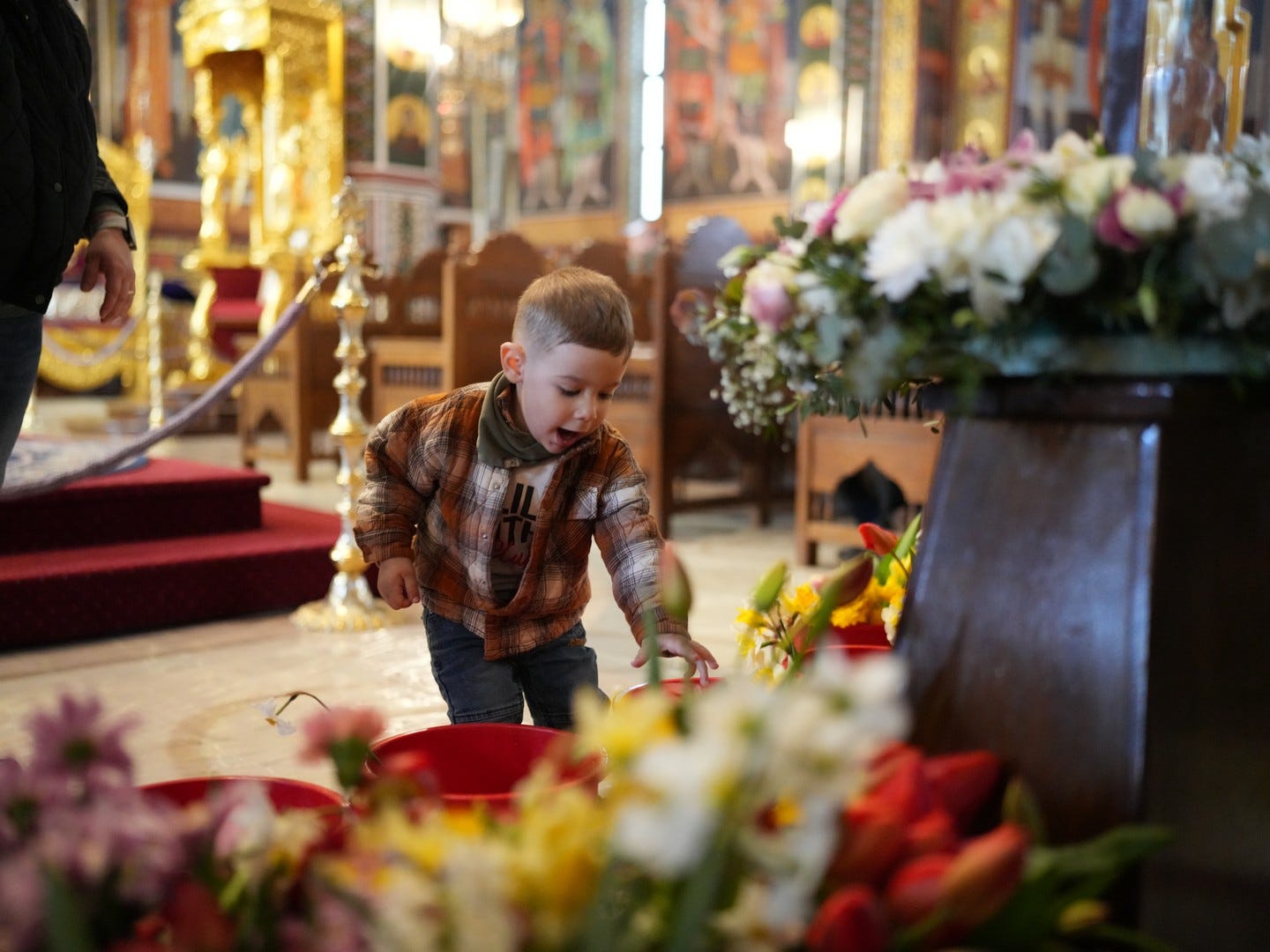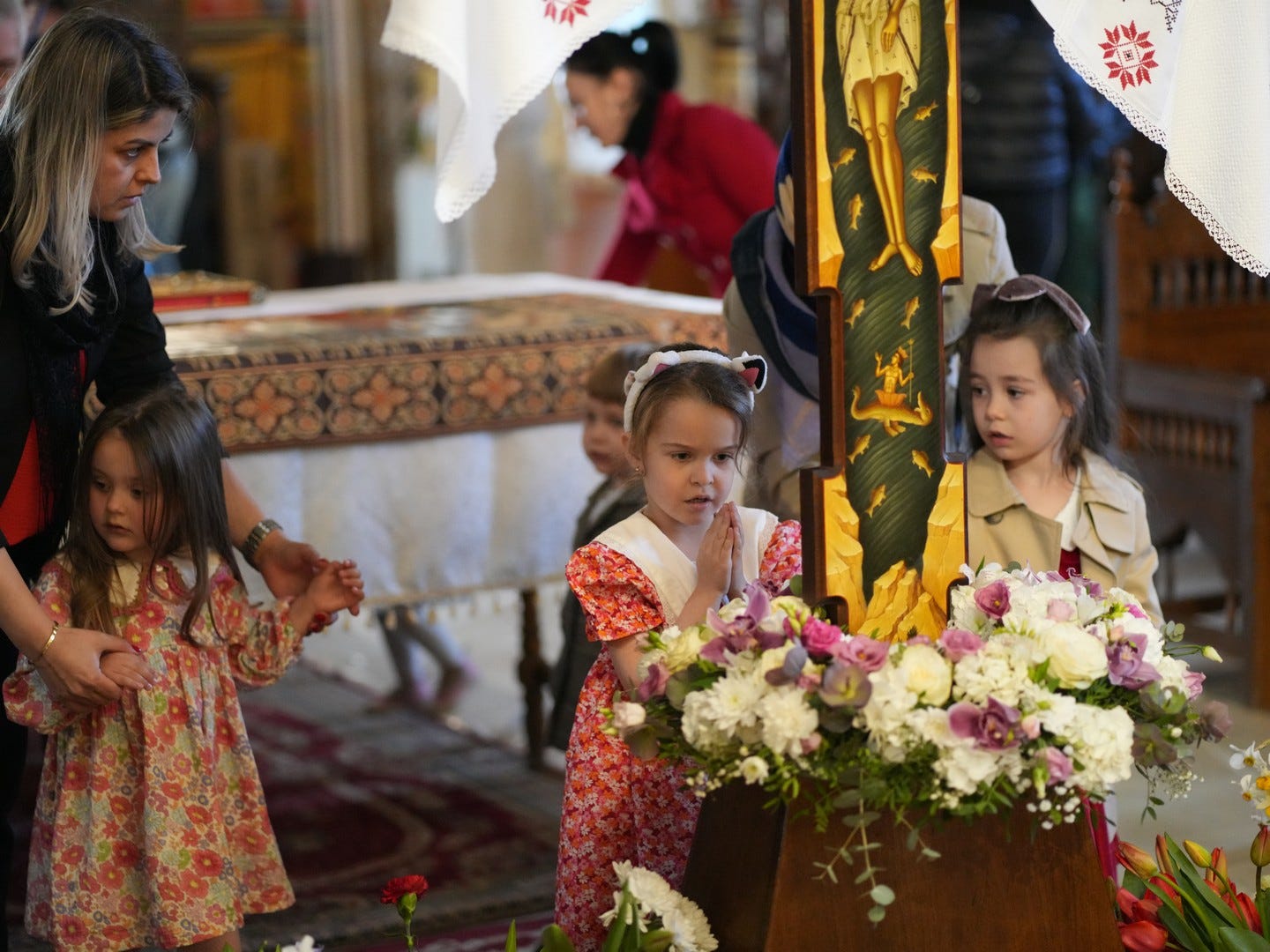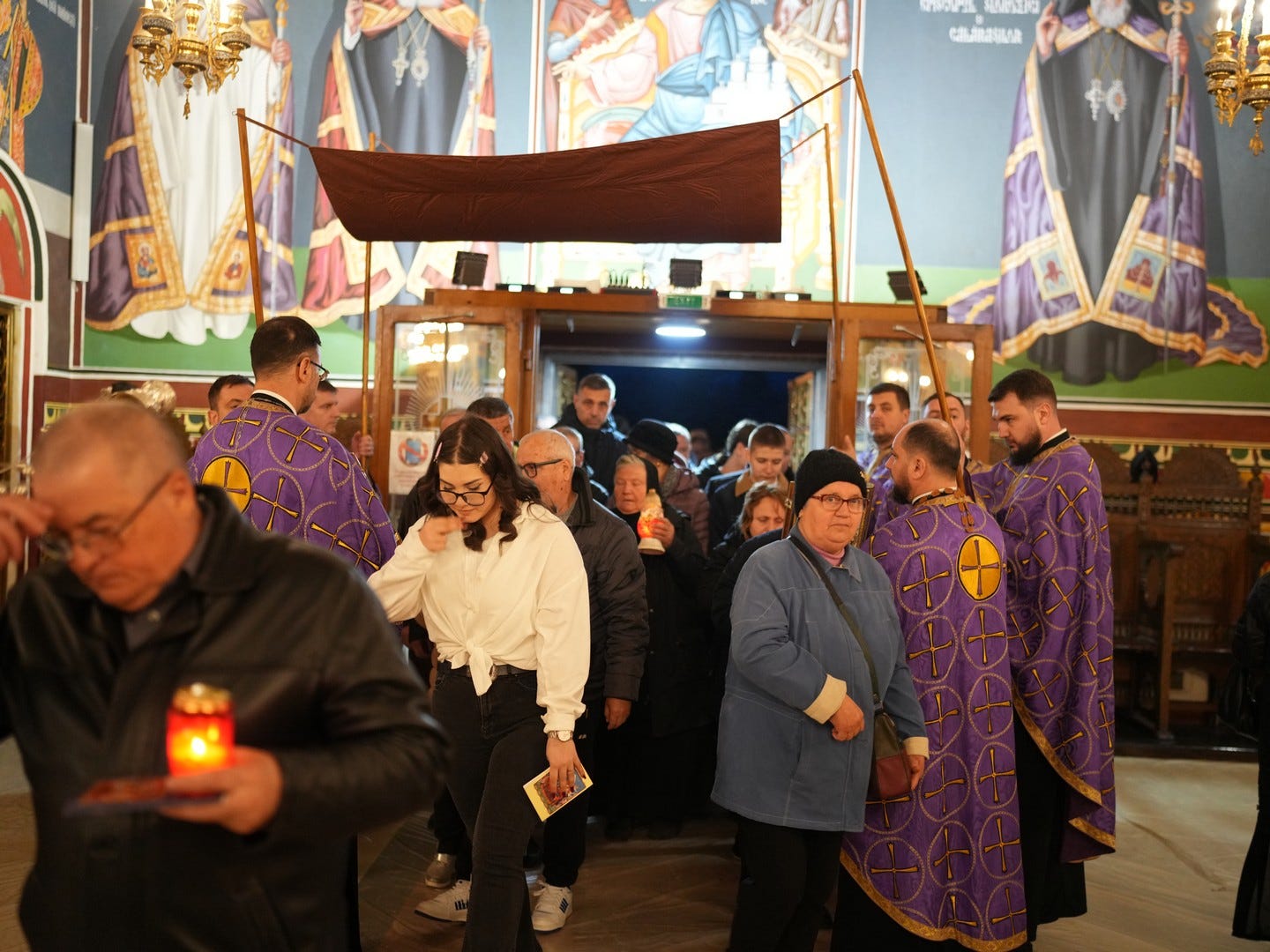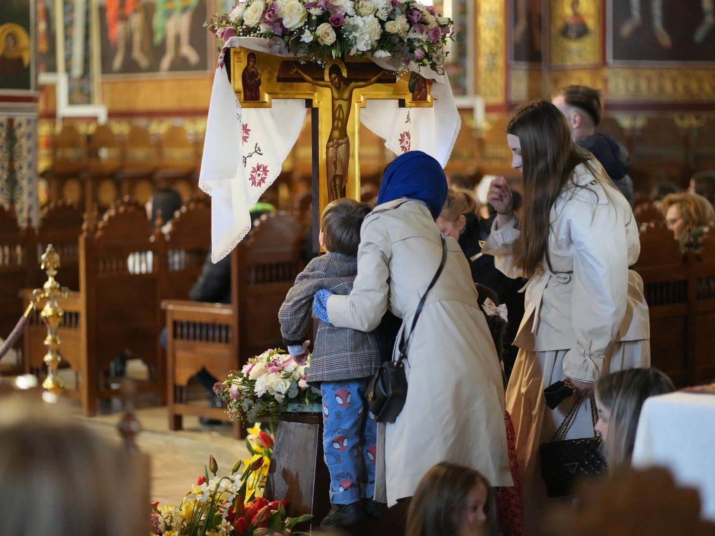 La slujbă au participat numeroși credincioși, care s-au rugat și au cântat imnul prohodului Domnului, în trei grupuri corale.