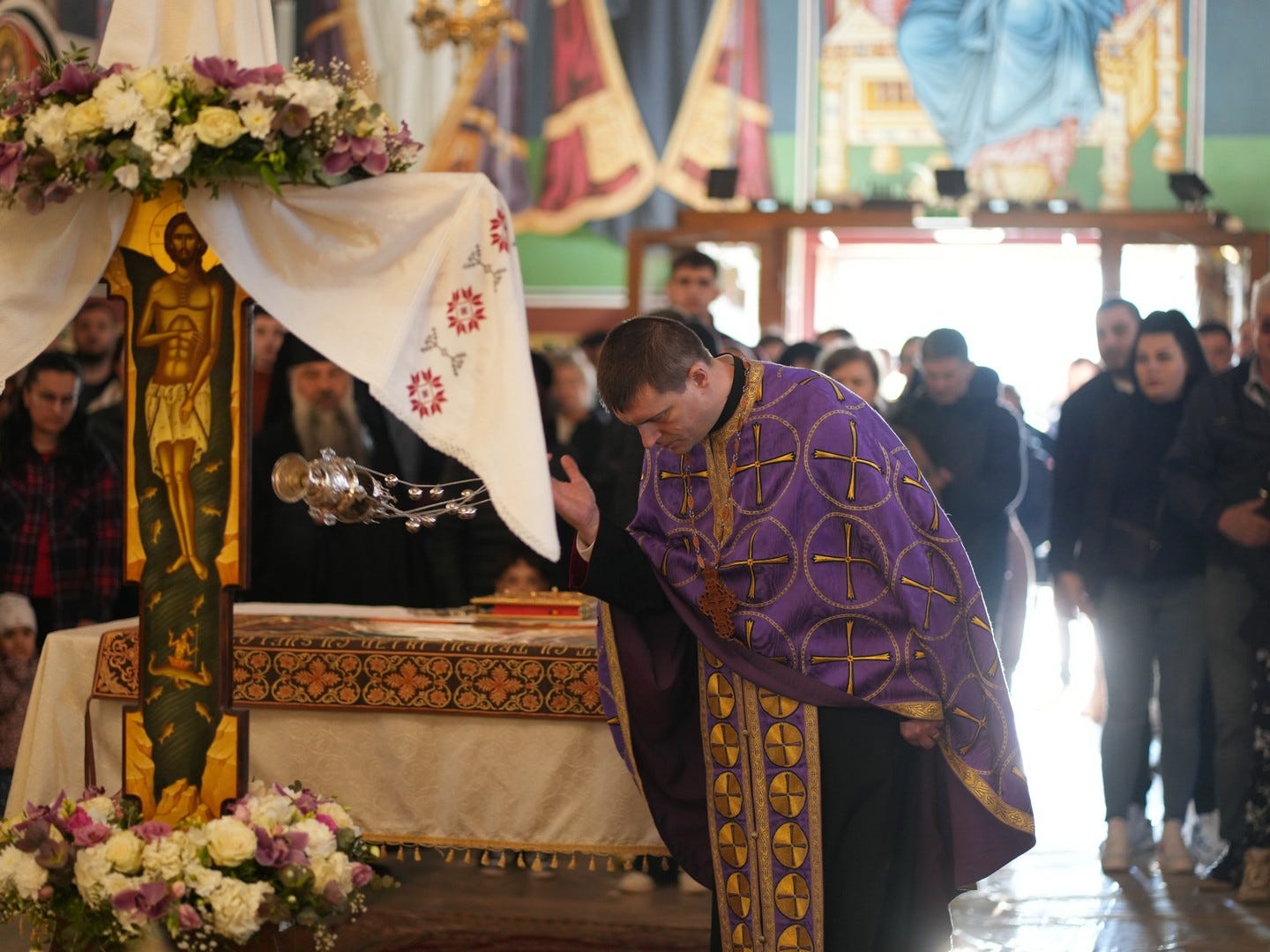 La sfârșitul Deniei, Preasfințitul Părinte Episcop, preoți și credincioși, au înconjurat, în procesiune, în jurul Catedralei Episcopale cu Sfântul Epitaf, o pânză pe care este pictată punerea în mormânt a Mântuitorului. După ce toți credincioșii au intrat în catedrală, trecând pe sub Sfântul Epitaf, acesta a fost așezat pe Sfânta Masă, unde va rămâne până la Praznicul Înălțării Domnului.