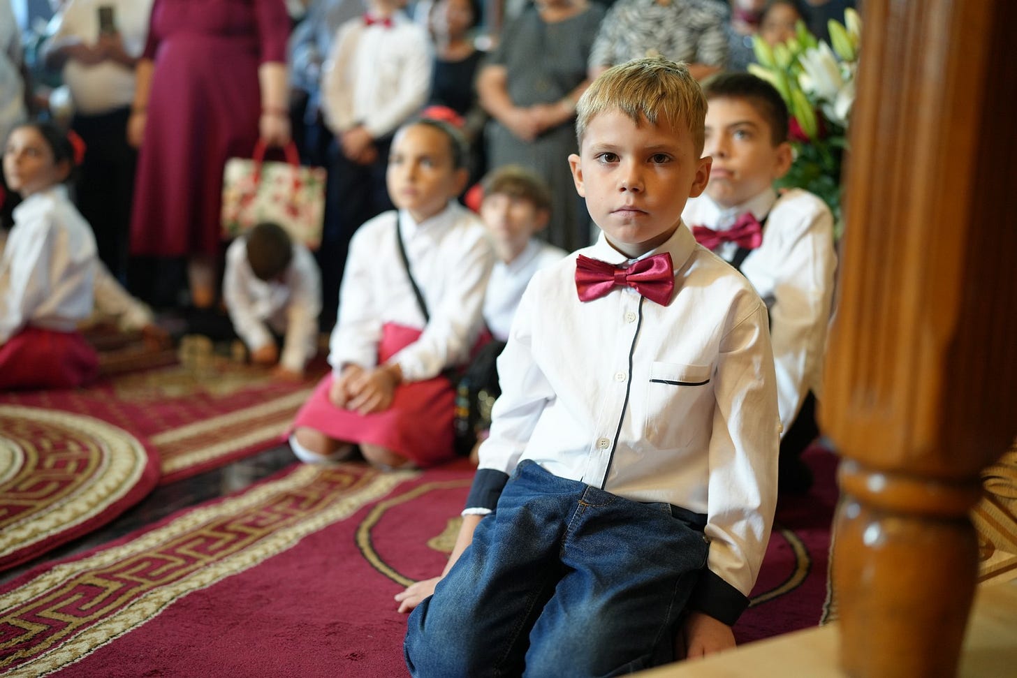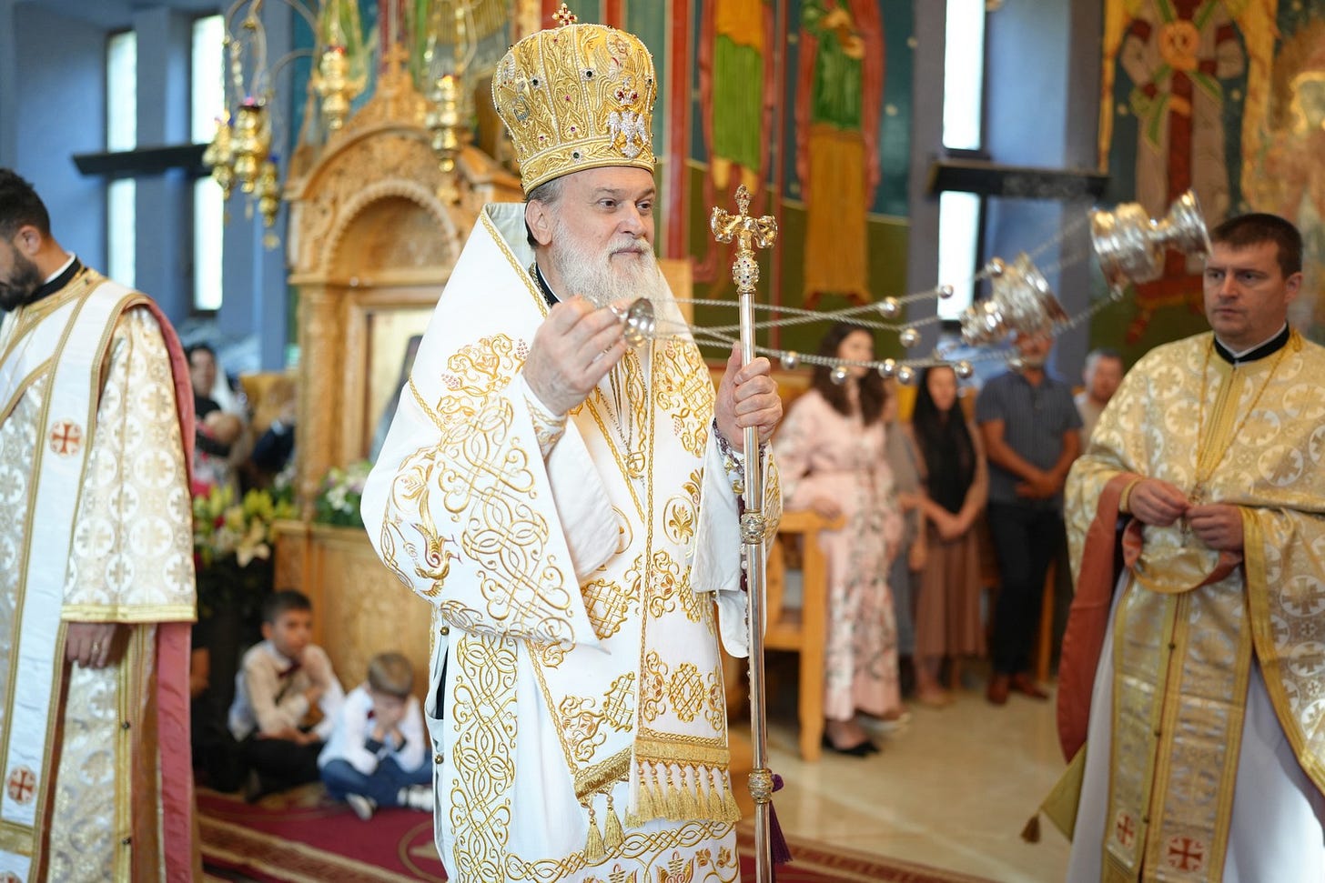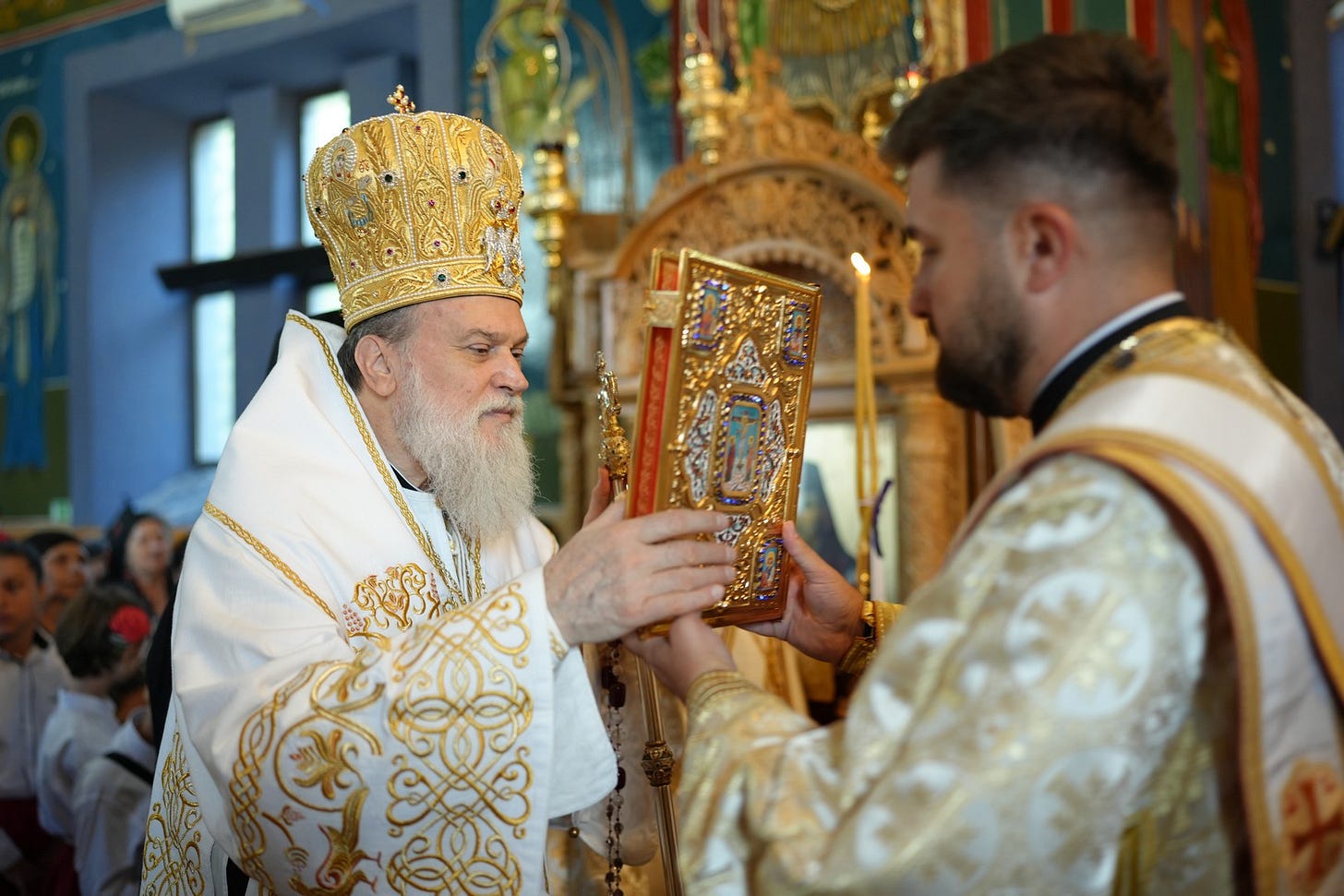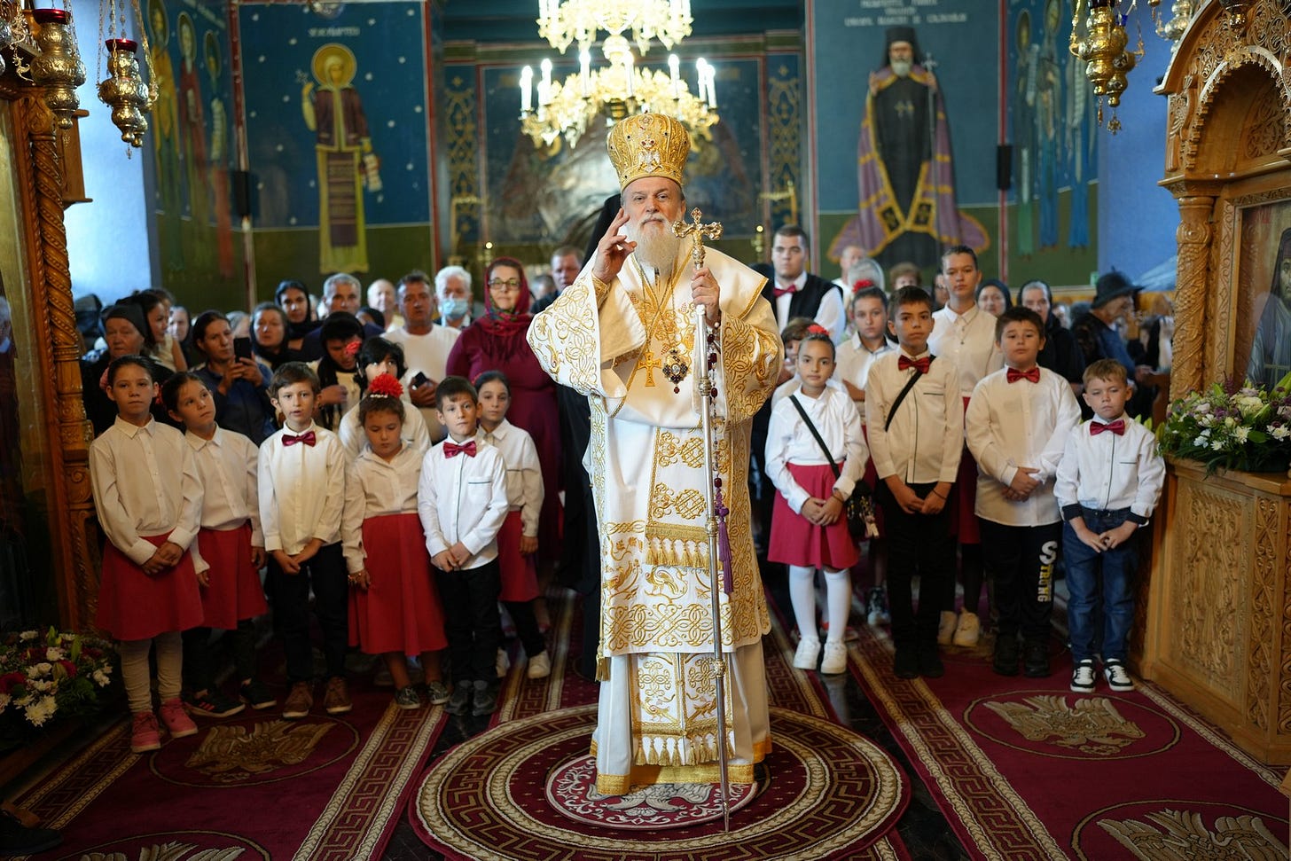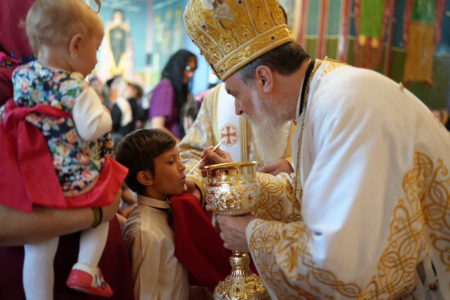 Preasfinția Sa a împărtășit copiii prezenți la Sfânta Liturghie.