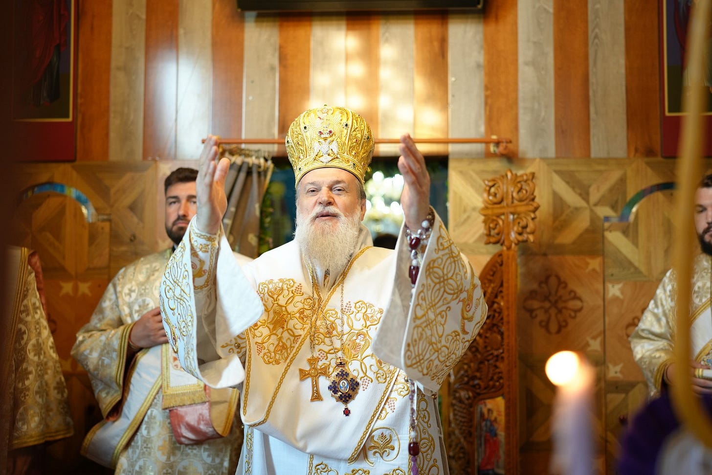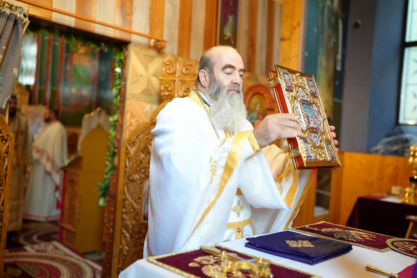 Sub protia Preasfinției Sale, au slujit preacuviosul părinte vicar eparhial, arhimandritul Rafail, preacucernicii părinți consilieri Marius Gabriel Purcărea, Nicușor Silviu Dascălu și Andrei Cornel Petre, preacucernicul părinte Vasile Viorel Dinu, Protopop de Călărași, stareții mănăstirilor învecinate și un ales sobor de preoți și arhidiaconi.