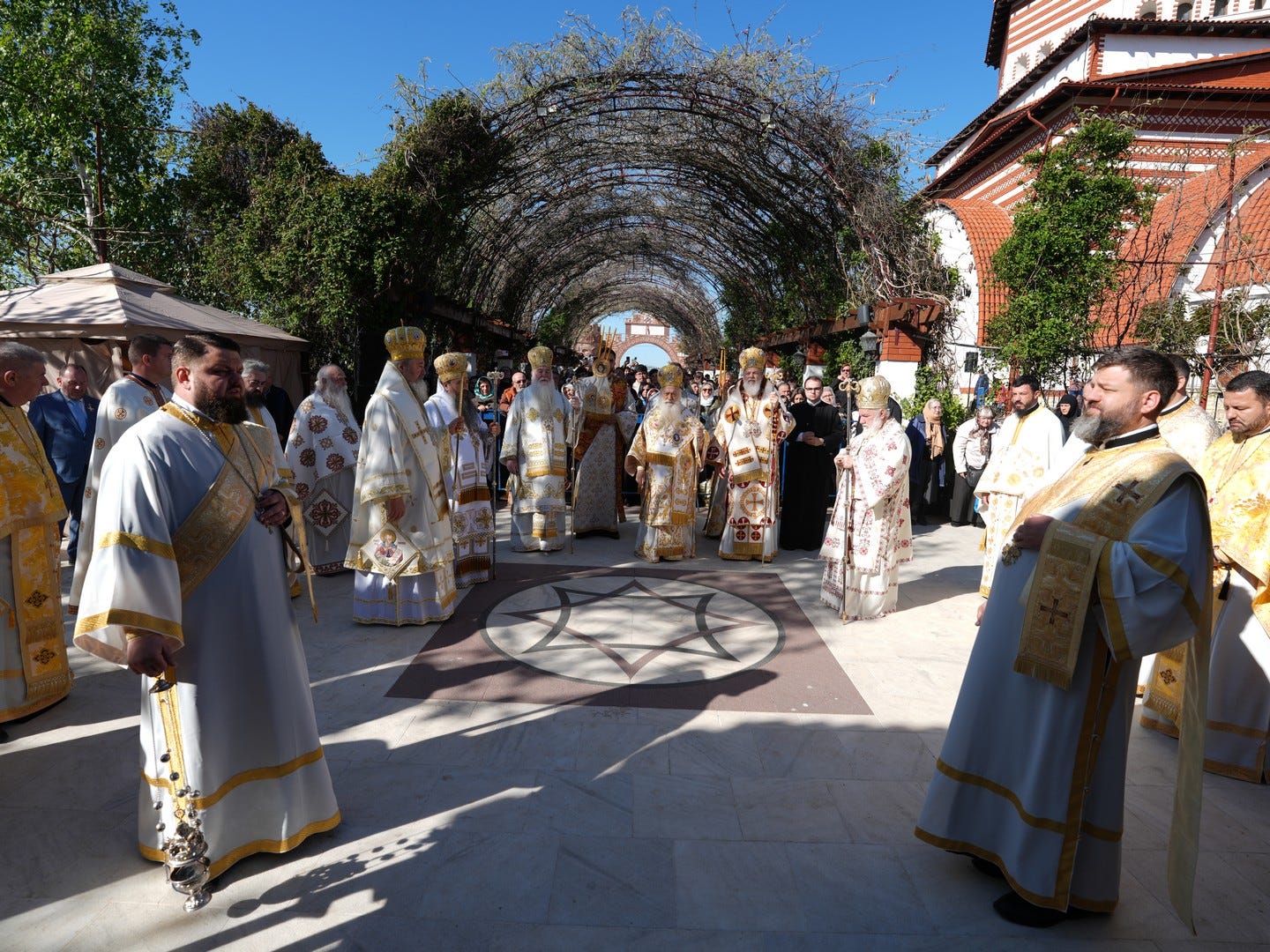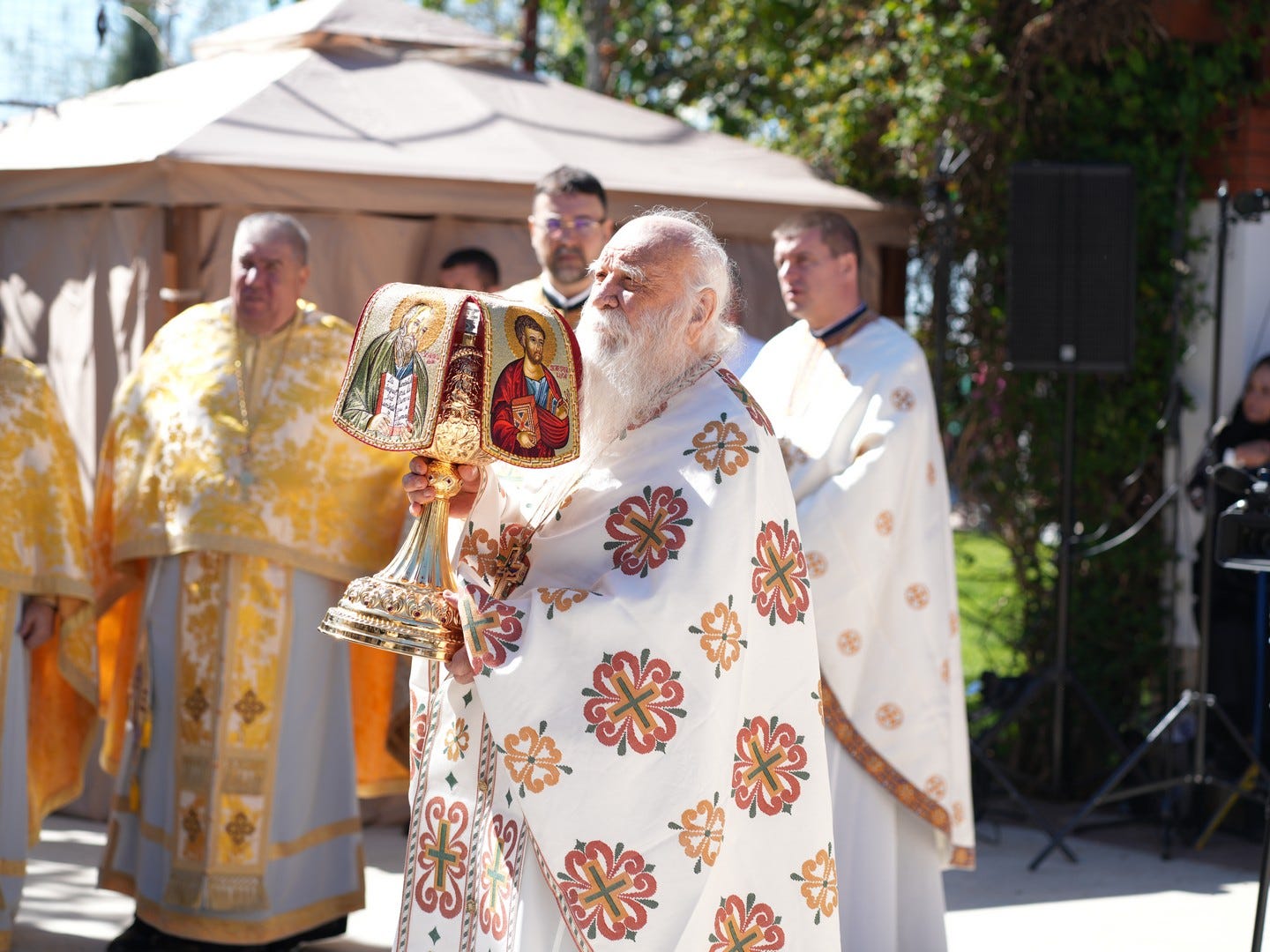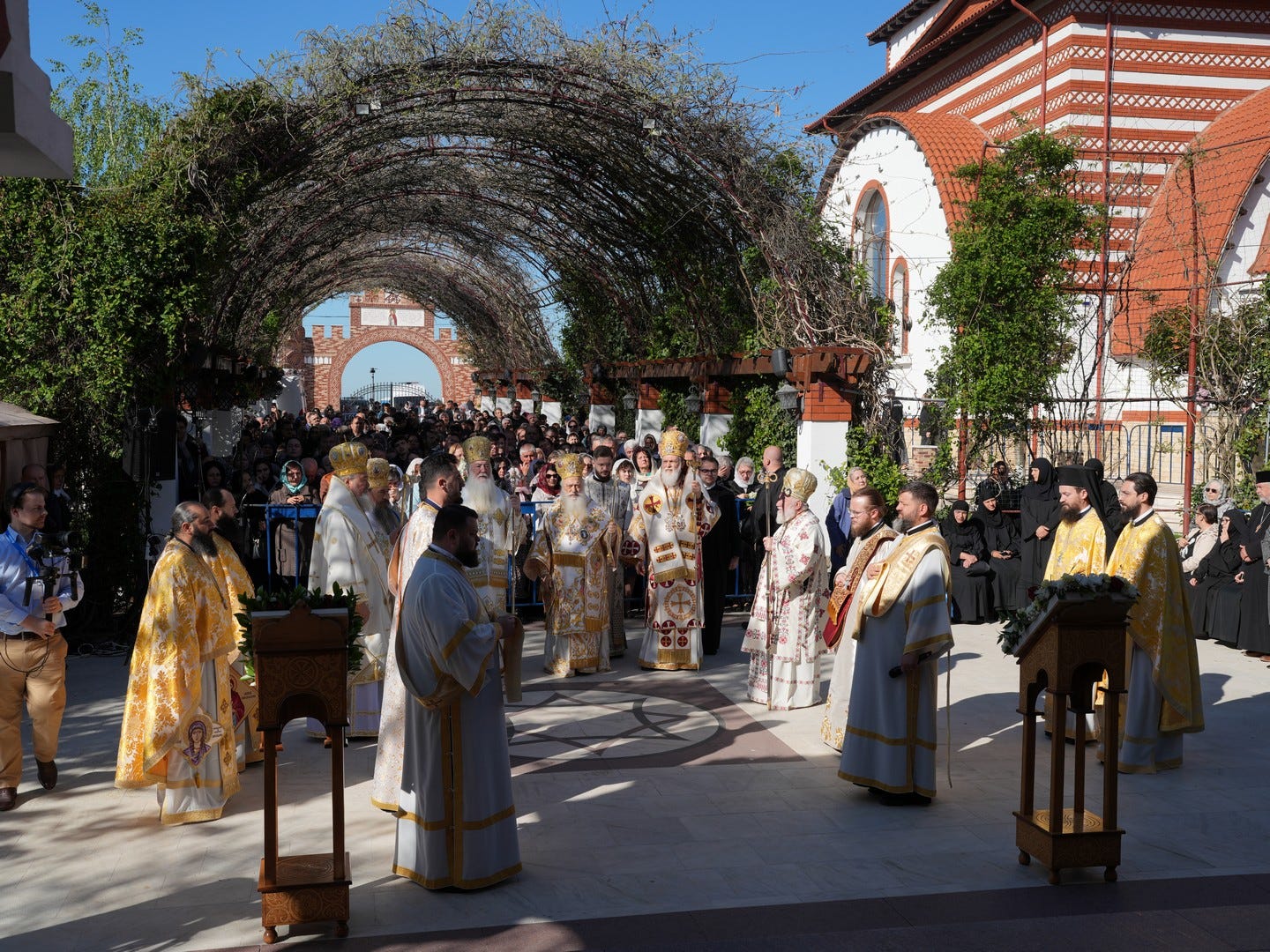 Sfânta Liturghie a fost săvârșită de Înaltpreasfințitul Pantelimon, Mitropolitul Veriei, Naousei și Kampaniei, ierarh al Bisericii Ortodoxe a Greciei, împreună cu alți arhierei ai Bisericii Ortodoxe Române, între care și Preasfințitul Părinte Vincențiu, Episcopul Sloboziei și Călărașilor.