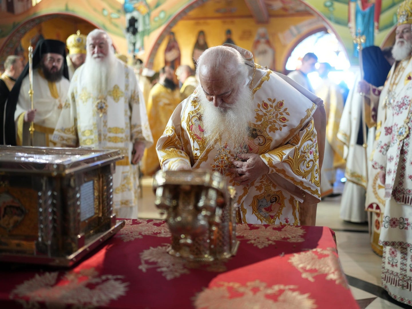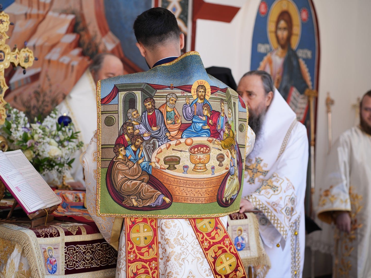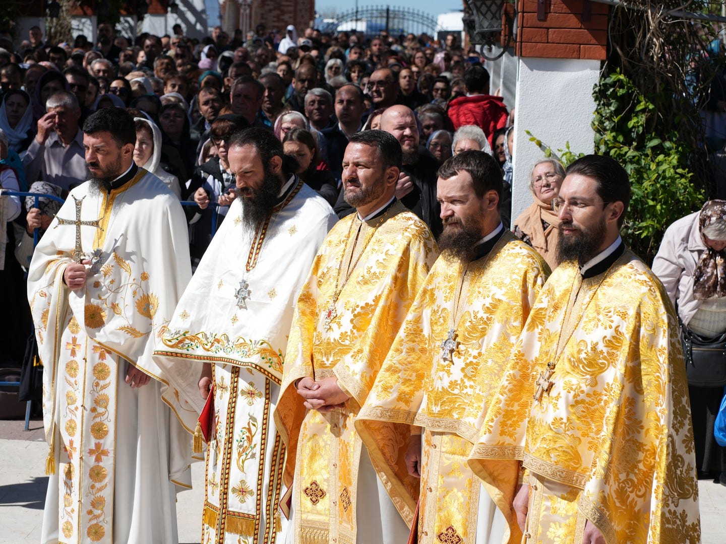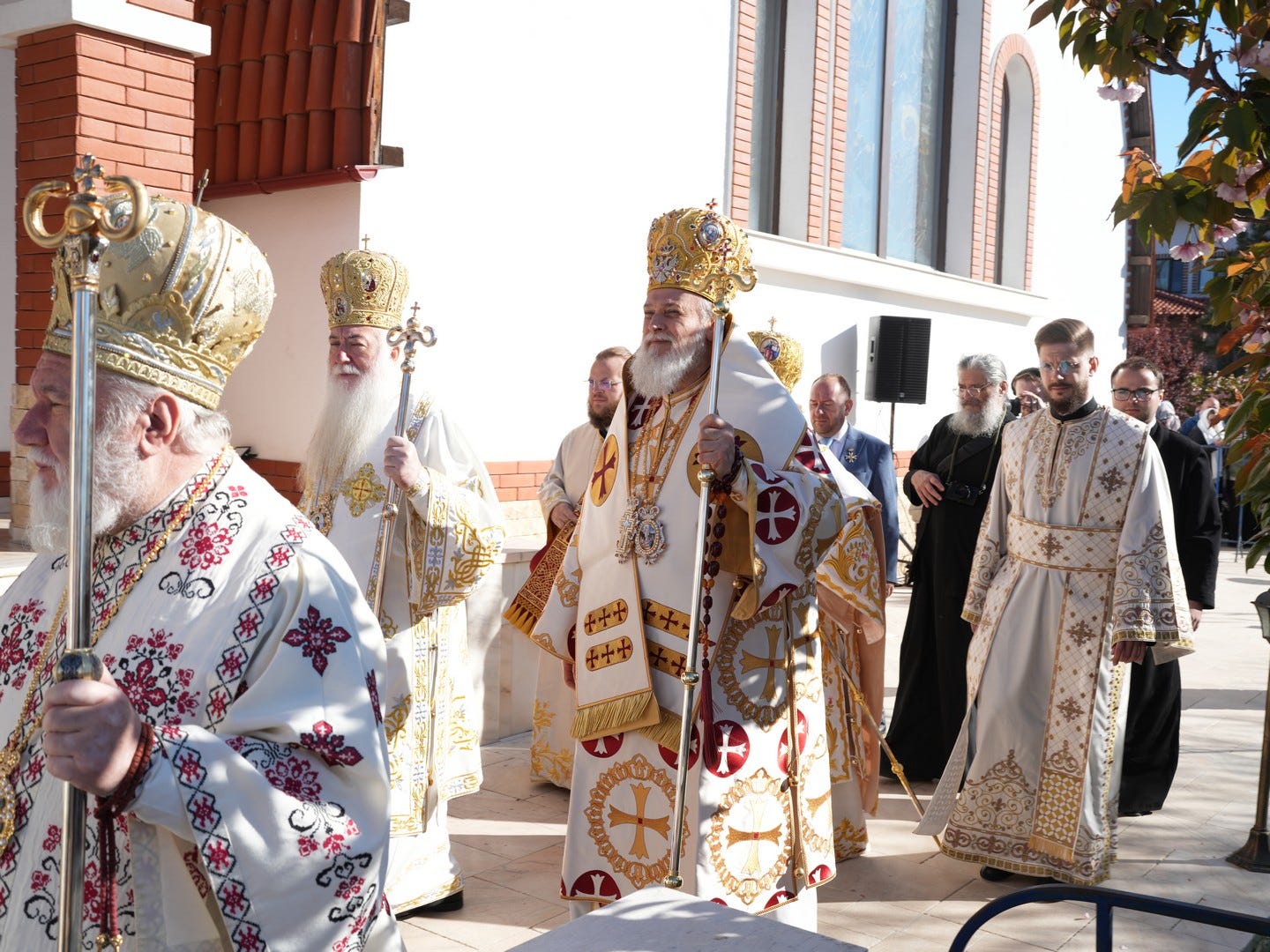 Sfânta Liturghie a fost săvârșită de Înaltpreasfințitul Pantelimon, Mitropolitul Veriei, Naousei și Kampaniei, ierarh al Bisericii Ortodoxe a Greciei, împreună cu alți arhierei ai Bisericii Ortodoxe Române, între care și Preasfințitul Părinte Vincențiu, Episcopul Sloboziei și Călărașilor.