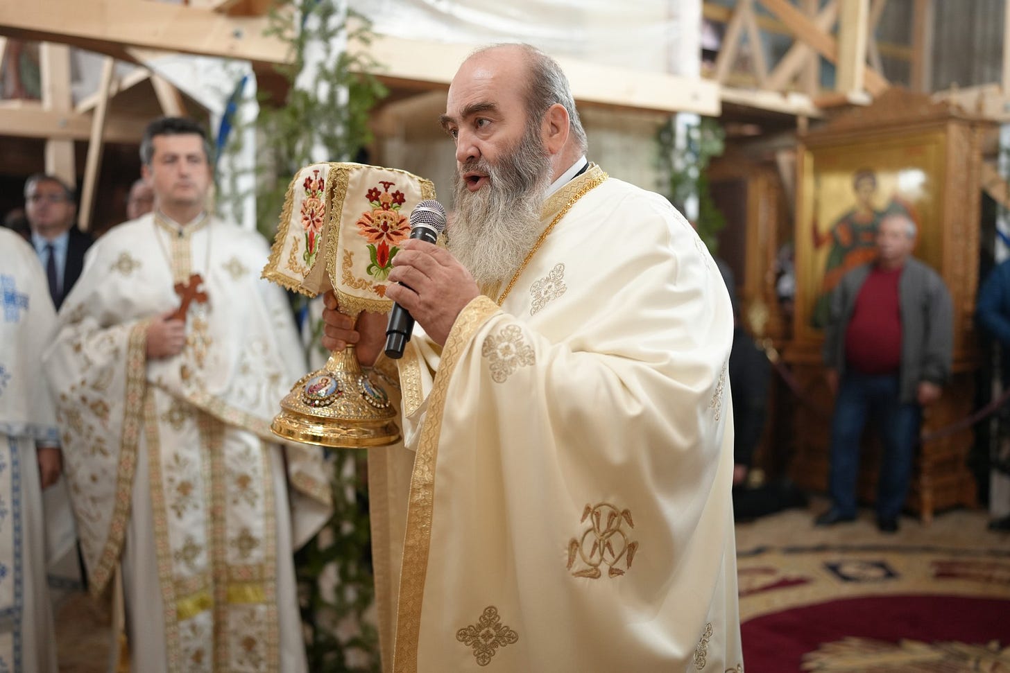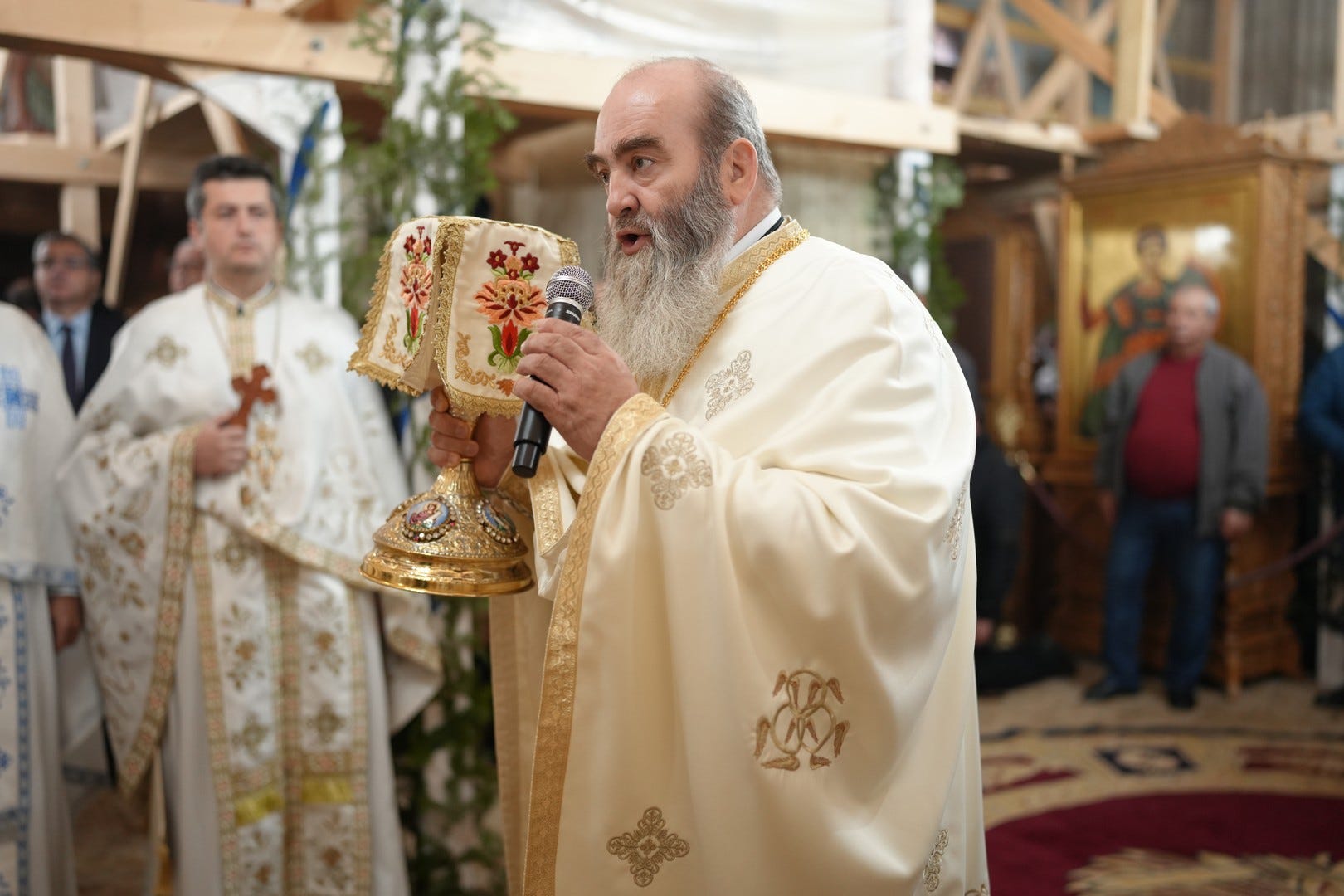 Înaltpreasfințitul Părinte Casian, Arhiepiscopul Dunării de Jos a ținut cuvânt de învățătură la pericopa evanghelică și au vorbit despre prezența și lucrarea Sfinților Îngeri în viața noastră și despre Sfinții Arhangheli, ocrotitorii Mănăstirii.