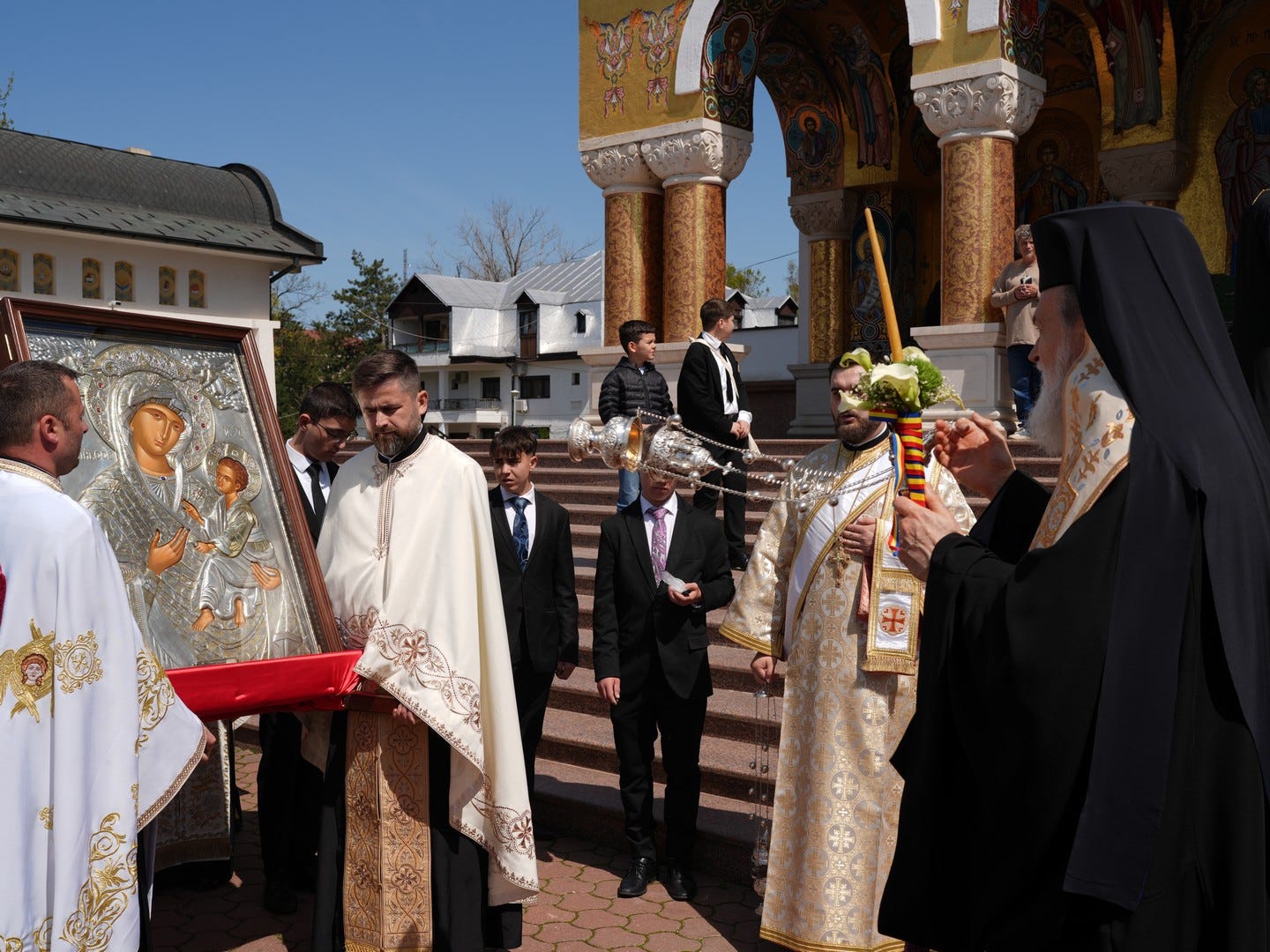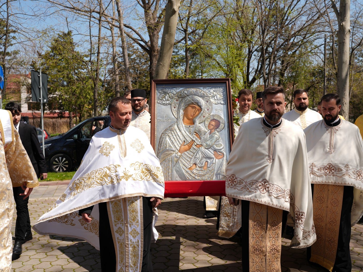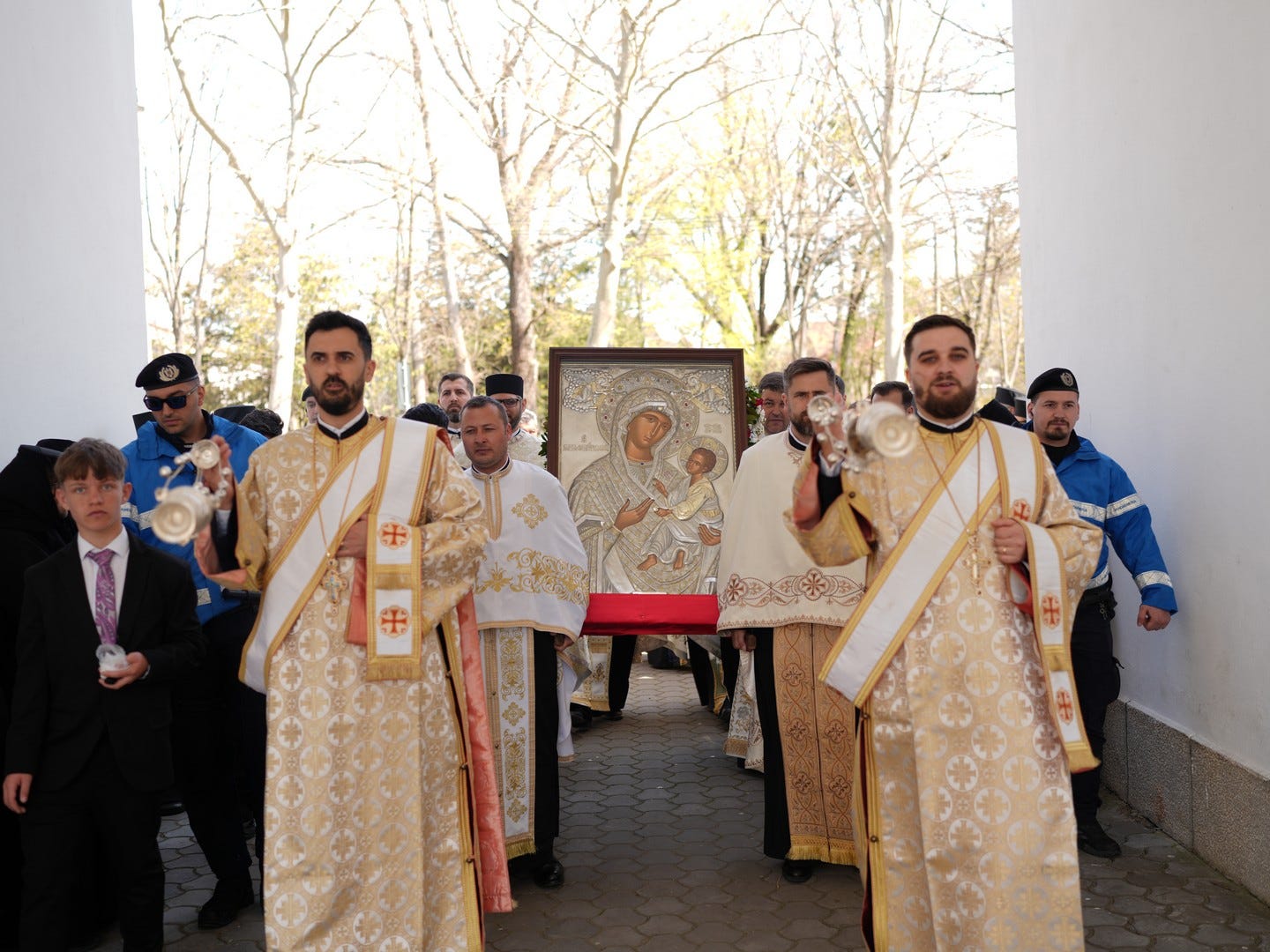 Icoana Maicii Domnului „Grabnic Ascultătoarea” va rămâne spre închinare până marți, 21 aprilie 2026, după Sfânta Liturghie, când va fi pregătită pentru întoarcerea la Sfânta Mănăstire Sihla.