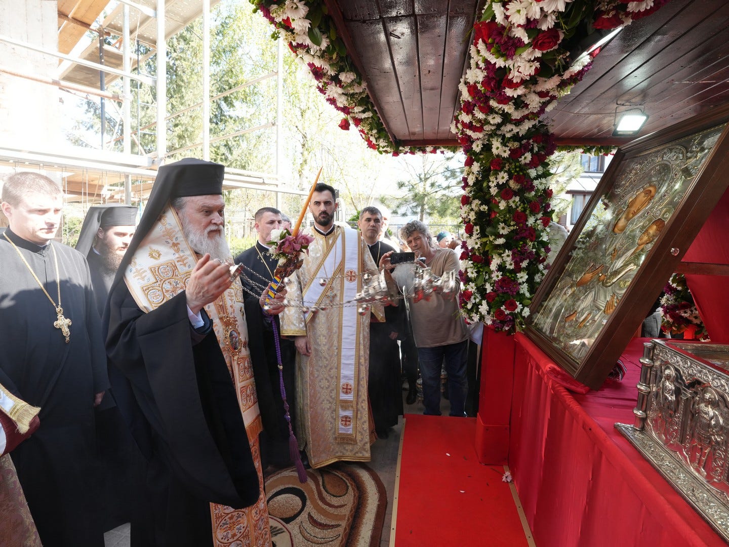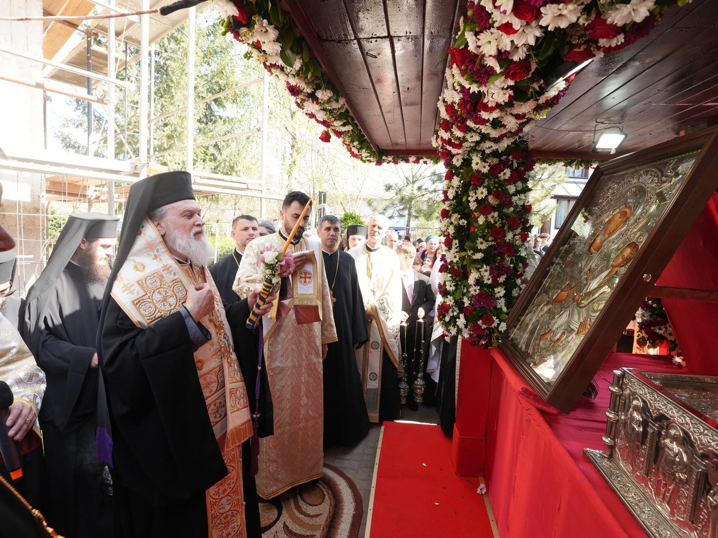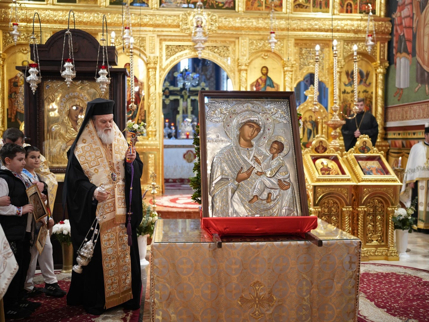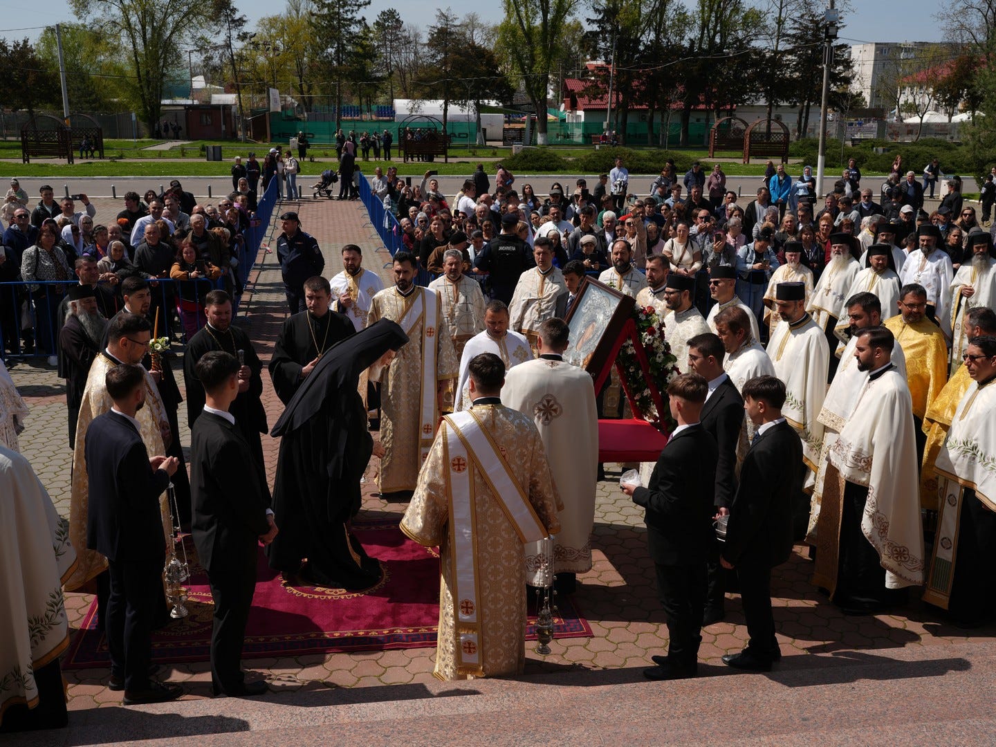 Icoana Maicii Domnului „Grabnic Ascultătoarea” va rămâne spre închinare până marți, 21 aprilie 2026, după Sfânta Liturghie, când va fi pregătită pentru întoarcerea la Sfânta Mănăstire Sihla.