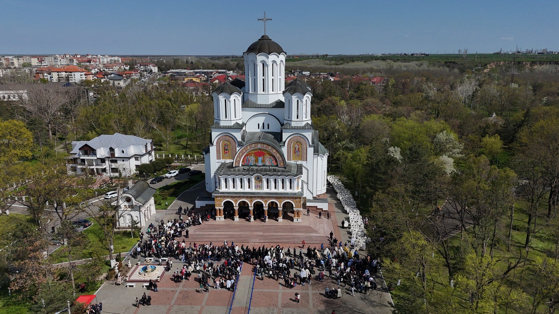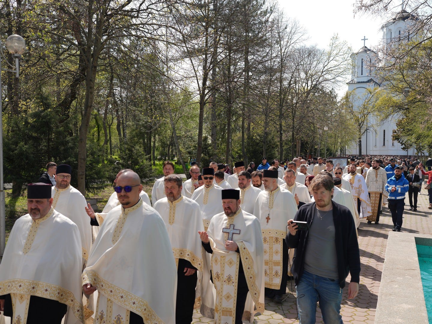 Pelerinajul a fost desfășurat cu ocazia sărbătoririi hramului de primăvară „Izvorul Tămăduirii” al străvechiului așezământ monahal „Sfinții Voievozi” din Slobozia.