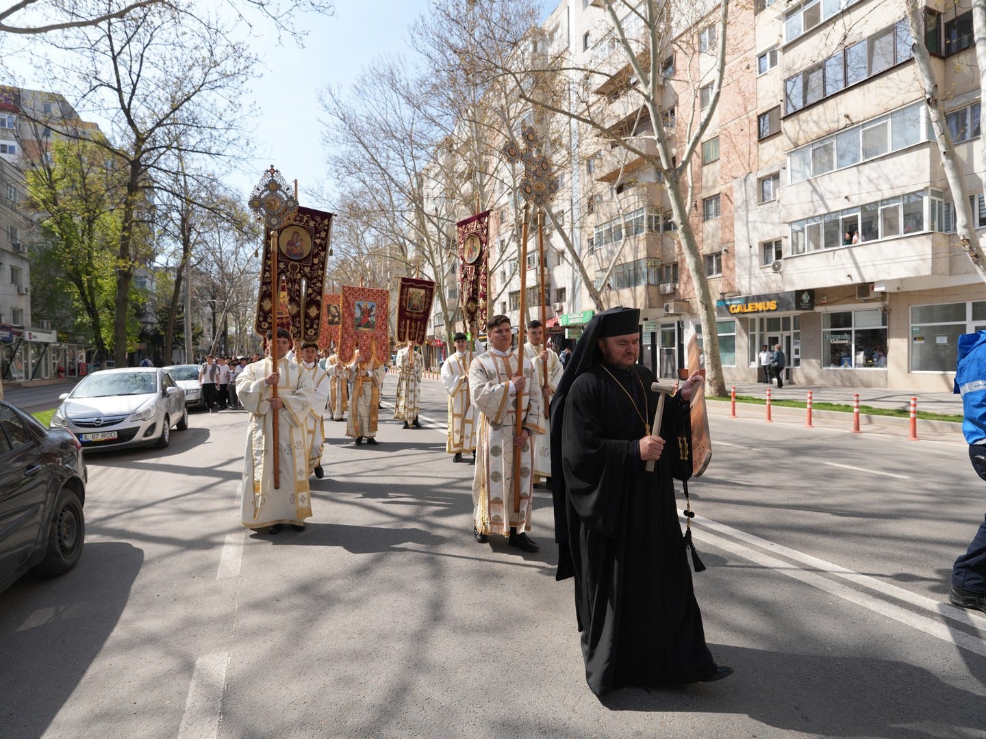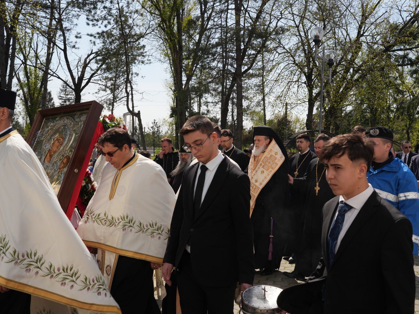 Toți cei prezenți au pornit într-o procesiune spre Mănăstirea „Sfinții Voievozi”, important și cel mai vechi centru spiritual al zonei și cel mai vechi monument de artă religioasă din Eparhia Sloboziei și Călărașilor. Icoana Maicii Domnului a fost depusă într-un baldachin spre închinarea tuturor credincioșilor, alături de moaștele care străjuiesc Mănăstirea din Slobozia.