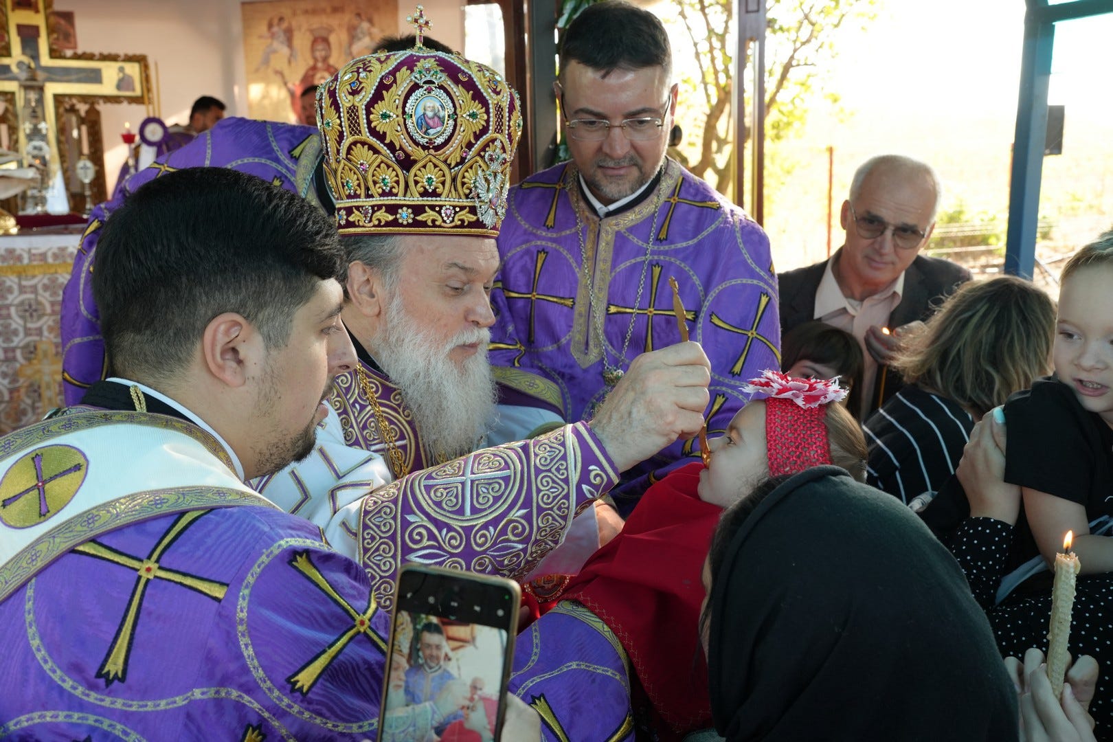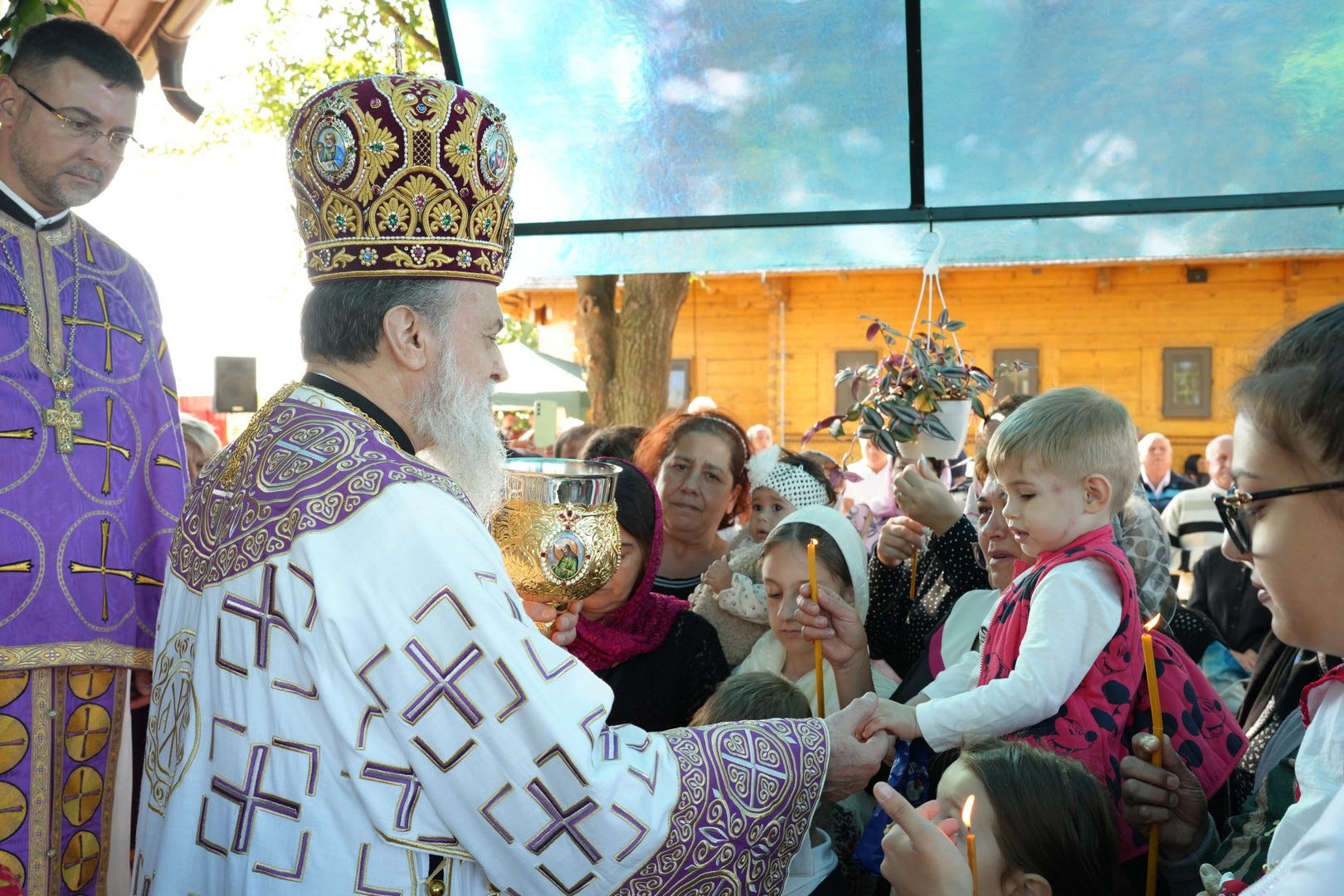 Preasfinția Sa a împărtășit toți copiii prezenți la Sfânta Liturghie și pe toți adulții care au primit dezlegare de la duhovnic.