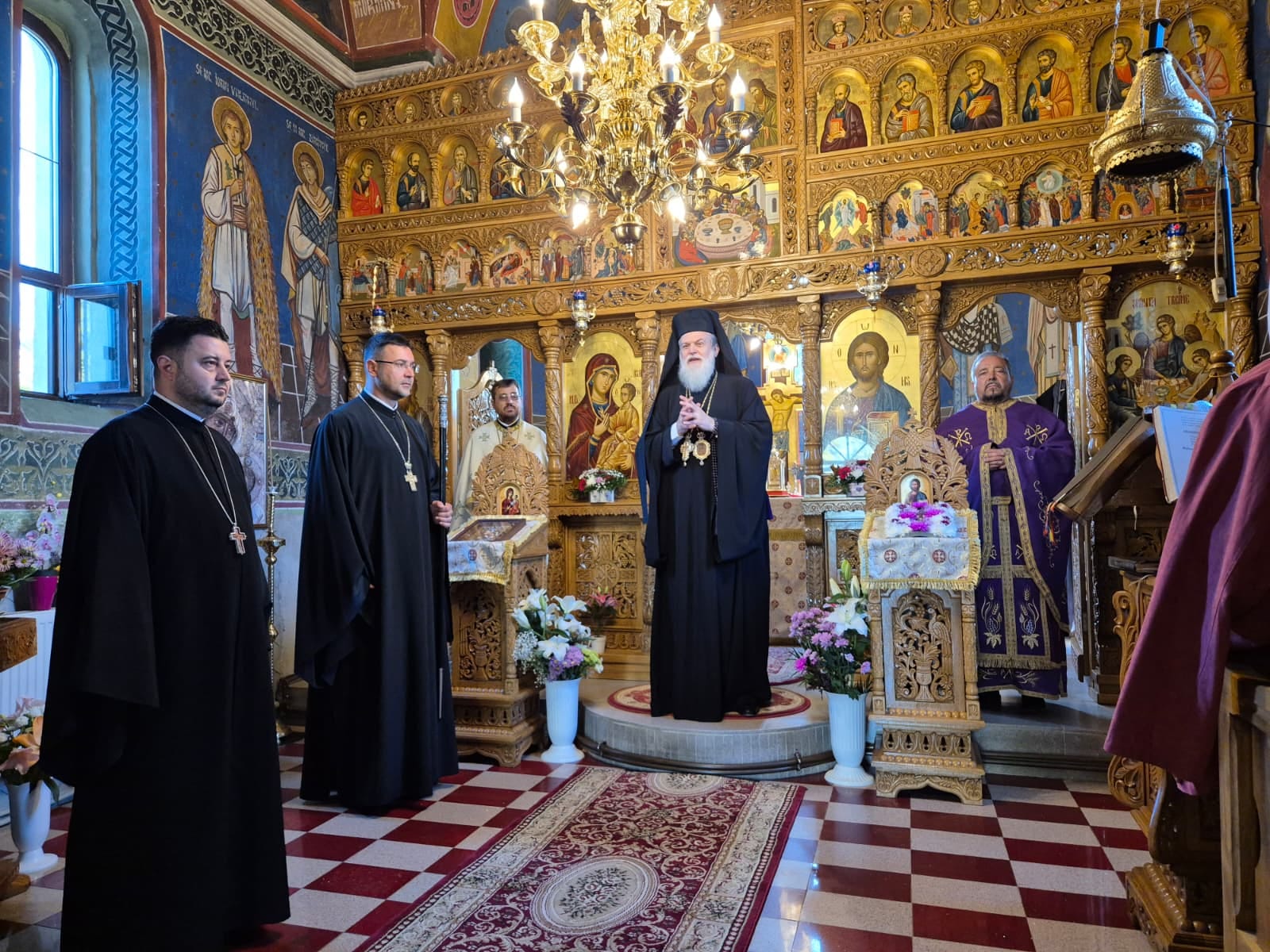 La Sfânta Liturghie arhierească, sub protia Preasfinției Sale, au slujit preacuviosul părinte Arhimandrit Rafail, vicar eparhial, preacucernicii părinți consilieri Florin Ionescu, Marius Gabriel Purcărea, Nicușor Silviu Dascălu, Andrei Cornel Petre, preacucernicul părinte Vasile Viorel Dinu, Protopop de Călărași, preacuvioși părinți stareți, preoți, arhidiaconi și diaconi.