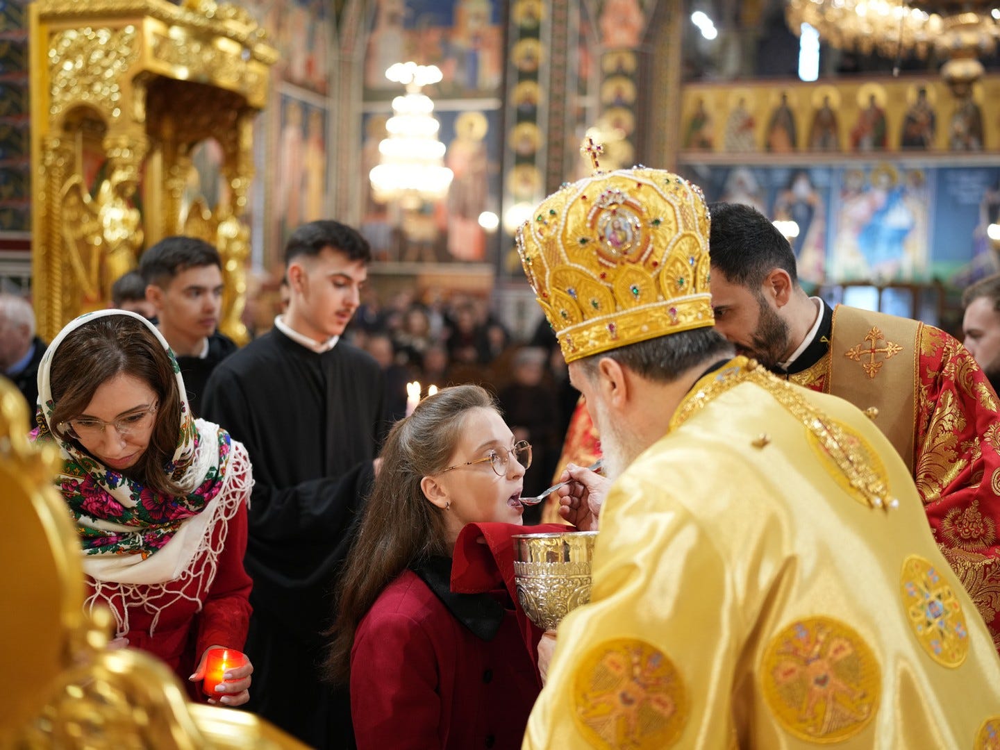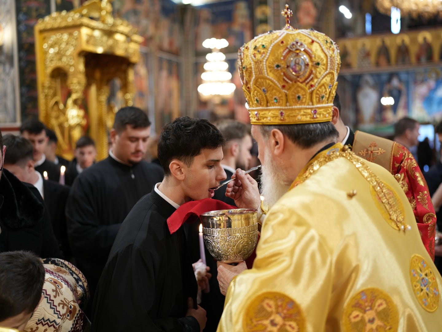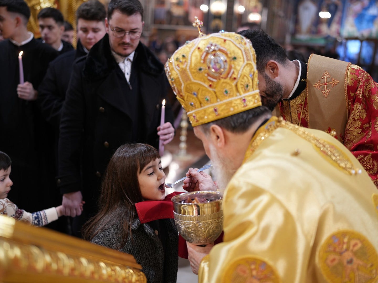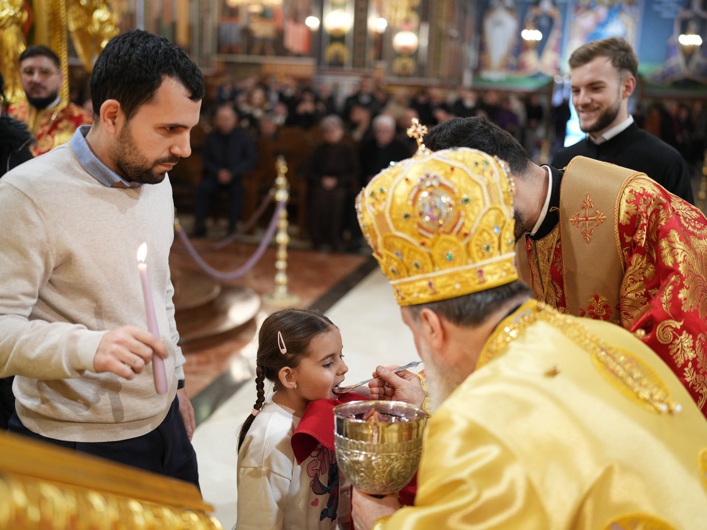 Întâistătătorul Eparhiei noastre a împărtășit copiii și credincioșii prezenți la slujbă, care au primit dezlegare de la preotul duhovnic.