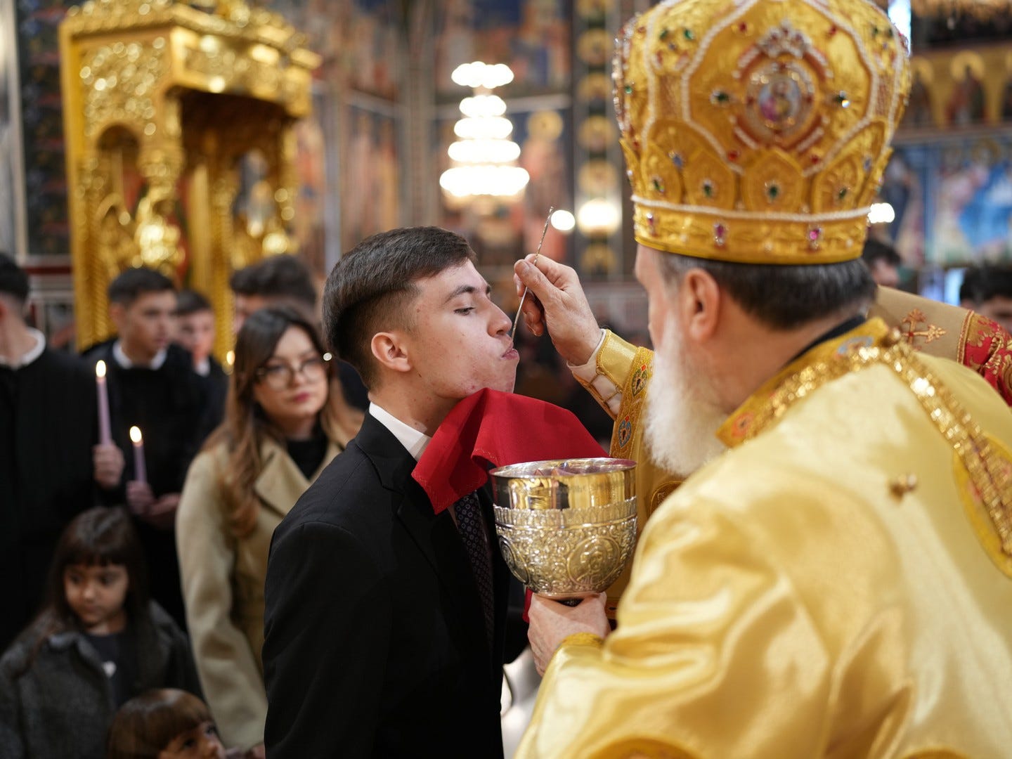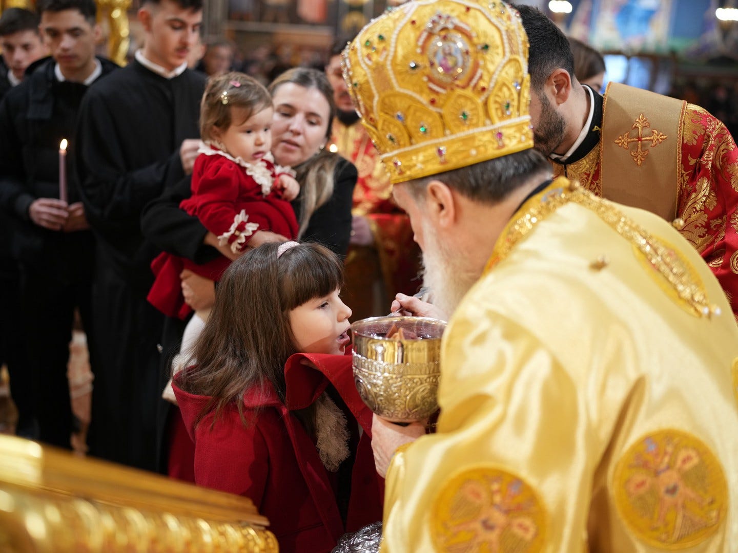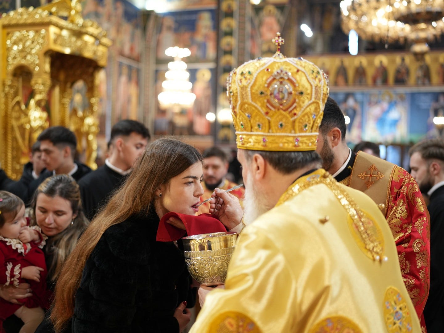 Întâistătătorul Eparhiei noastre a împărtășit copiii și credincioșii prezenți la slujbă, care au primit dezlegare de la preotul duhovnic.