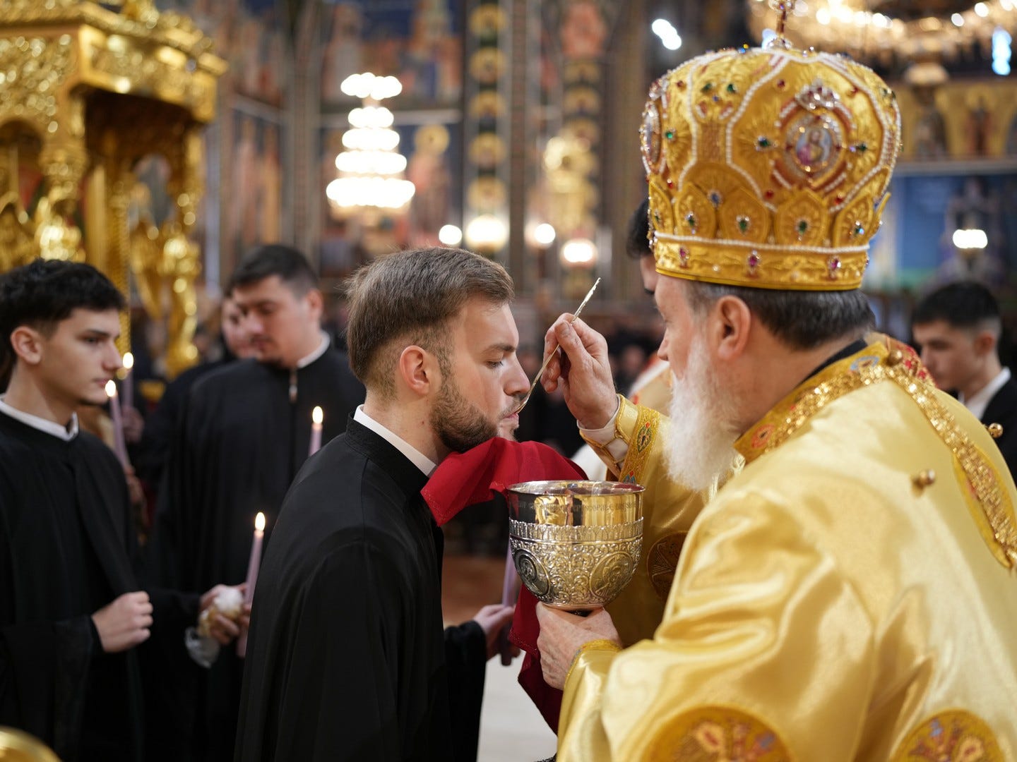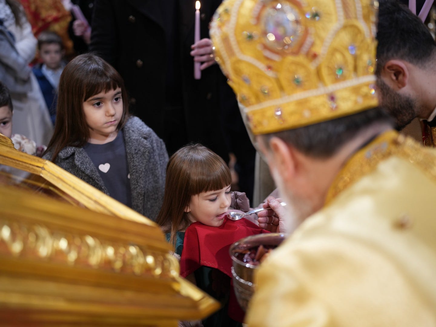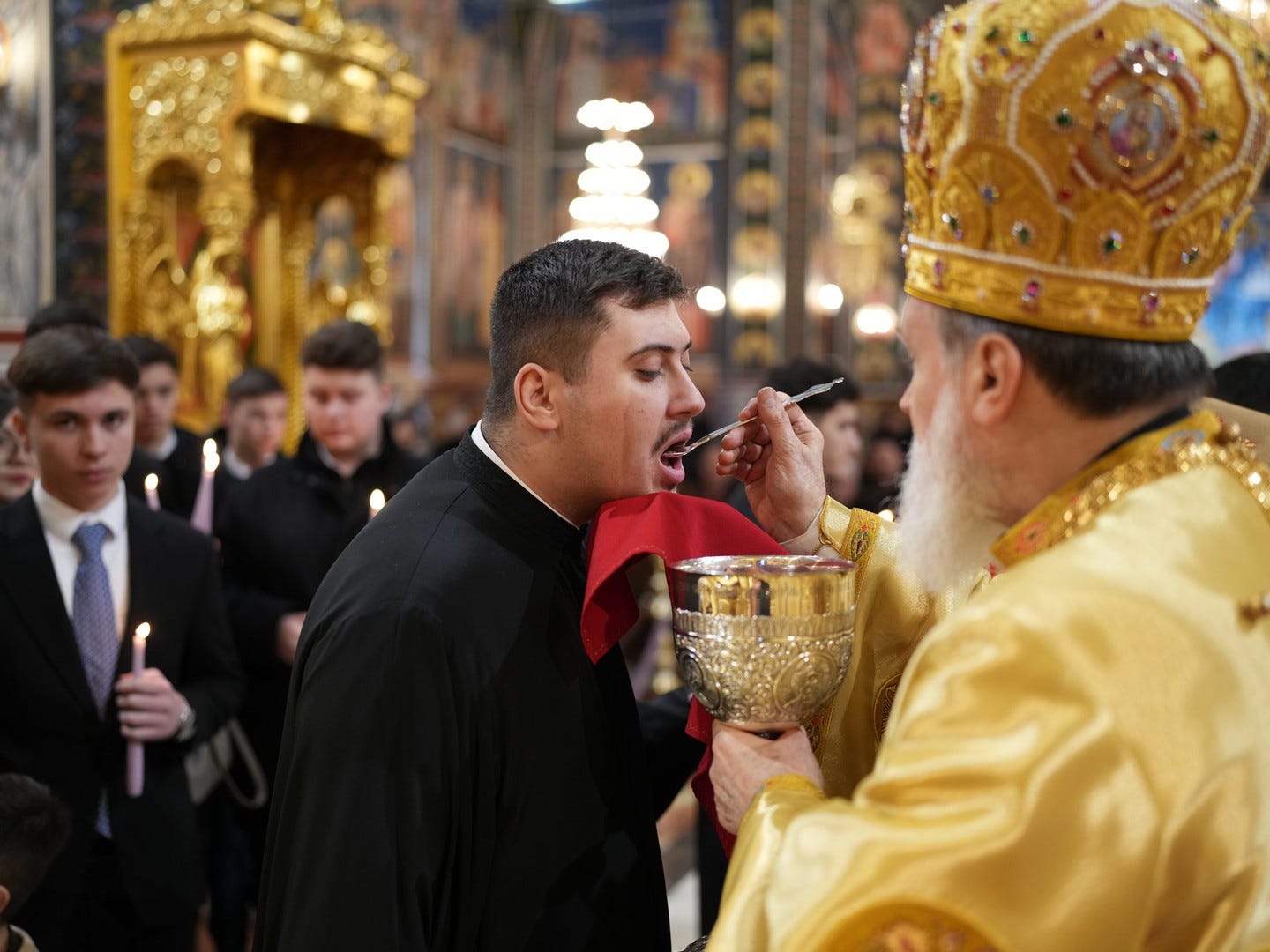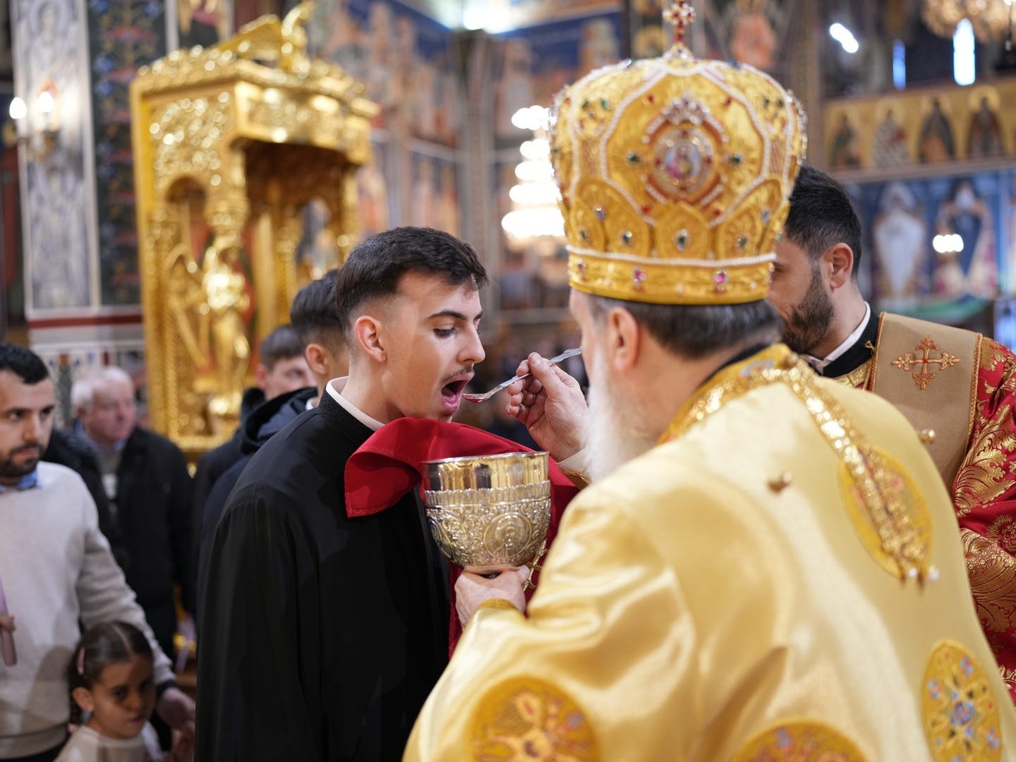 Întâistătătorul Eparhiei noastre a împărtășit copiii și credincioșii prezenți la slujbă, care au primit dezlegare de la preotul duhovnic.