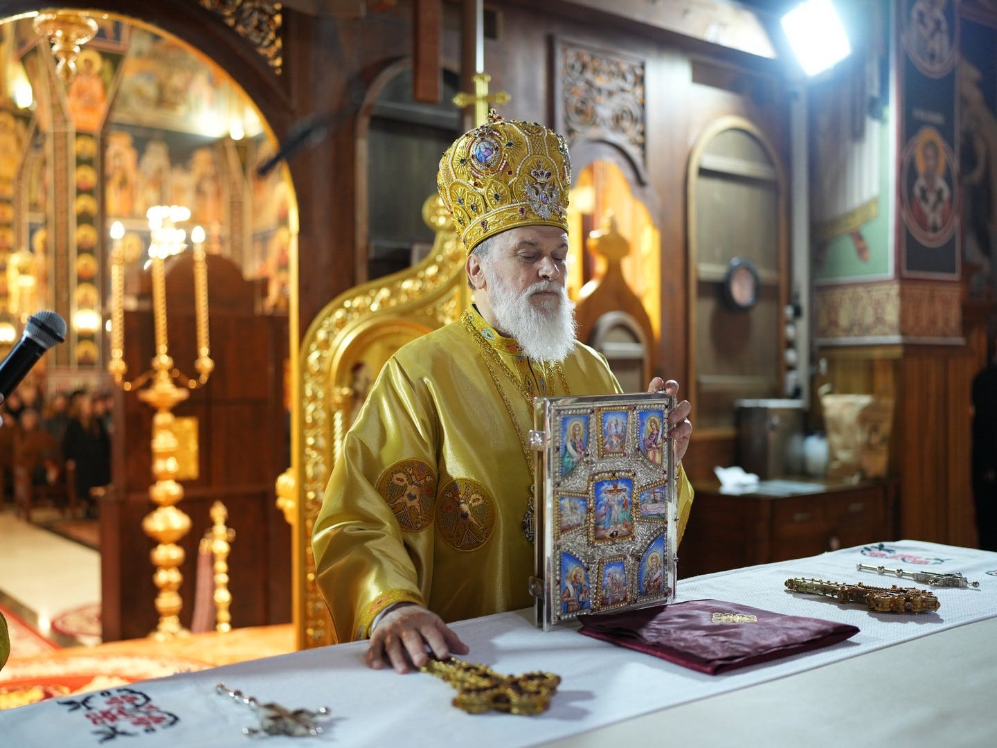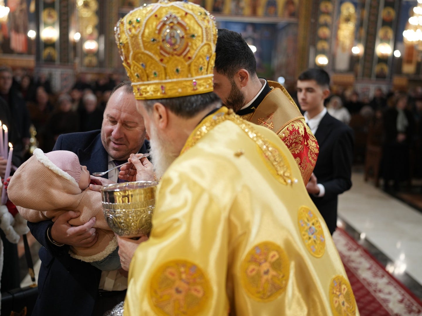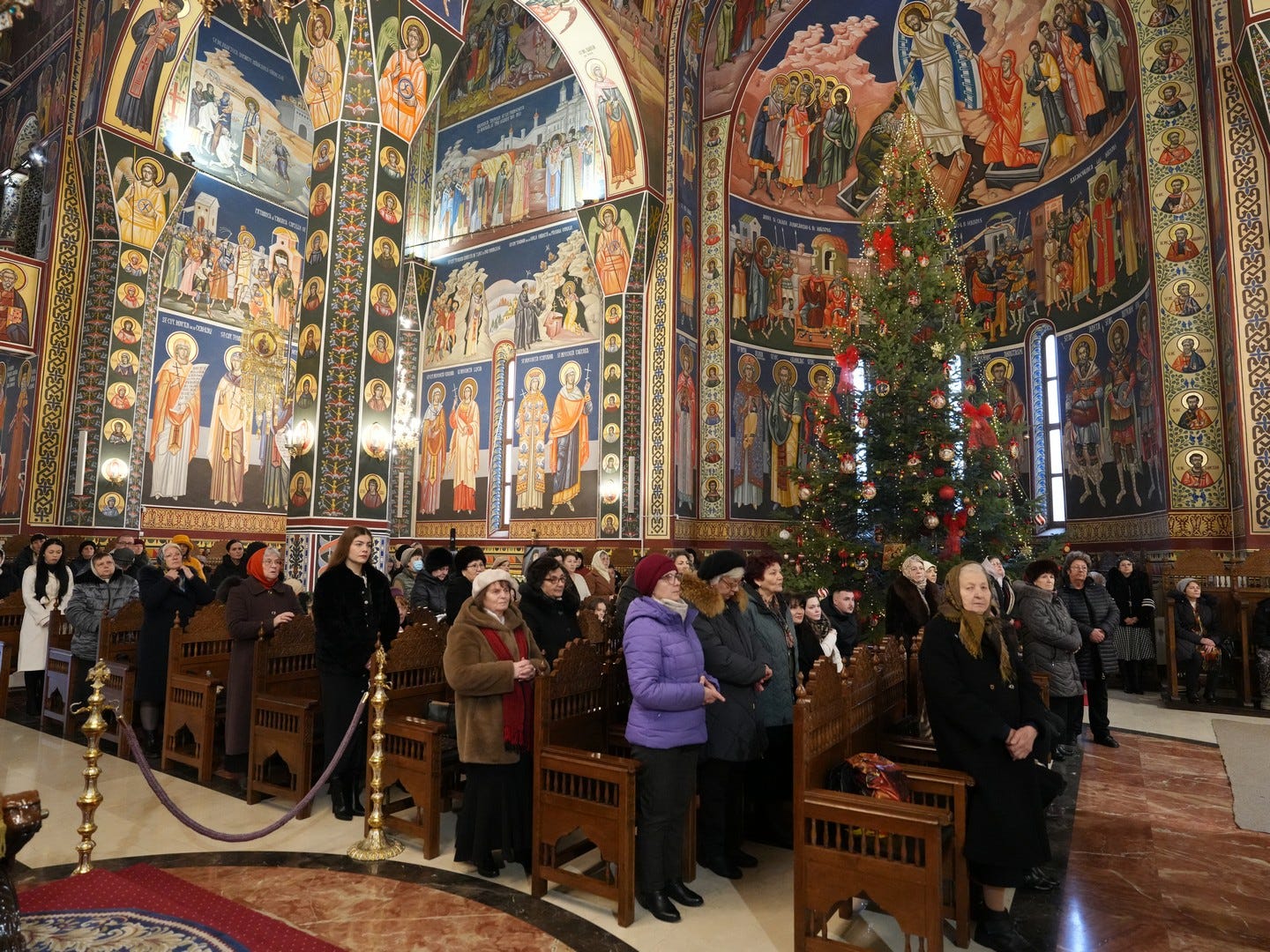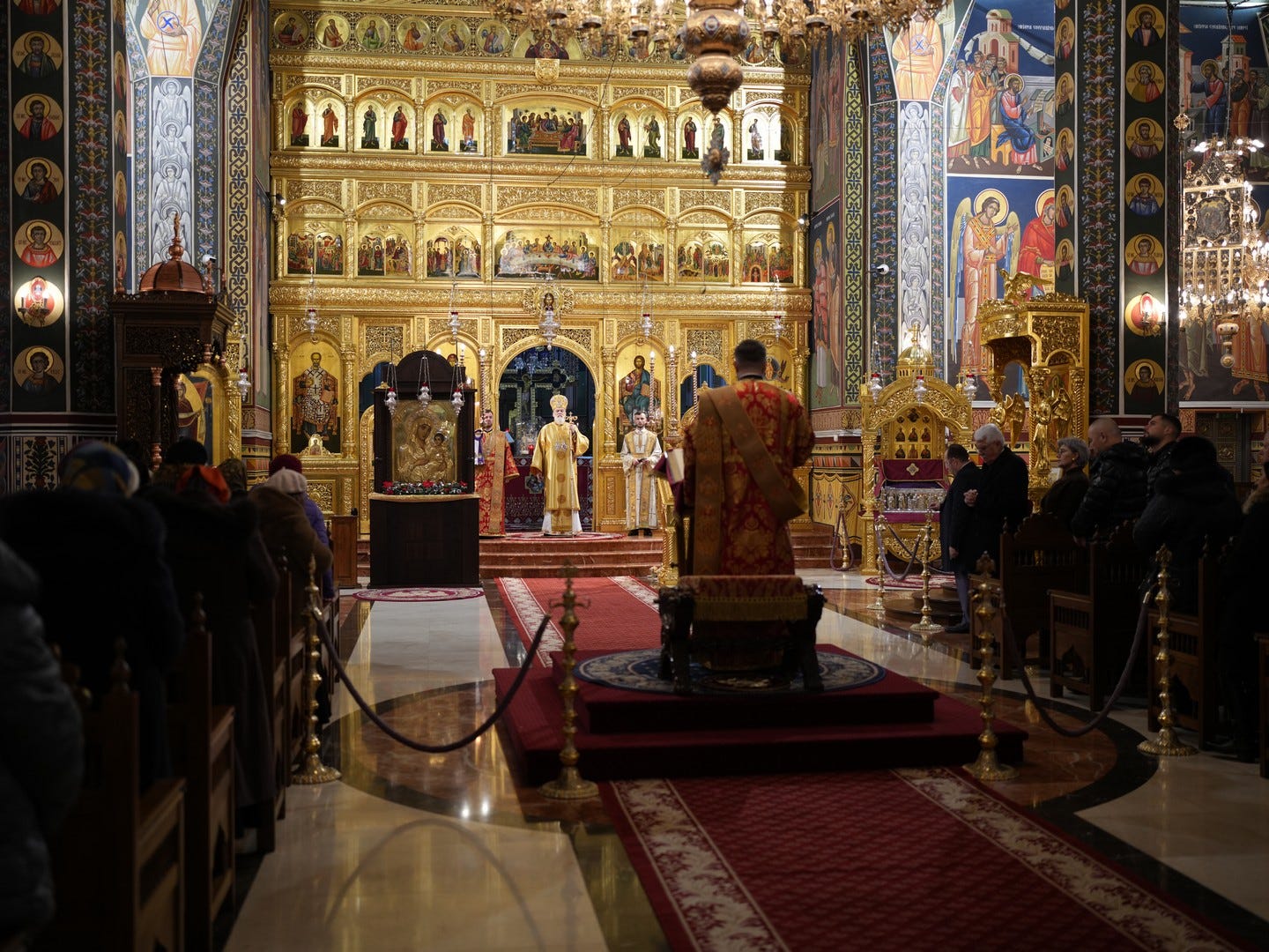 După Otpust, Preasfinția Sa a binecuvântat credincioșii urându-le să se bucure de pacea vestită de îngeri, de pacea dumnezeiască, dăruită de Mântuitorul creației Sale.