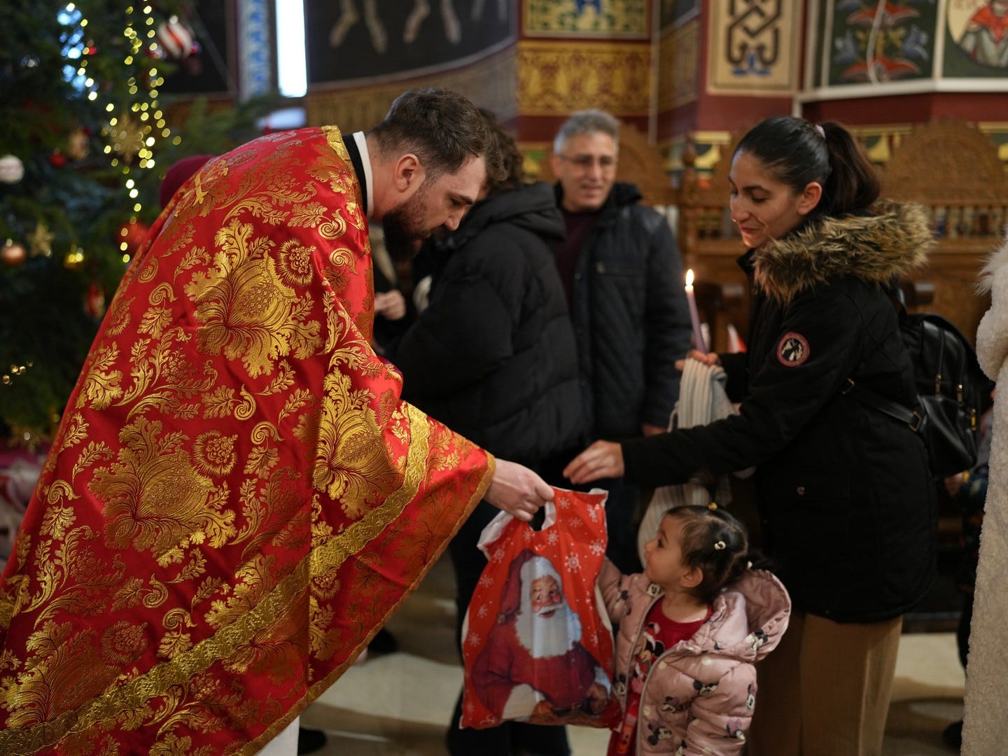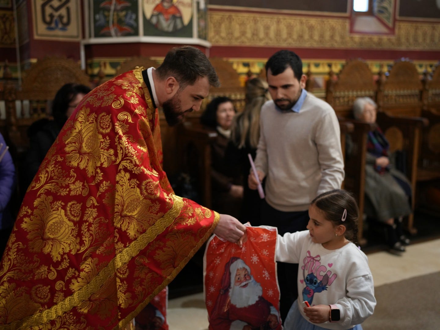 La sfârșitul slujbei copiii prezenți la Sfânta Liturghie au primit câte un cadou din partea Preasfințitului Părinte Episcop Vincențiu, iar adulții au primit câte o Pastorală tipărită cu binecuvântarea Preasfinției Sale, pentru sărbătoarea Nașterii Domnului.