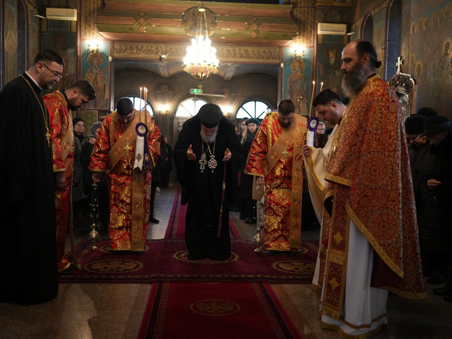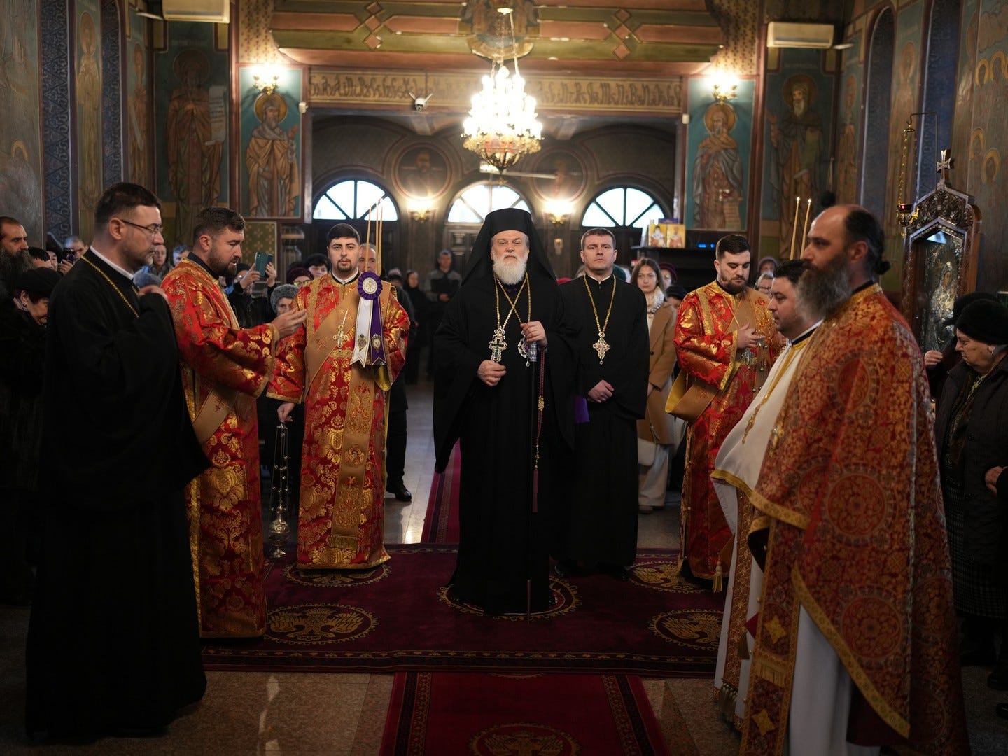Sub protia Preasfinției Sale s-a săvârșit Sfânta Liturghie, unde au slujit preacucernicii părinți consilieri Florin Ionescu, Marius Gabriel Purcărea, Nicușor Silviu Dascălu și Andrei Cornel Petre, preacucernicul părinte Dinu Viorel Vasile, Protopop de Călărași, un sobor de preoți și arhidiaconi.