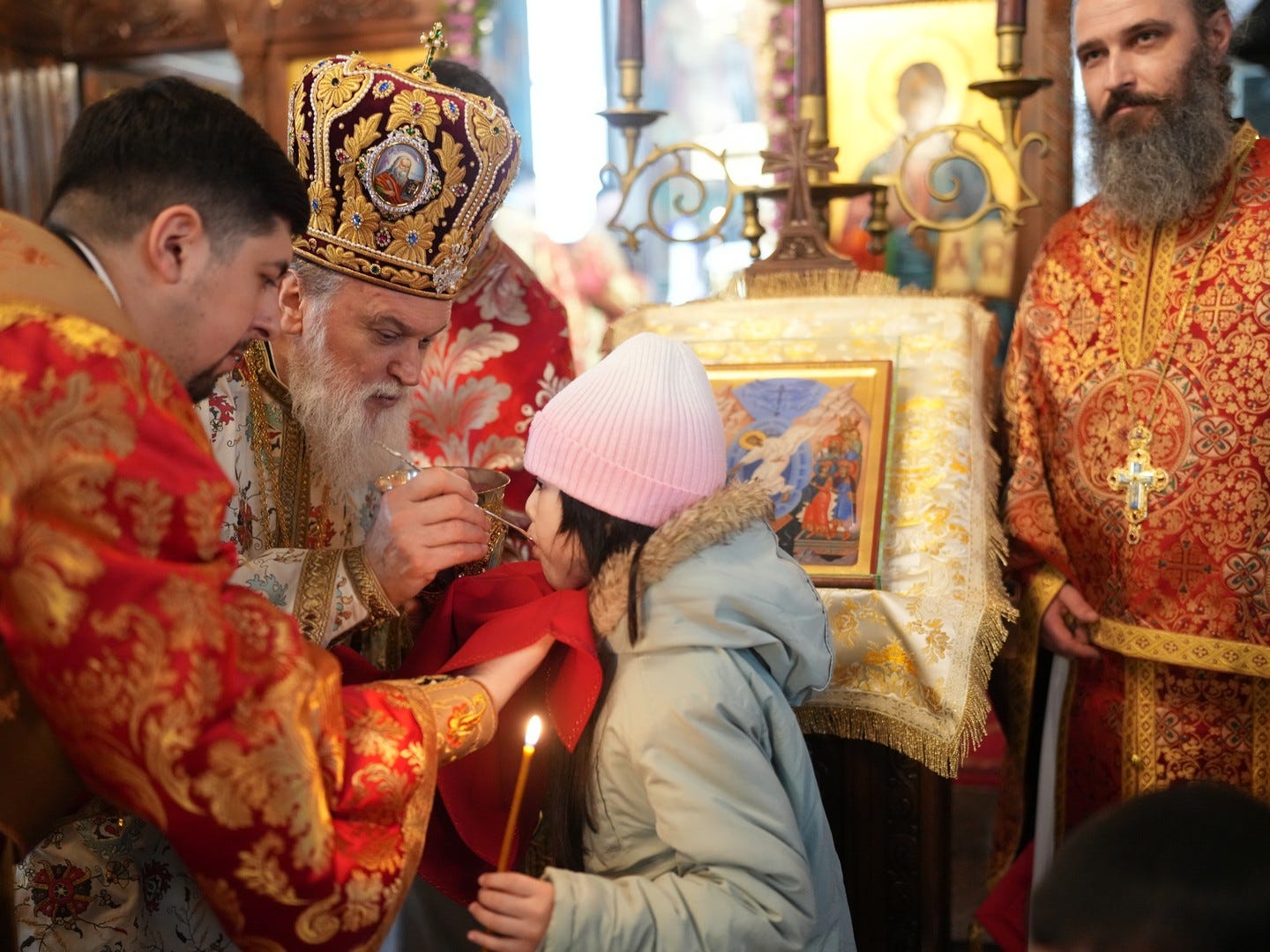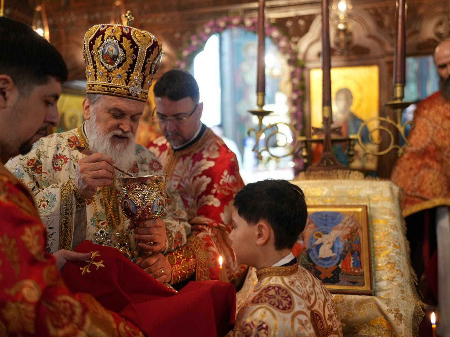 Preasfinția Sa a împărtășit toți copiii prezenți la Sfânta Liturghie.