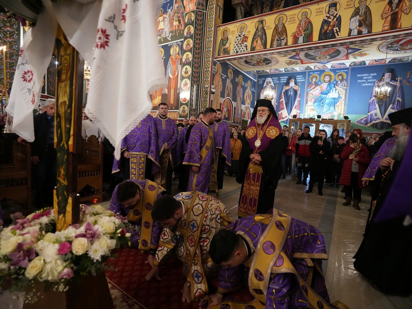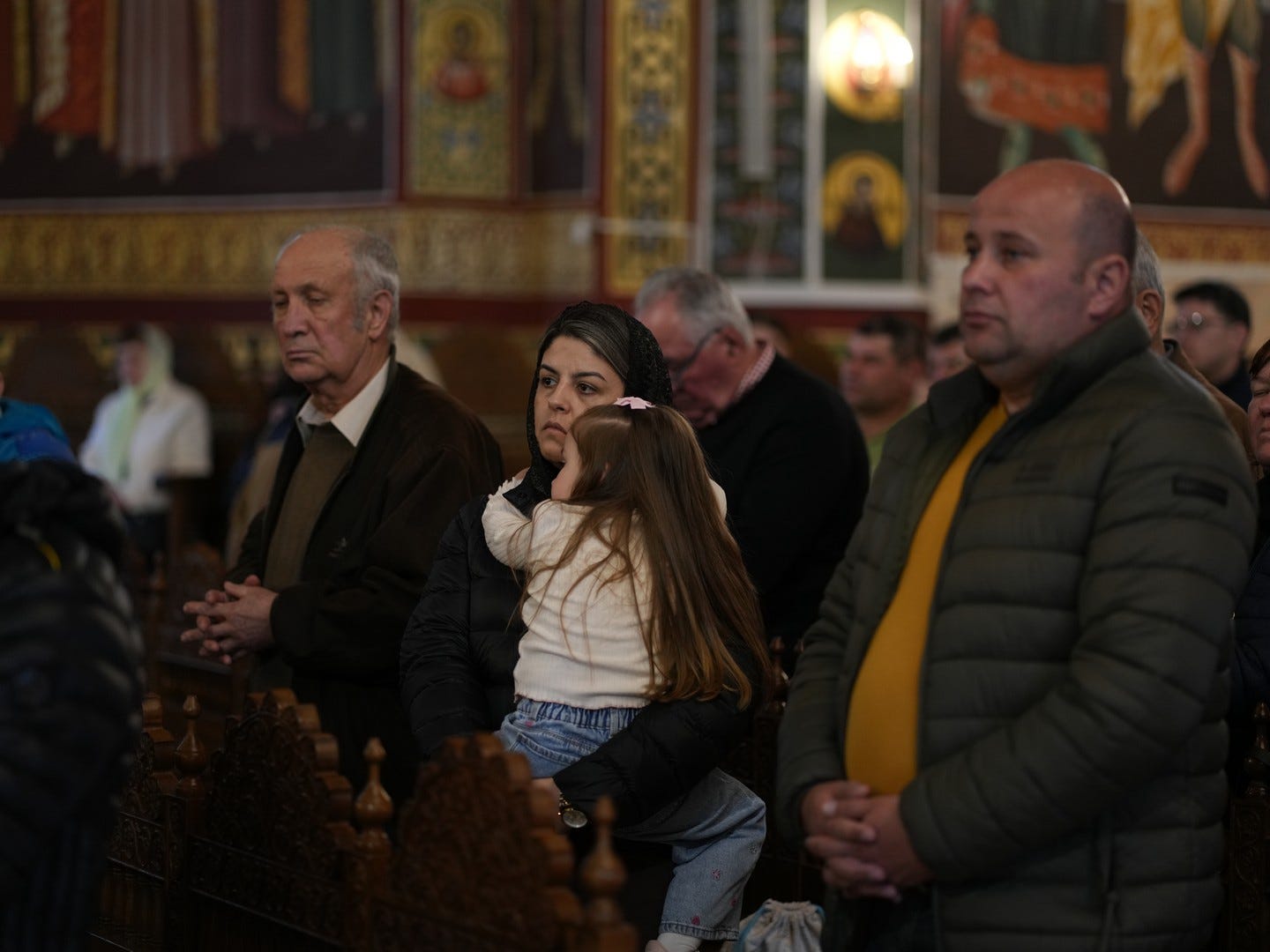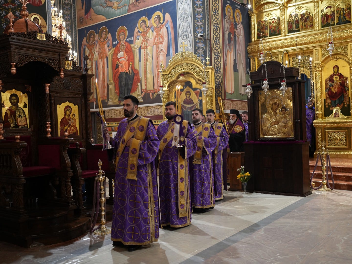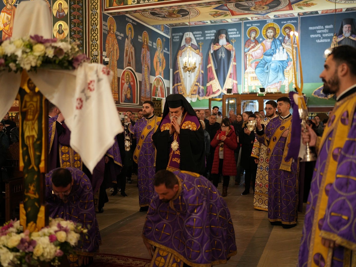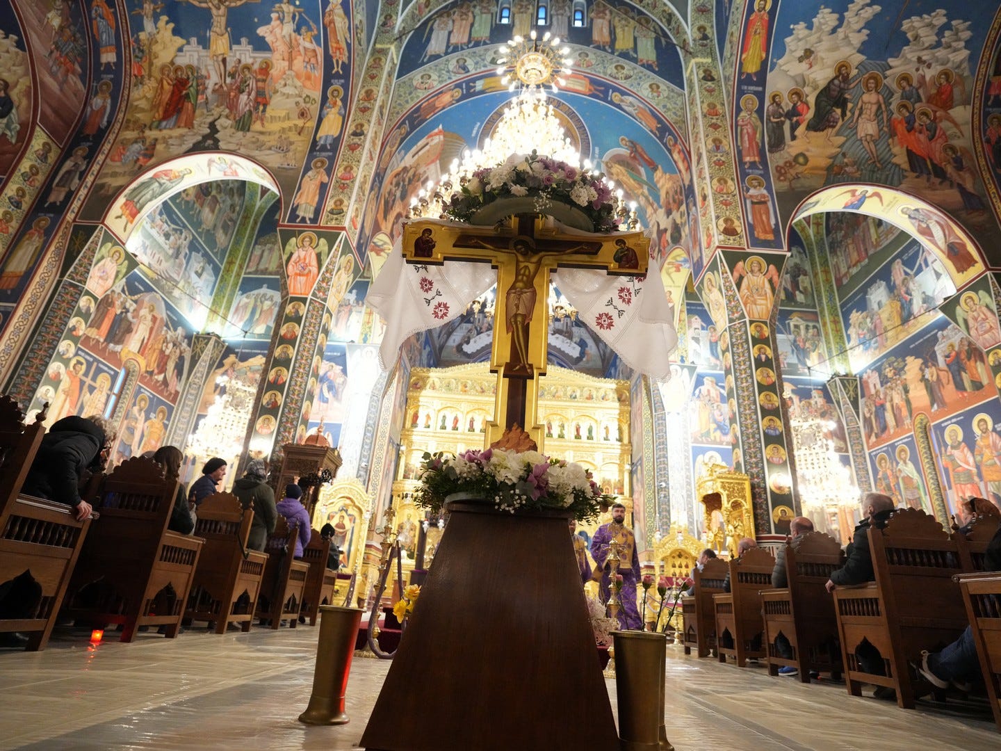 Un moment deosebit al slujbei a fost aducerea Sfintei Cruci în mijlocul bisericii, unde a fost așezată spre închinare, simbolizând jertfa lui Hristos pentru mântuirea lumii.