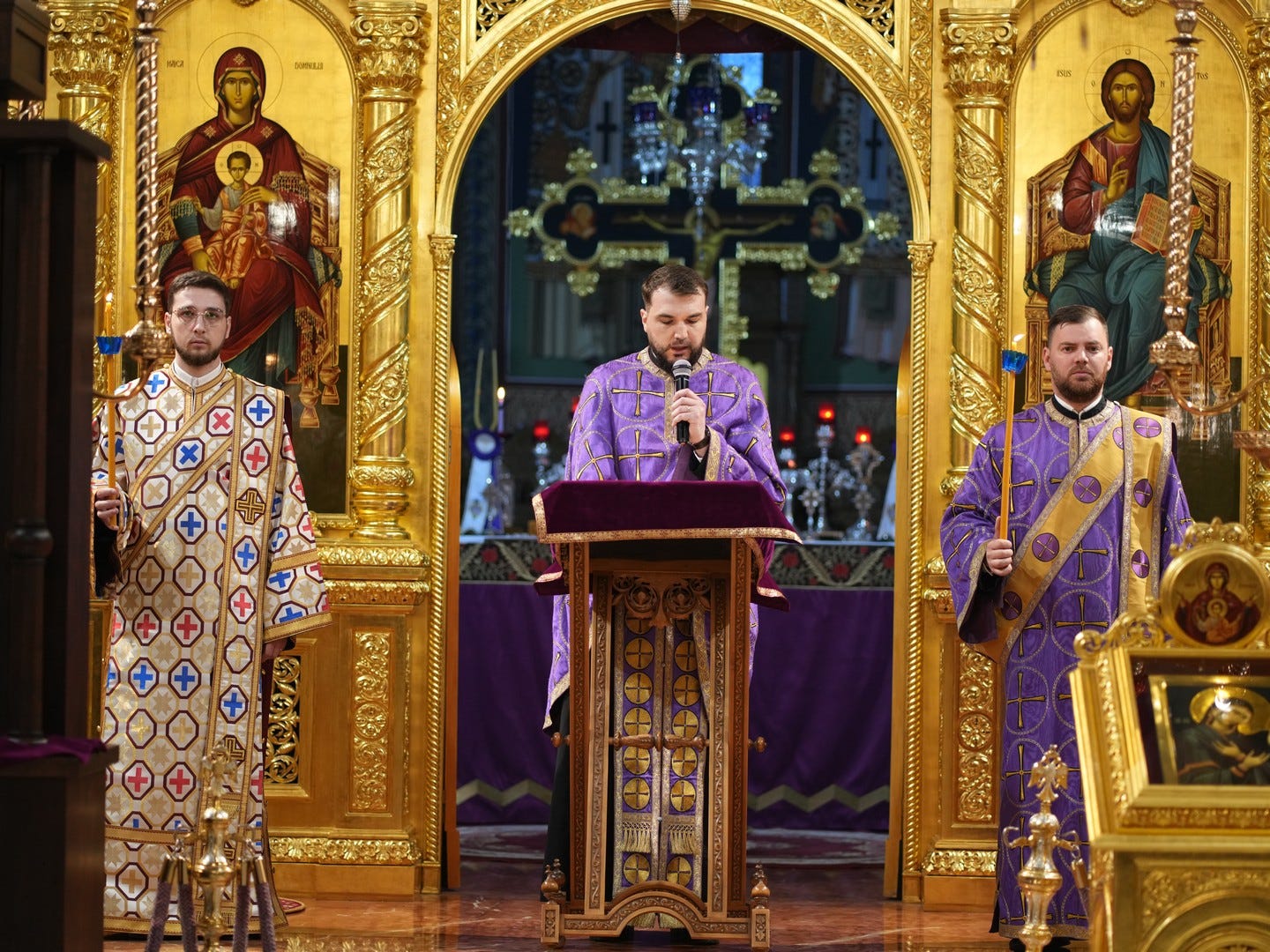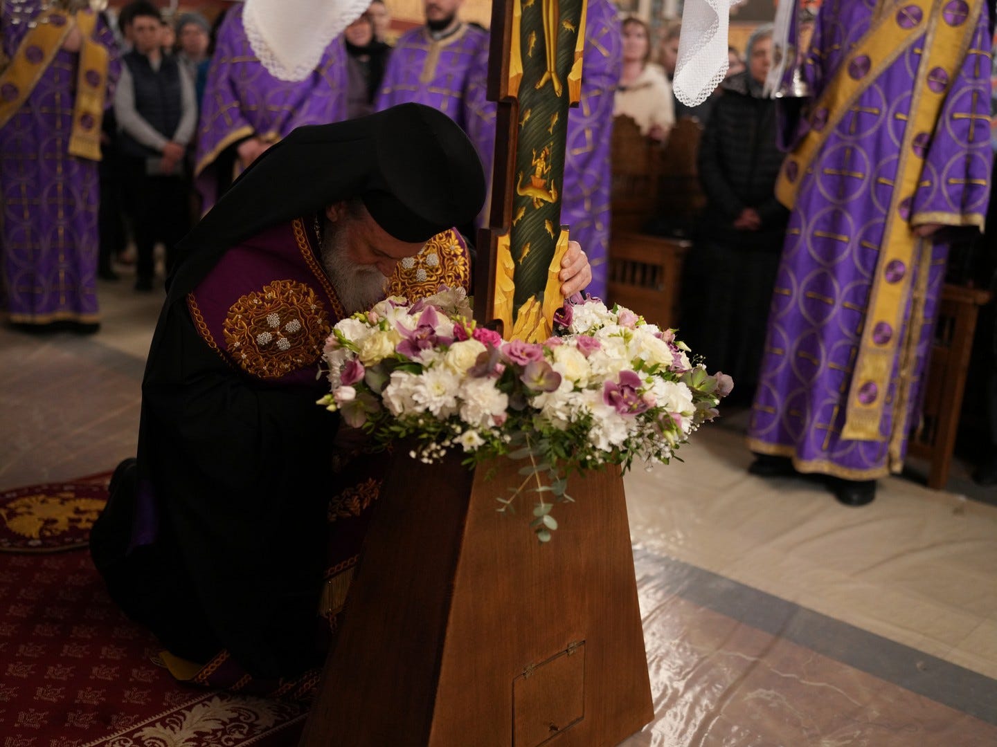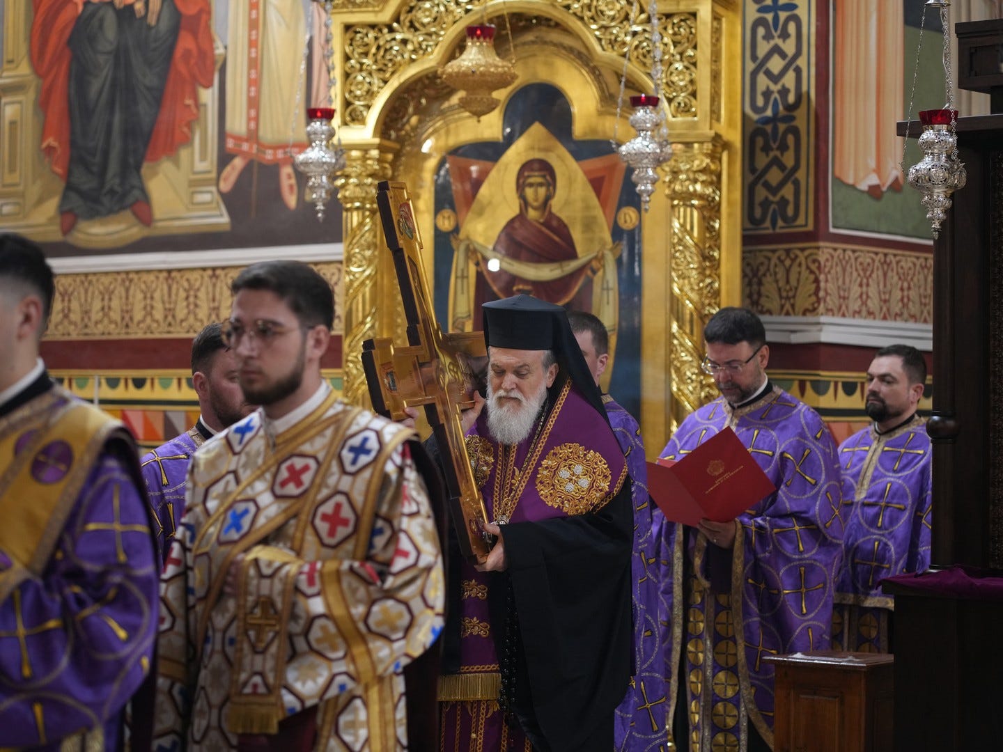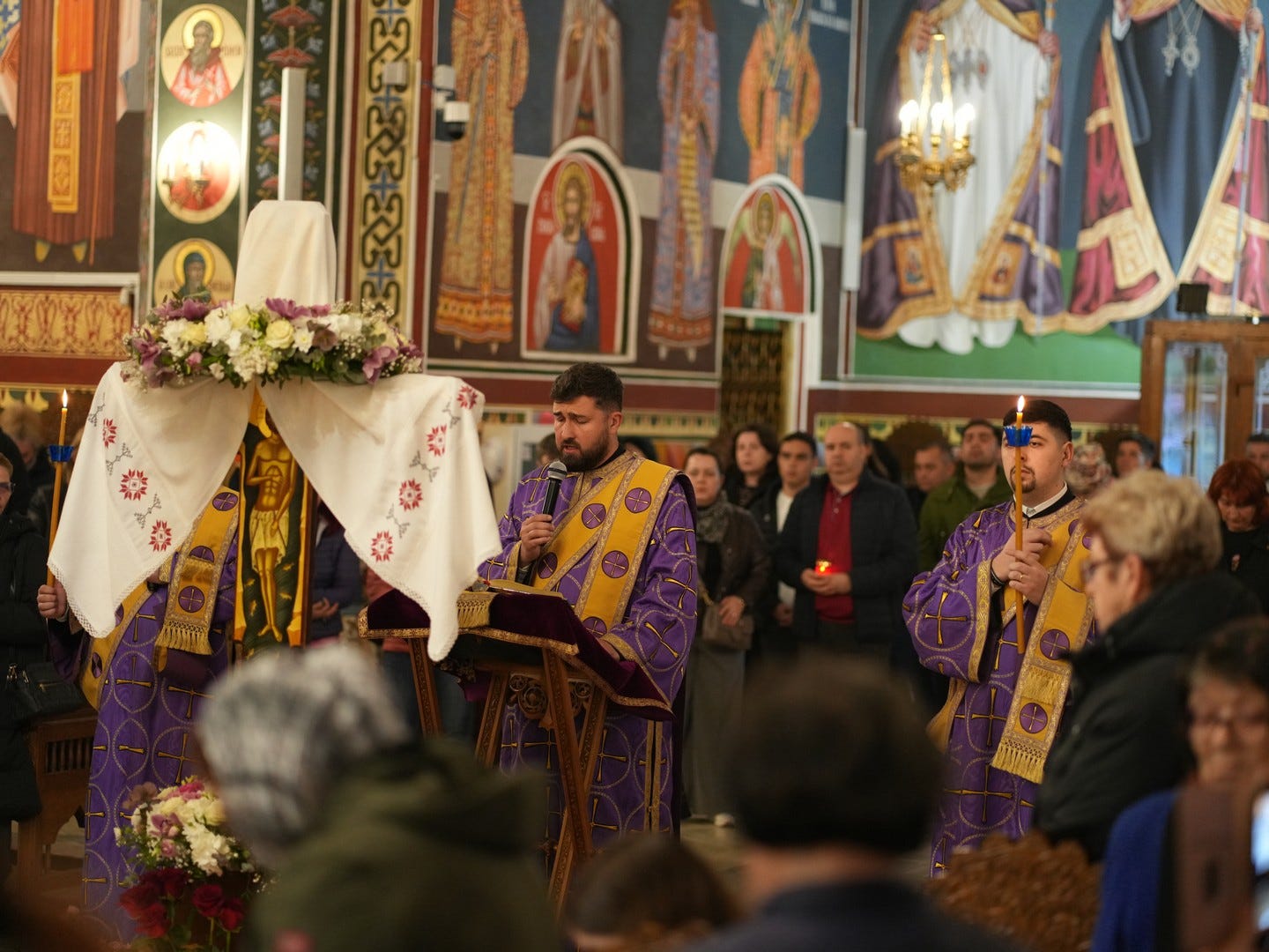 Un moment deosebit al slujbei a fost aducerea Sfintei Cruci în mijlocul bisericii, unde a fost așezată spre închinare, simbolizând jertfa lui Hristos pentru mântuirea lumii.