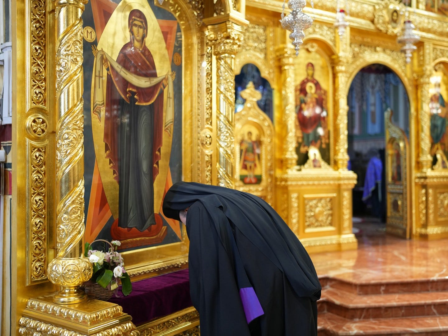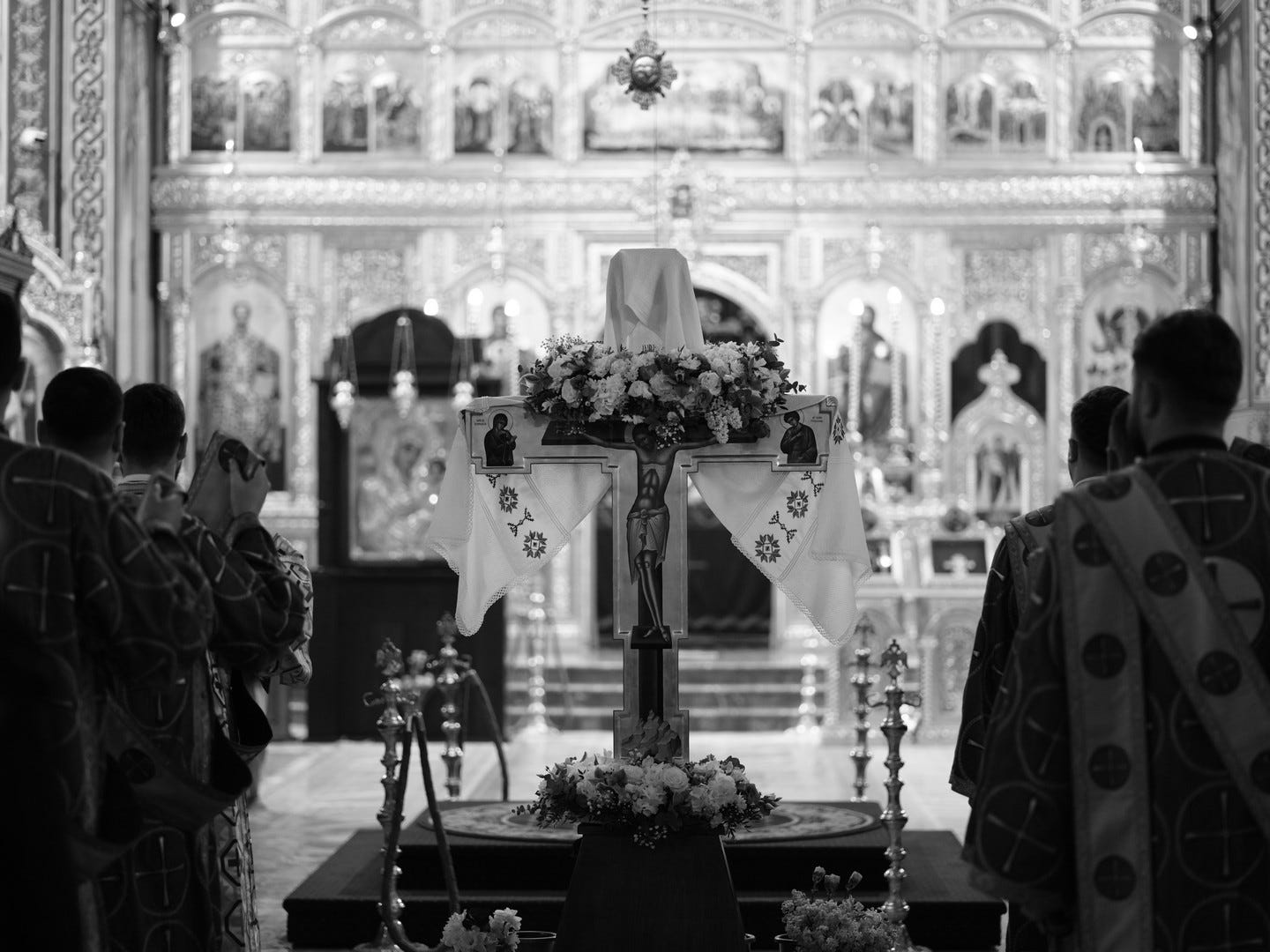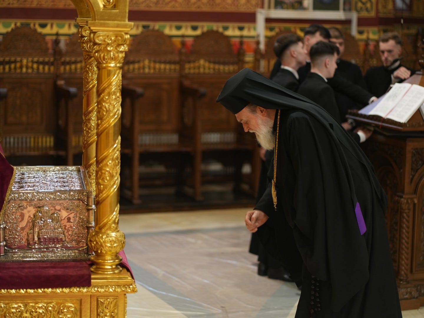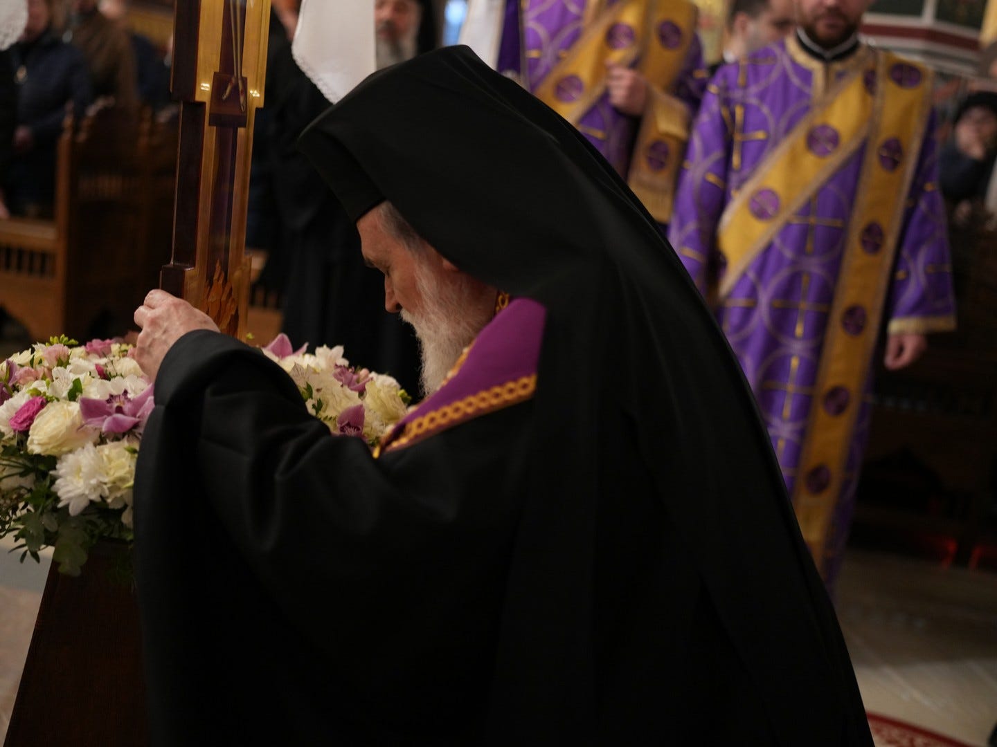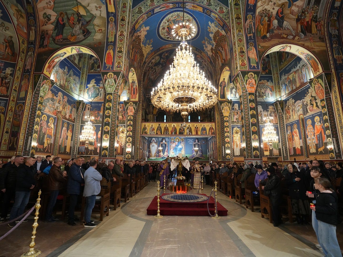 Un moment deosebit al slujbei a fost aducerea Sfintei Cruci în mijlocul bisericii, unde a fost așezată spre închinare, simbolizând jertfa lui Hristos pentru mântuirea lumii.