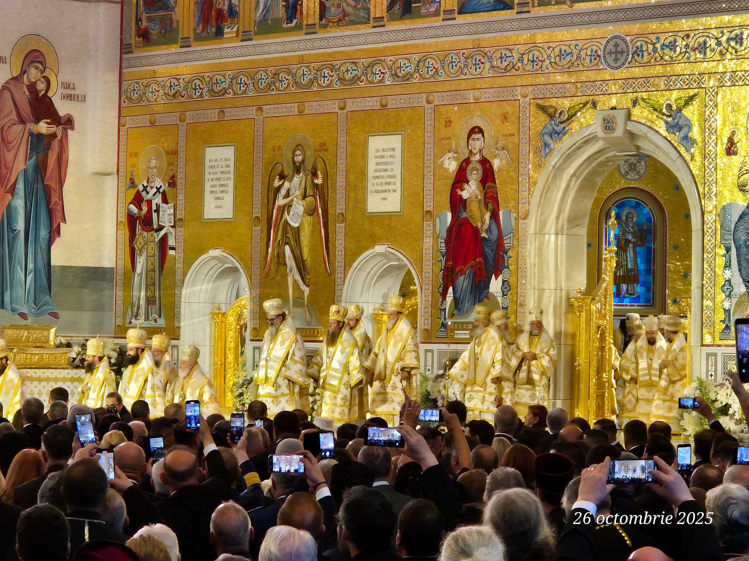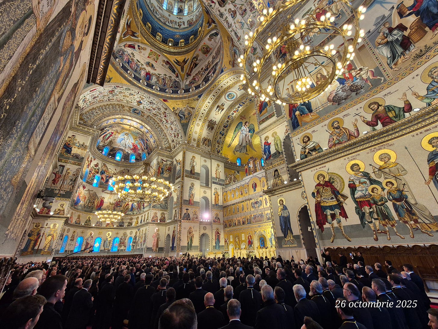 Duminică, 26 octombrie 2025, în ziua de prăznuire a Sfântului Mare Mucenic Dimitrie, Ocrotitorul Bucureștilor, a avut loc sfințirea picturii în mozaic a Catedralei Naționale din București.