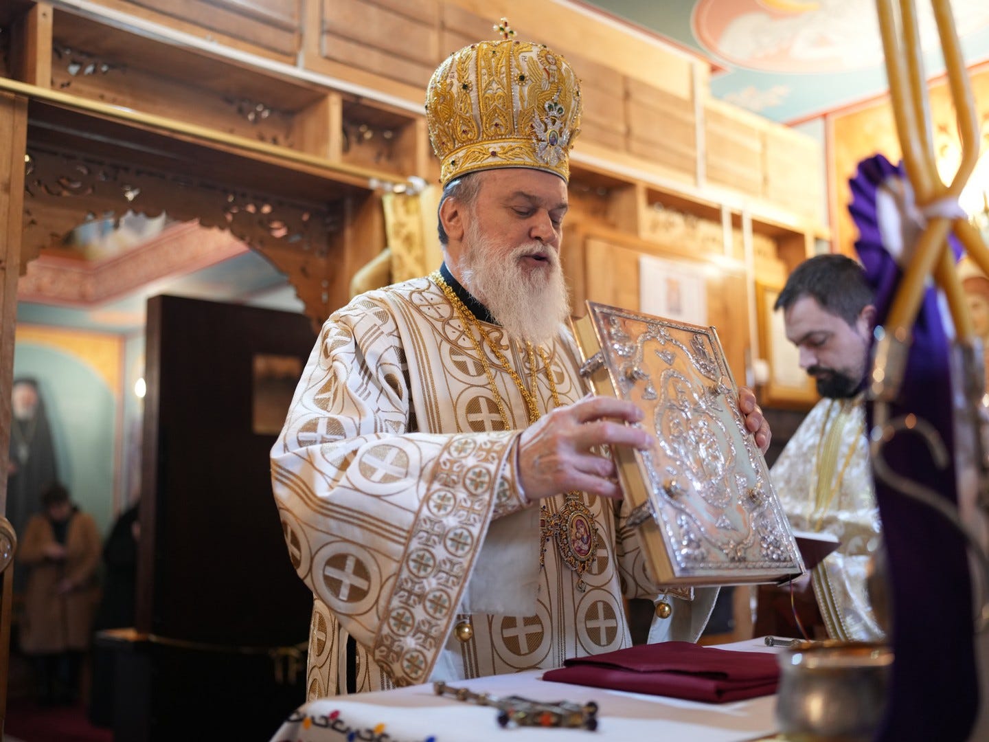 Preasfințitul Părinte Episcop a citit Rugăciunea Arhierească de dezlegare pentru începutul călătoriei spirituale a Sfântului și Marelui Post, pentru slujitori, obștea mănăstirii și pentru toți credincioșii prezenți la Sfânta Liturghie.