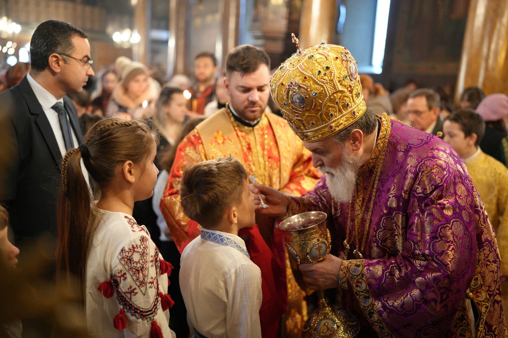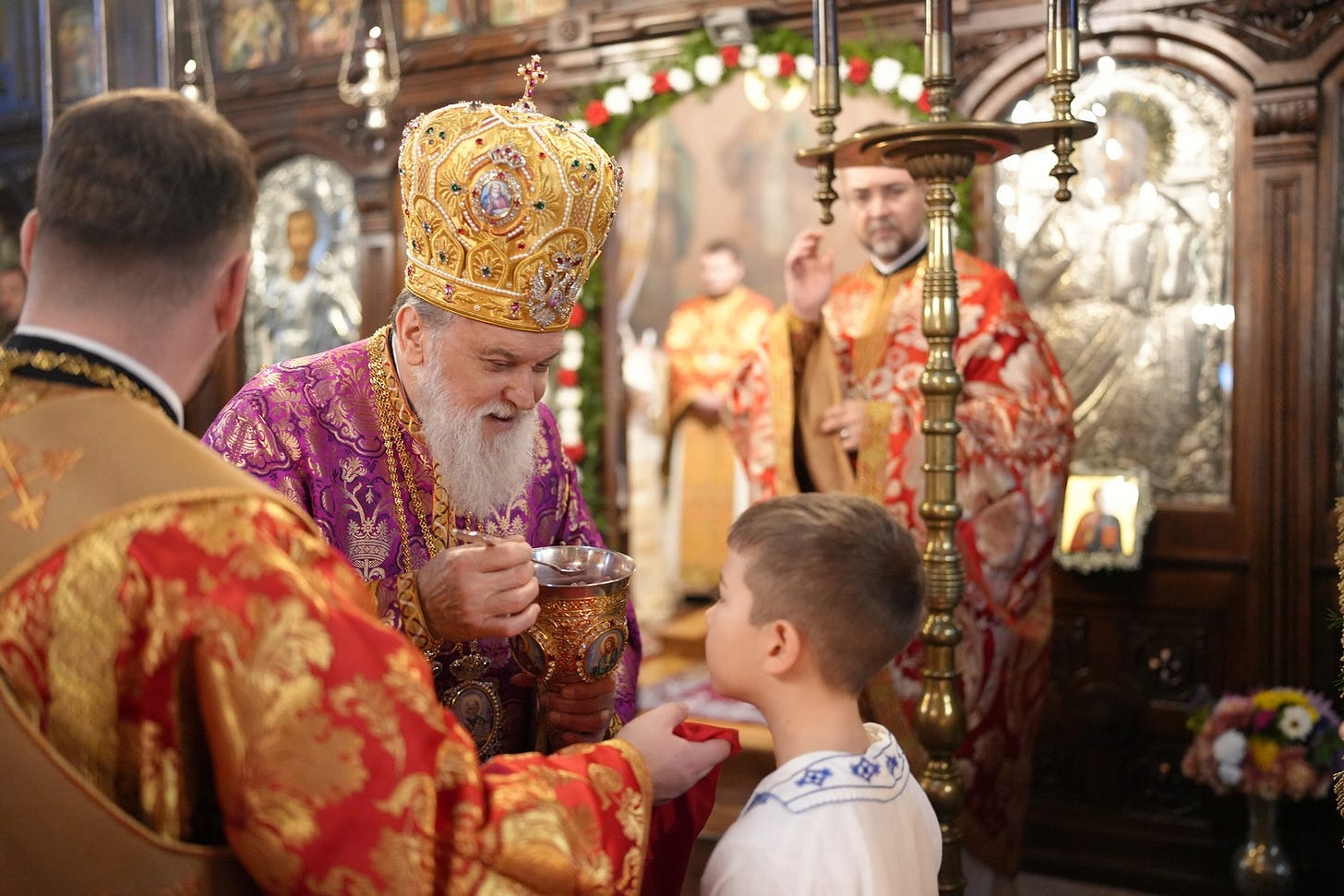Preasfinția Sa a împărtășit toți copiii prezenți și credincioșii care au primit dezlegare de la duhovnic.