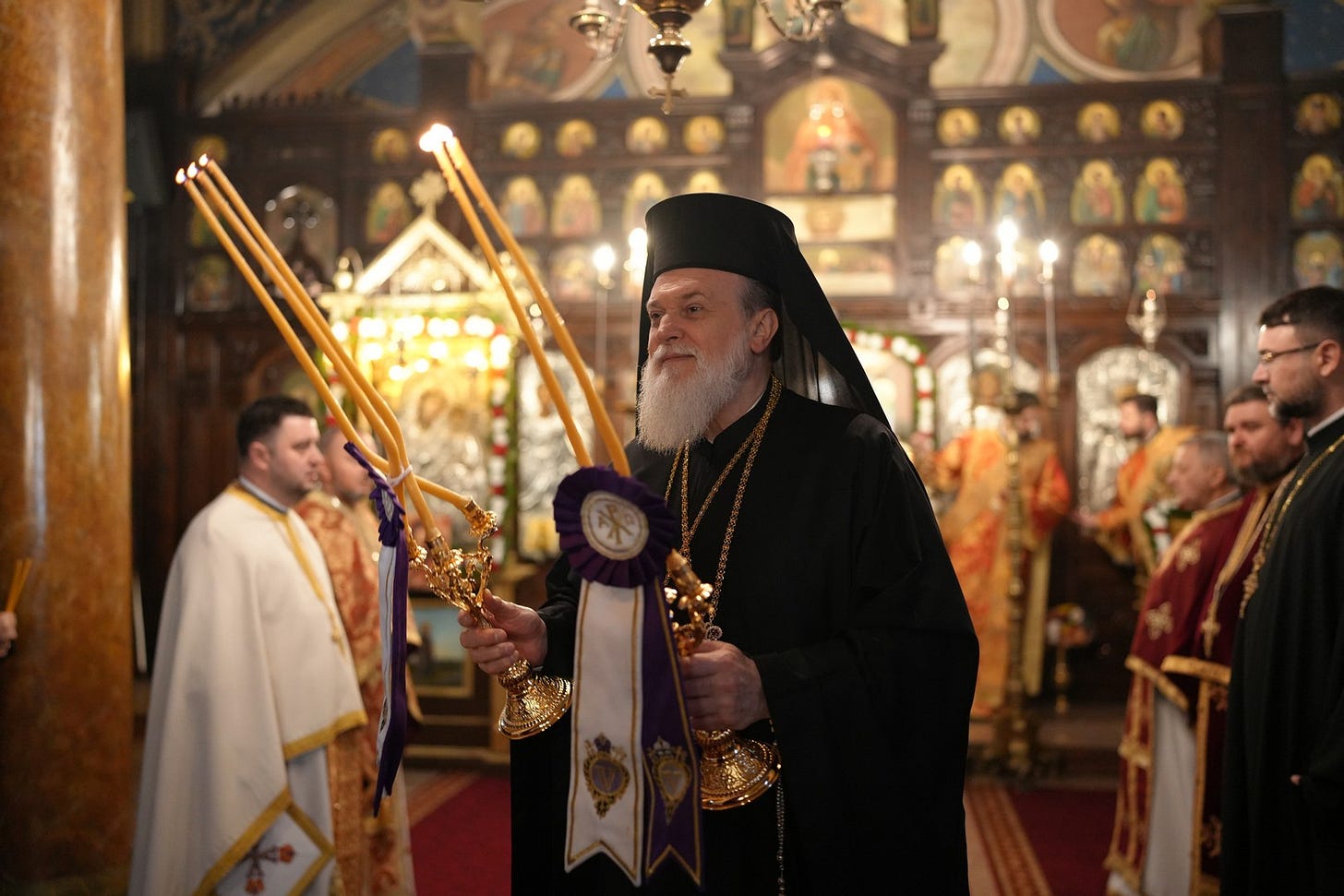 Sub protia Preasfinției Sale s-a săvârșit Sfânta Liturghie, unde au slujit preacucernicii părinți consilieri Florin Ionescu, Marius Gabriel Purcărea, Nicușor Silviu Dascălu și Andrei Cornel Petre, preacucernicul părinte Dinu Viorel Vasile, Protopop de Călărași, un sobor de preoți și arhidiaconi.