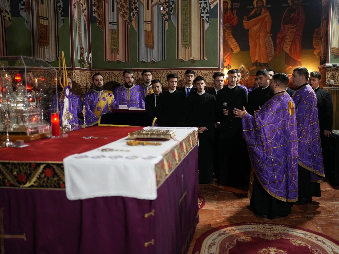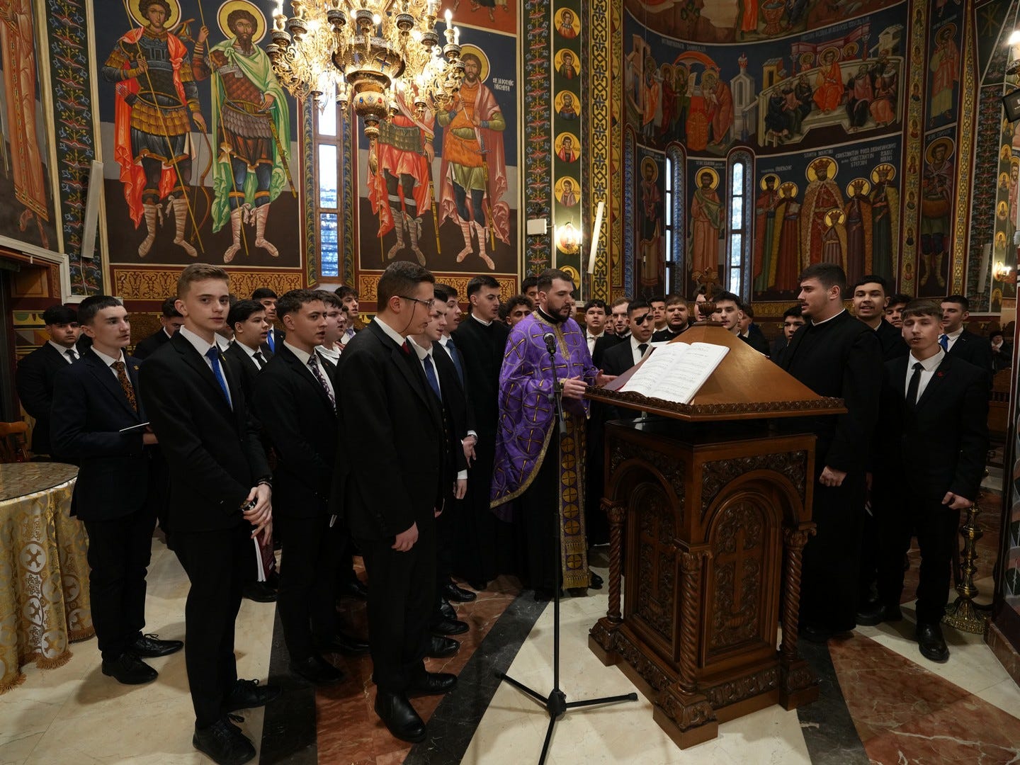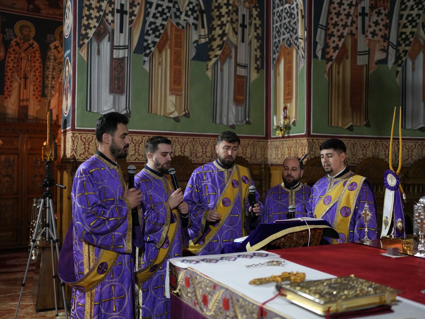 Răspunsurile liturgice au fost oferite de un grup psaltic format din elevi și studenți, care au contribuit la crearea unei atmosfere de profundă reculegere și rugăciune, specifică acestei perioade liturgice.
