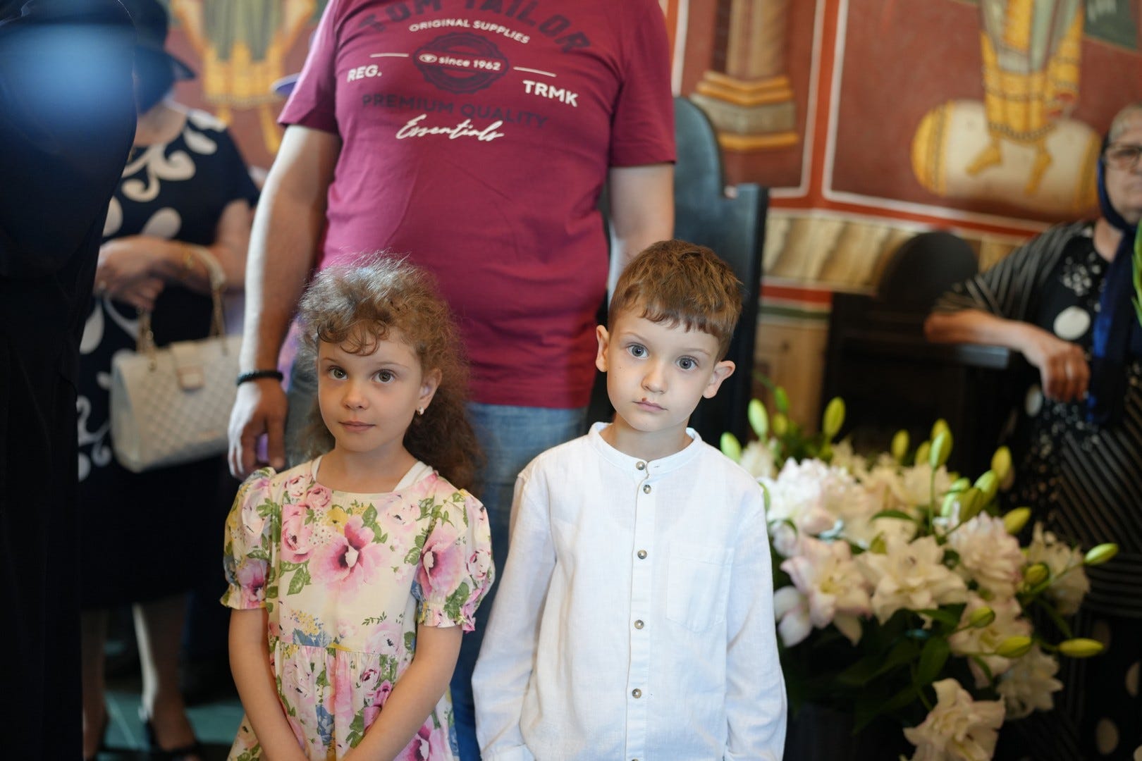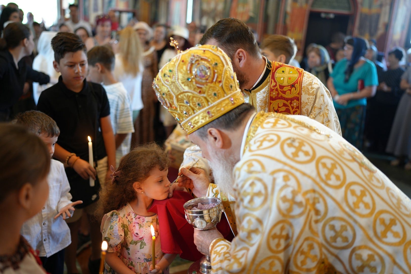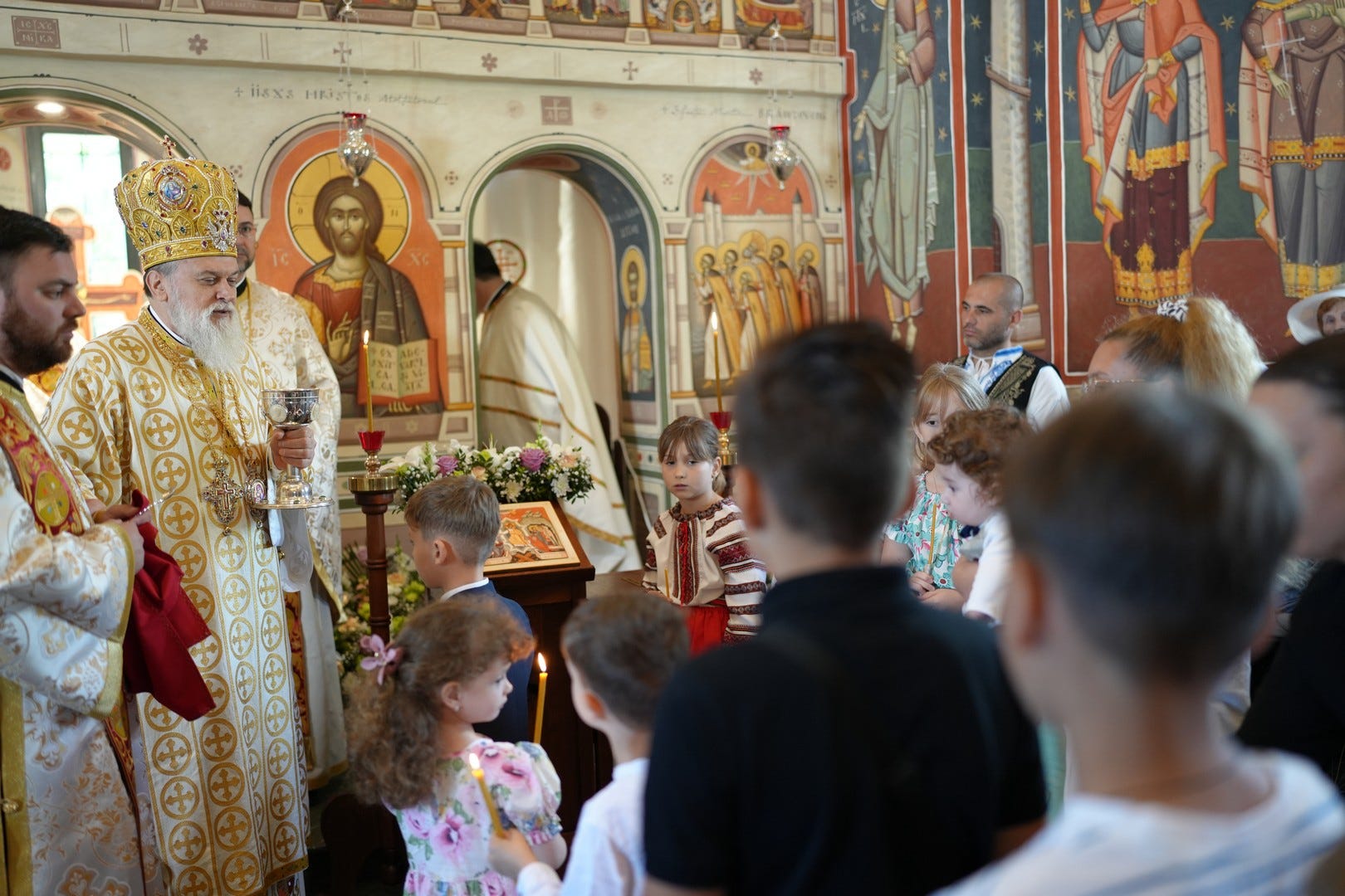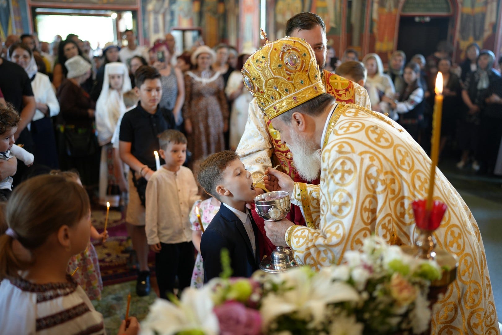 Preasfinția Sa a împărtășit copiii prezenți la Sfânta Liturghie.
