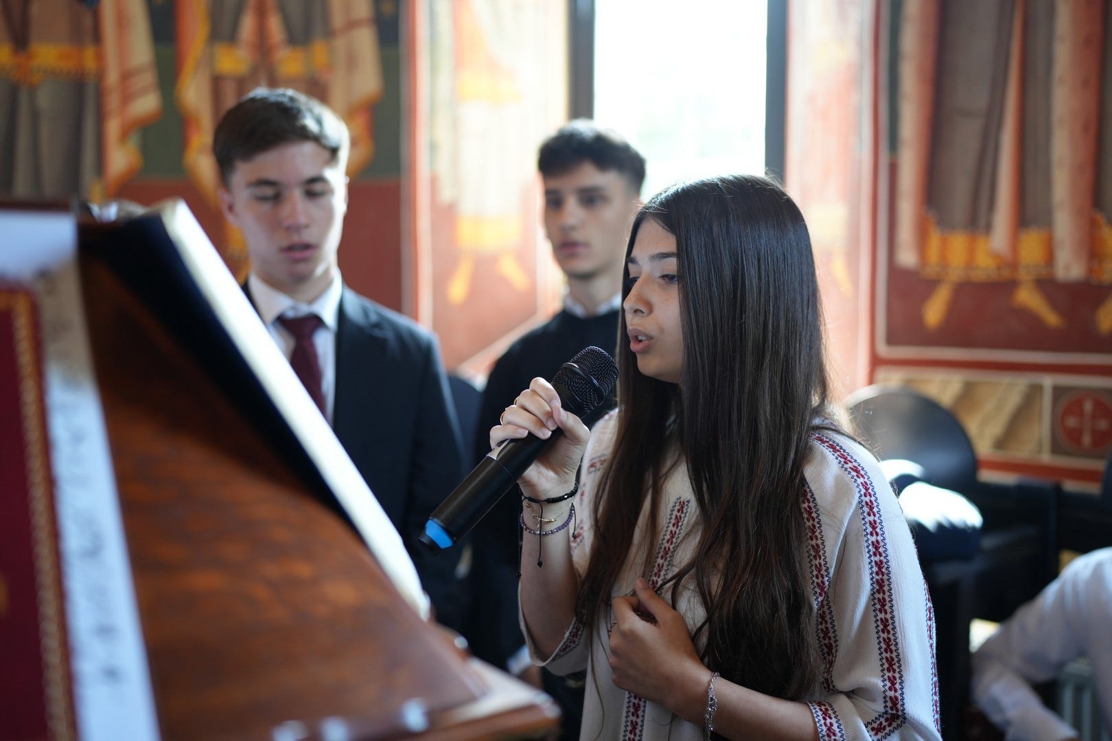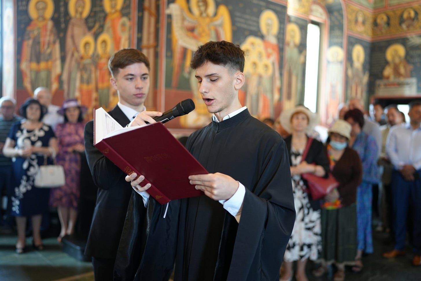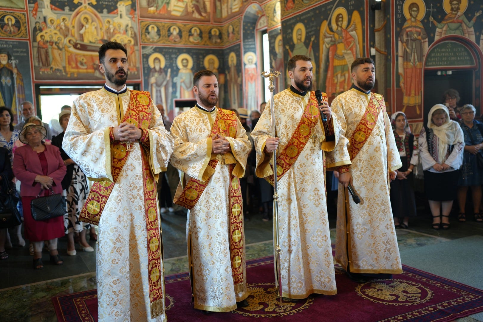 La vremea împărtășirii slujitorilor, două tinere, Bombardezi Bruna Efremia și Daria Stoean, au interpretat pricesne și cântări religioase, impresionând numeroșii credincioși care au participat cu evlavie la acest moment istoric din viața comunității.