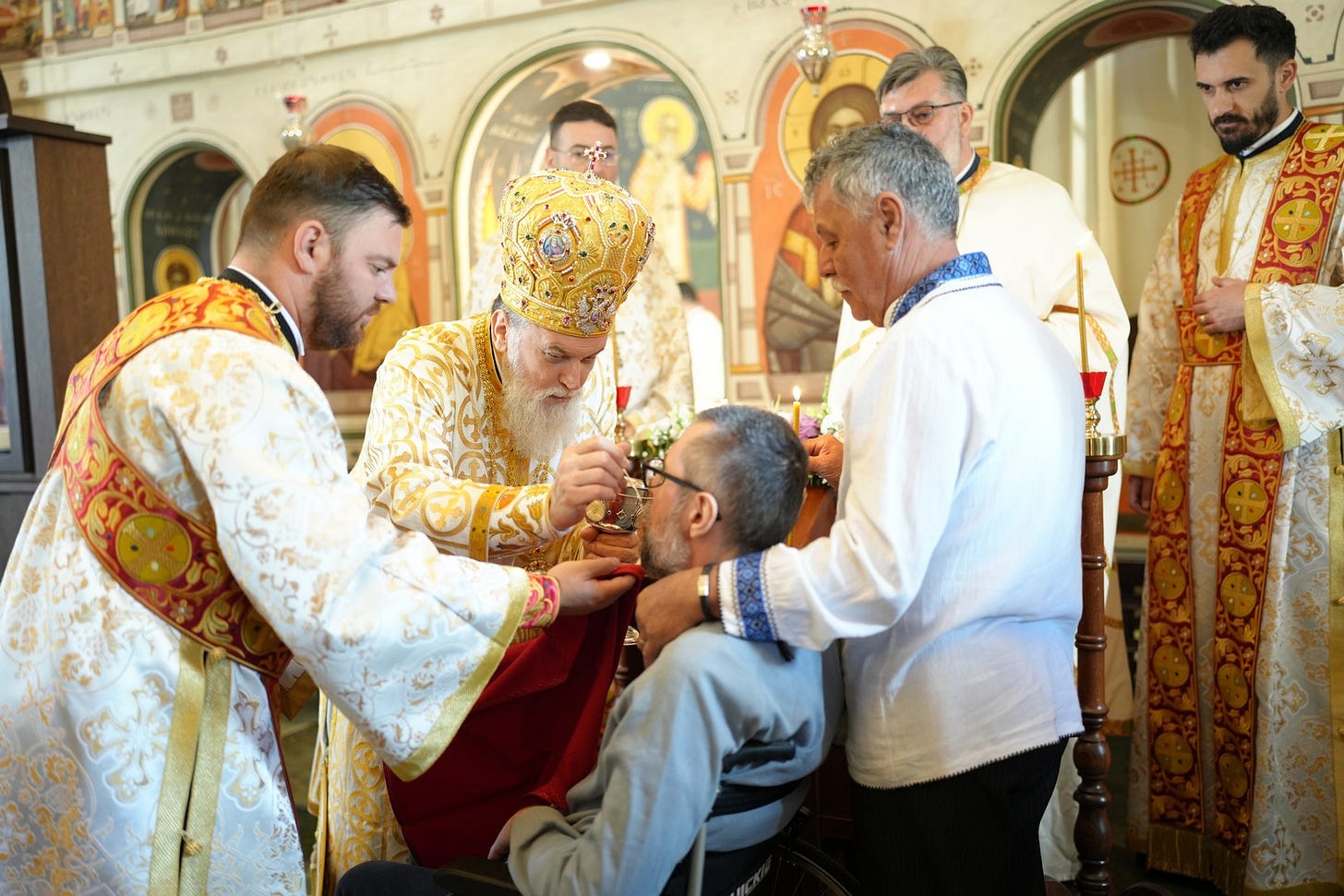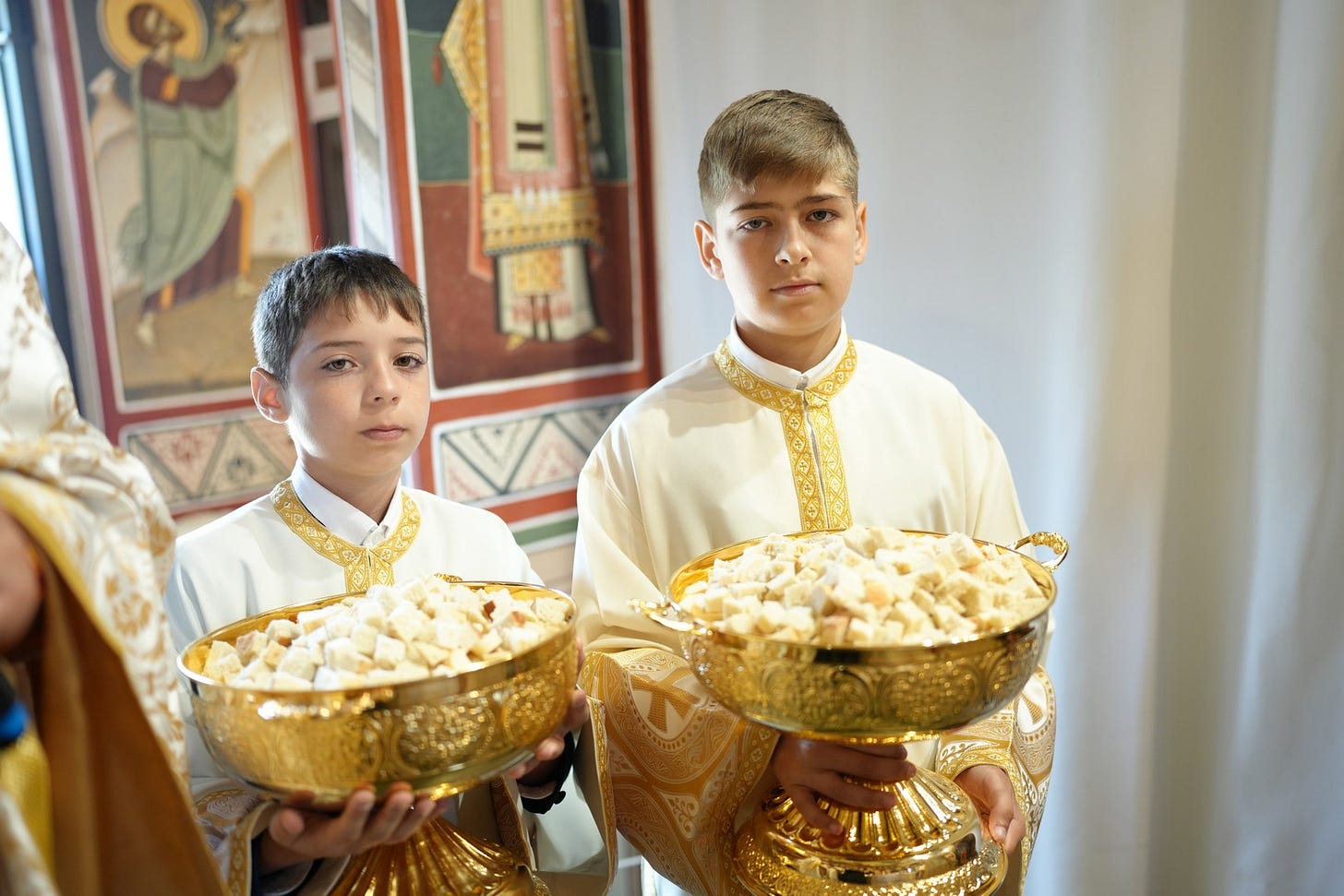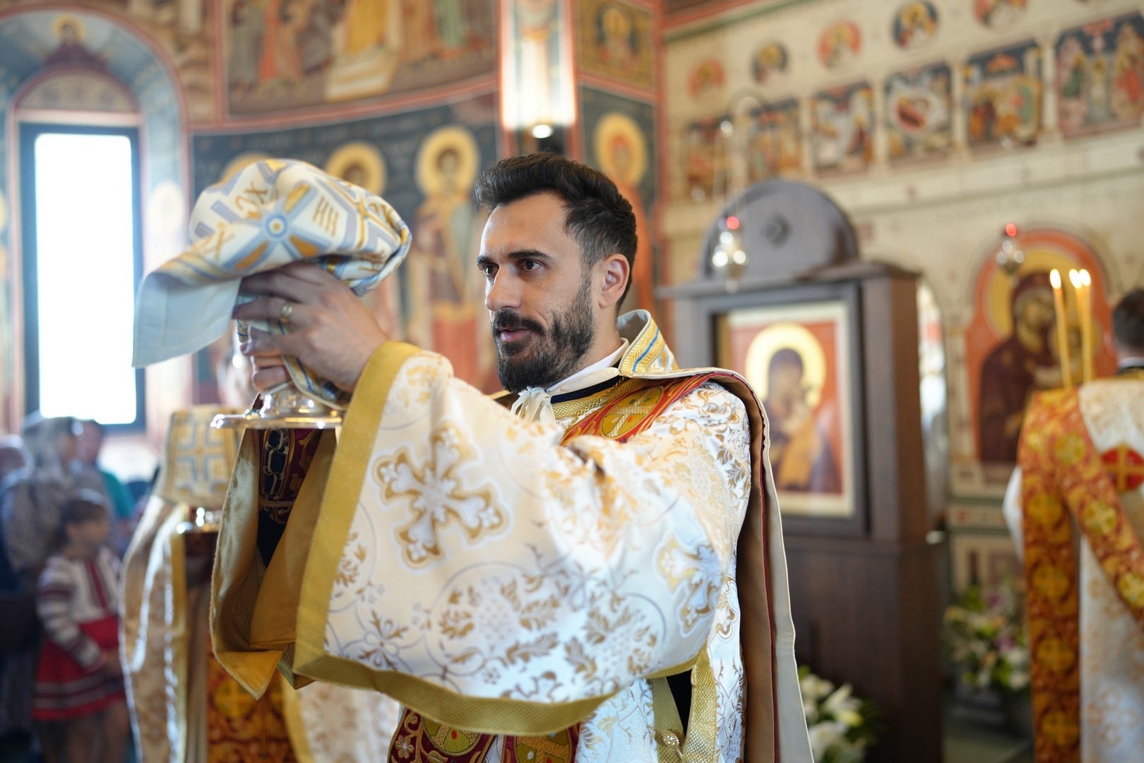 La vremea împărtășirii slujitorilor, două tinere, Bombardezi Bruna Efremia și Daria Stoean, au interpretat pricesne și cântări religioase, impresionând numeroșii credincioși care au participat cu evlavie la acest moment istoric din viața comunității.