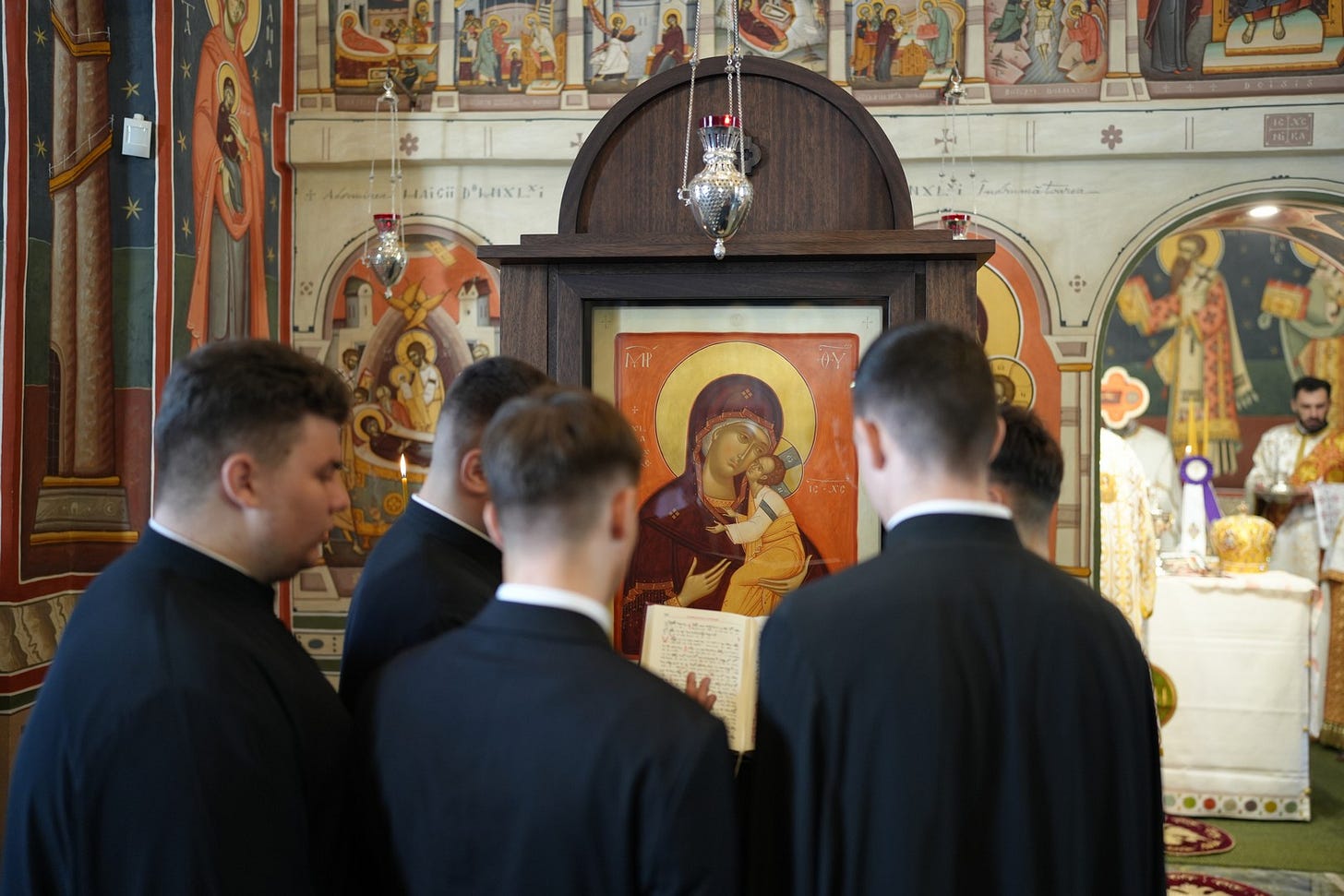 Răspunsurile liturgice au fost date de studenți, absolvenți și elevi ai Seminarului Teologic Ortodox „Sfântul Ioan Gură de Aur” din Slobozia, dirijați de studentul Cristian Andrei Brateș.