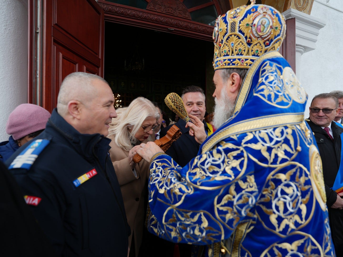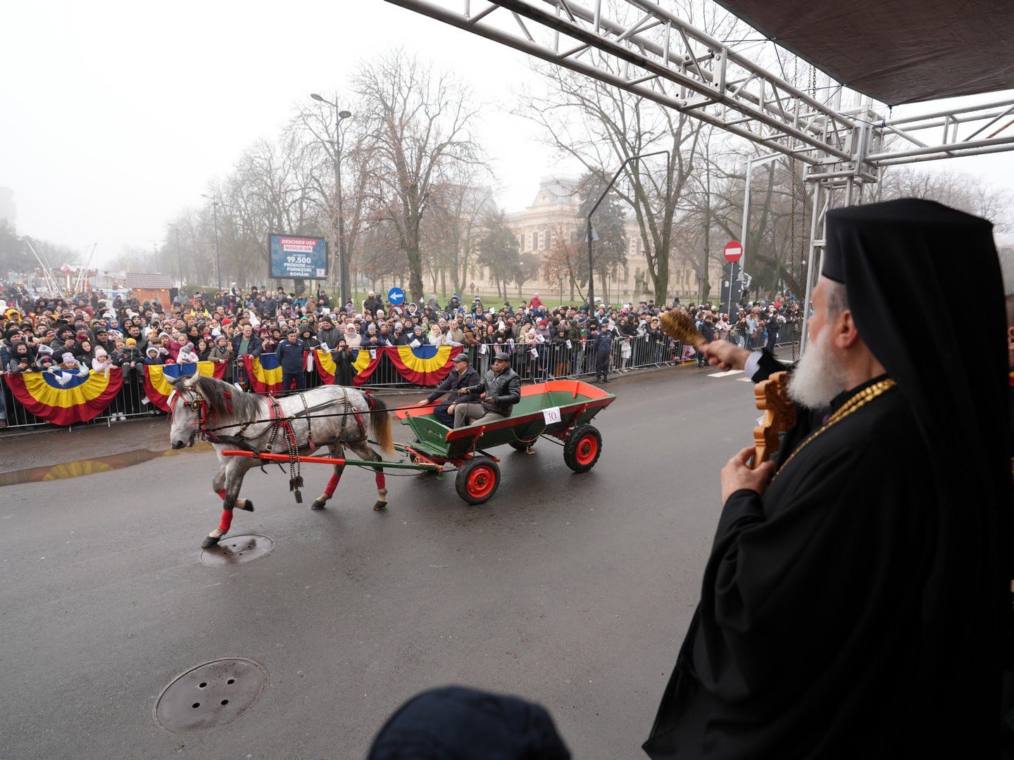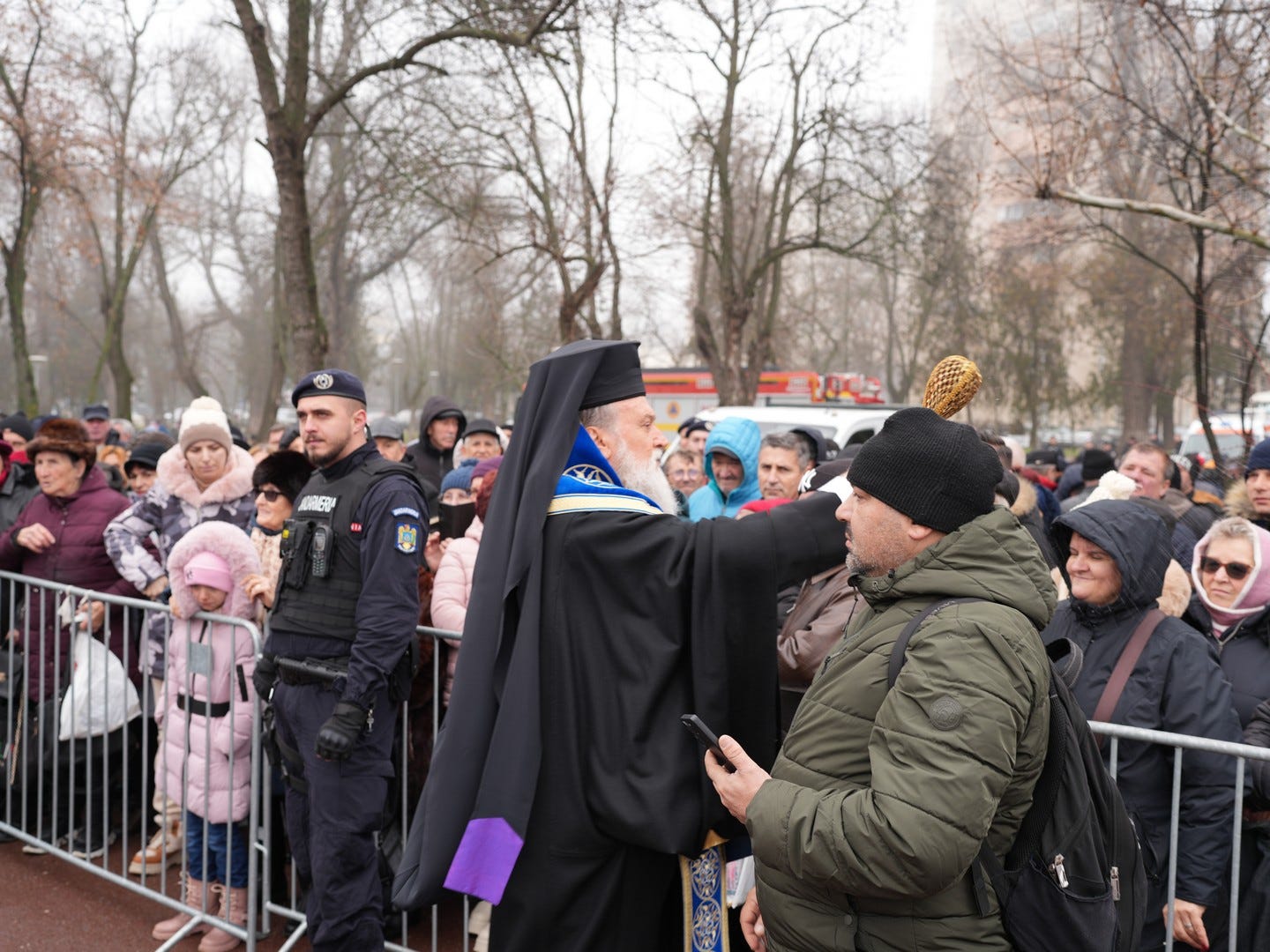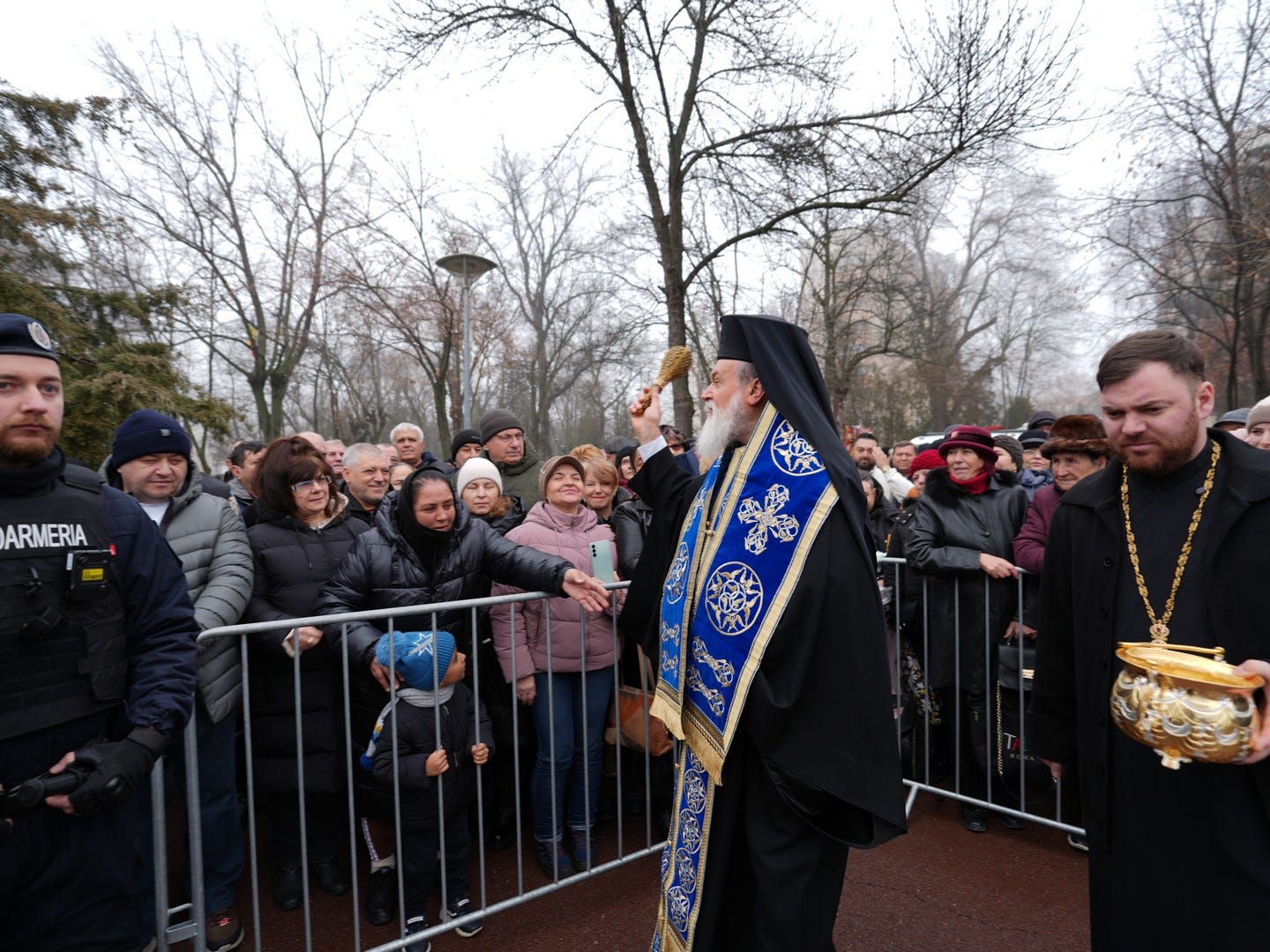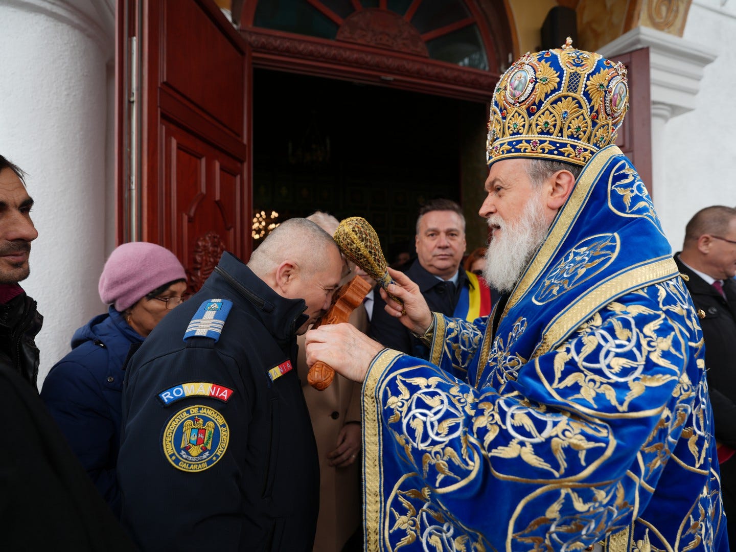 După oficierea Sfintei Liturghii, Preasfinția Sa a săvârșit slujba de sfințirea Aghesmei Mari, urmată de o procesiune în care Întâistătătorul Eparhiei noastre, soborul de preoți, mulțime de credincioși și autorități locale, județene și centrale au pornit până pe malul Dunării, în Parcul Central al municipiului Călărași, unde așteptau mii de călărășeni sărbătorile organizate cu ocazia praznicului Botezului Domnului.