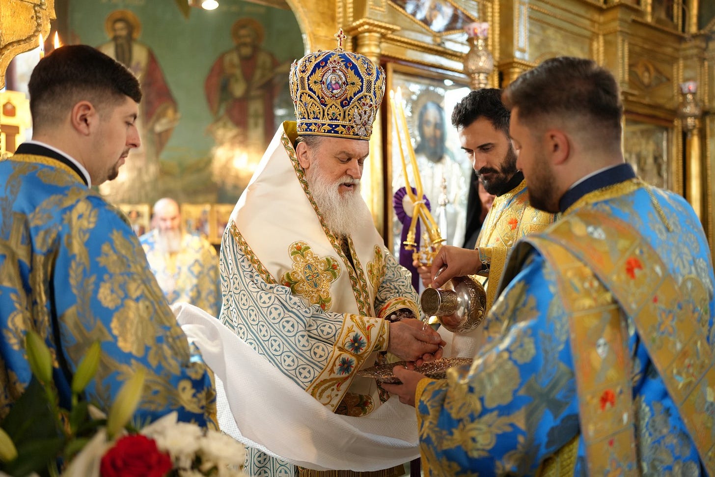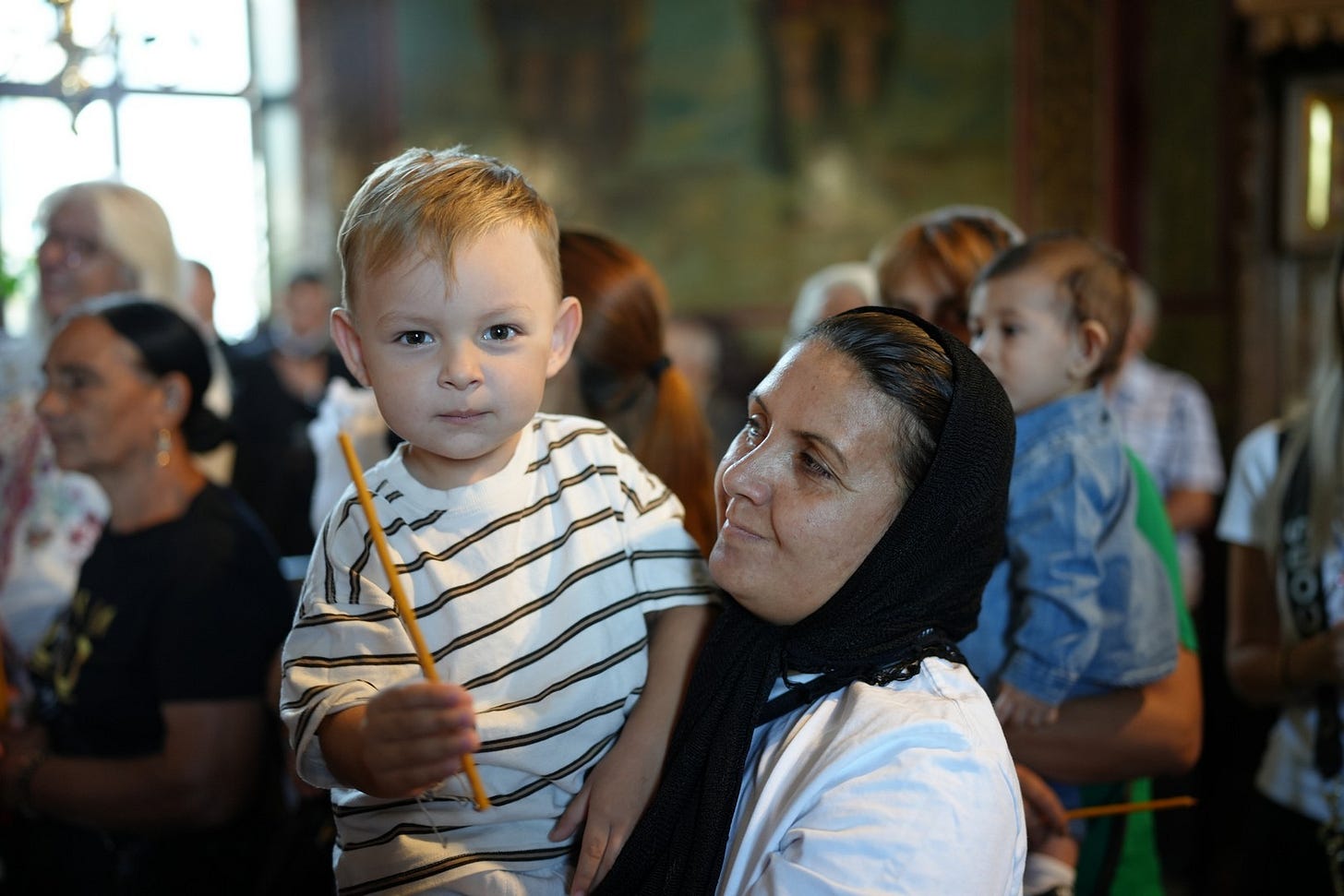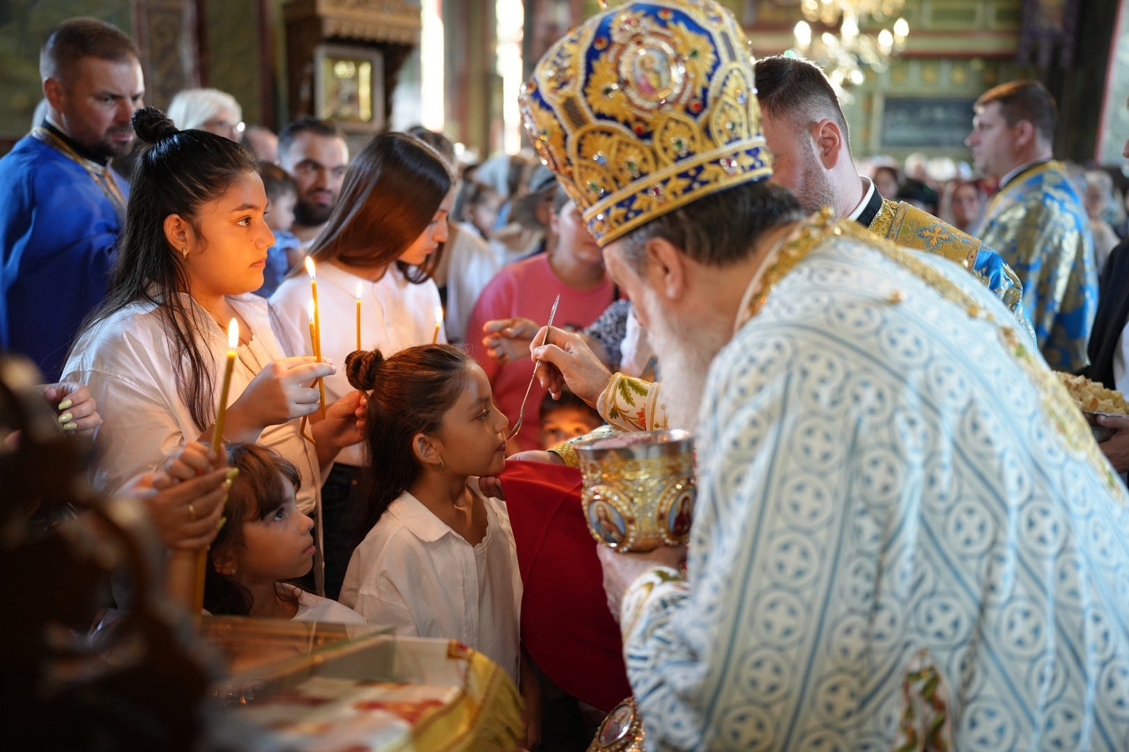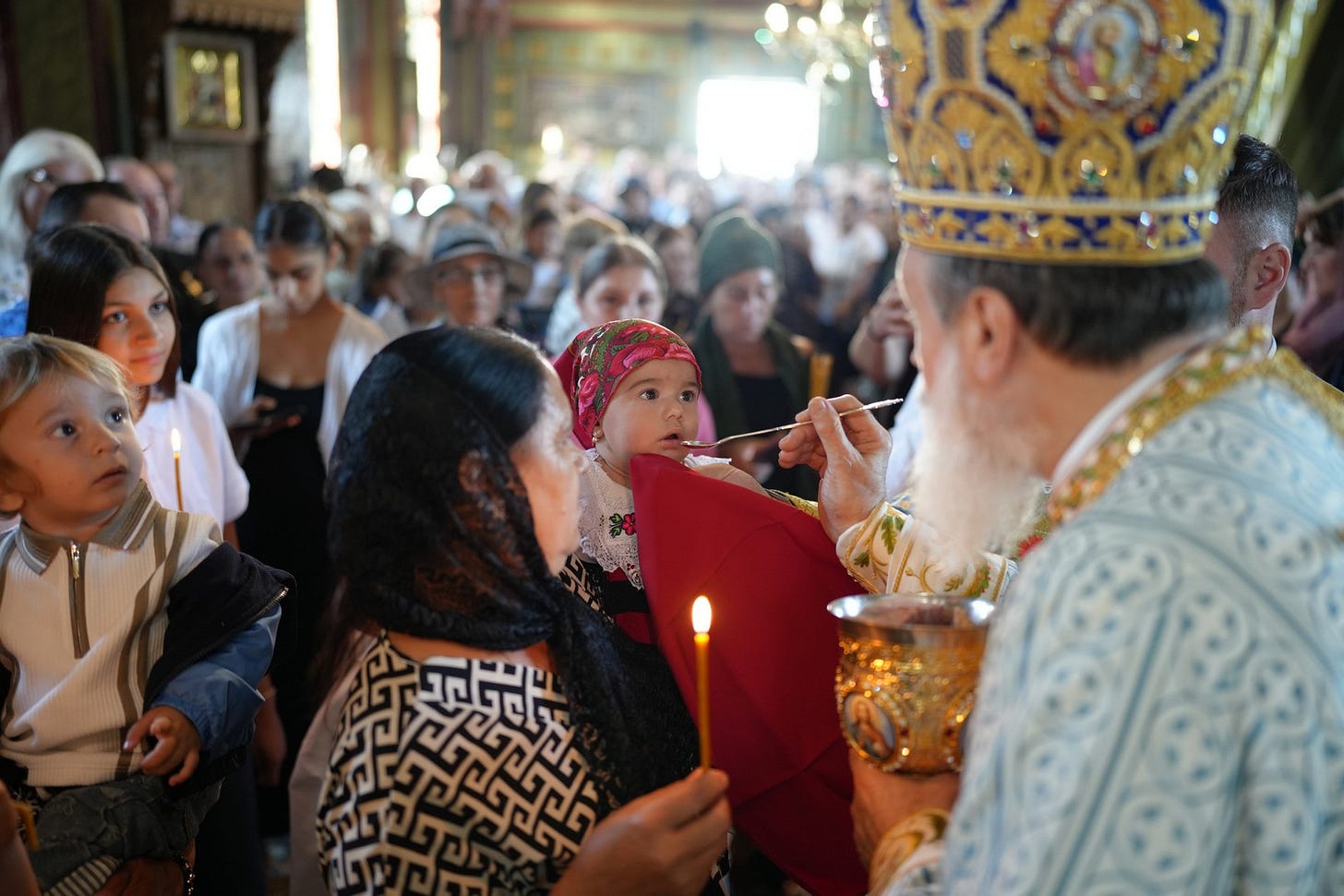 Preasfinția Sa a împărtășit un număr mare de copii, prezenți la Sfânta Liturghie.