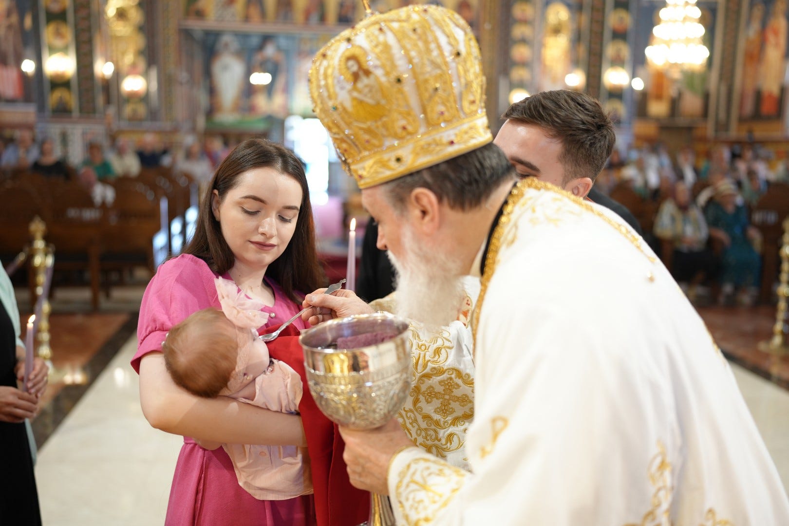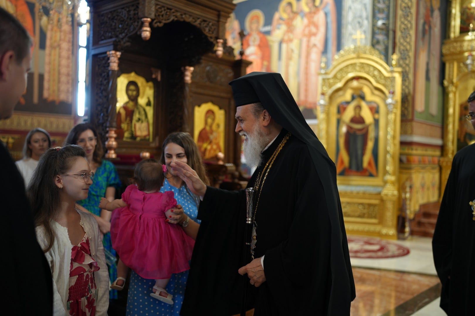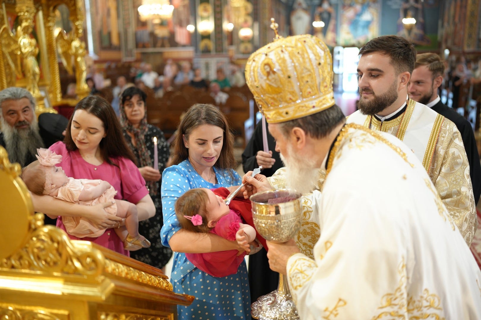 La momentul potrivit, Preasfinția Sa a împărtășit cu Trupul și Sângele Mântuitorului copiii prezenți și pe adulții care au primit dezlegare de la duhovnic.