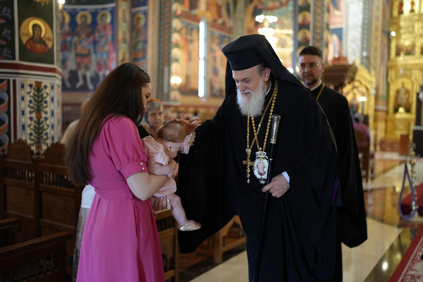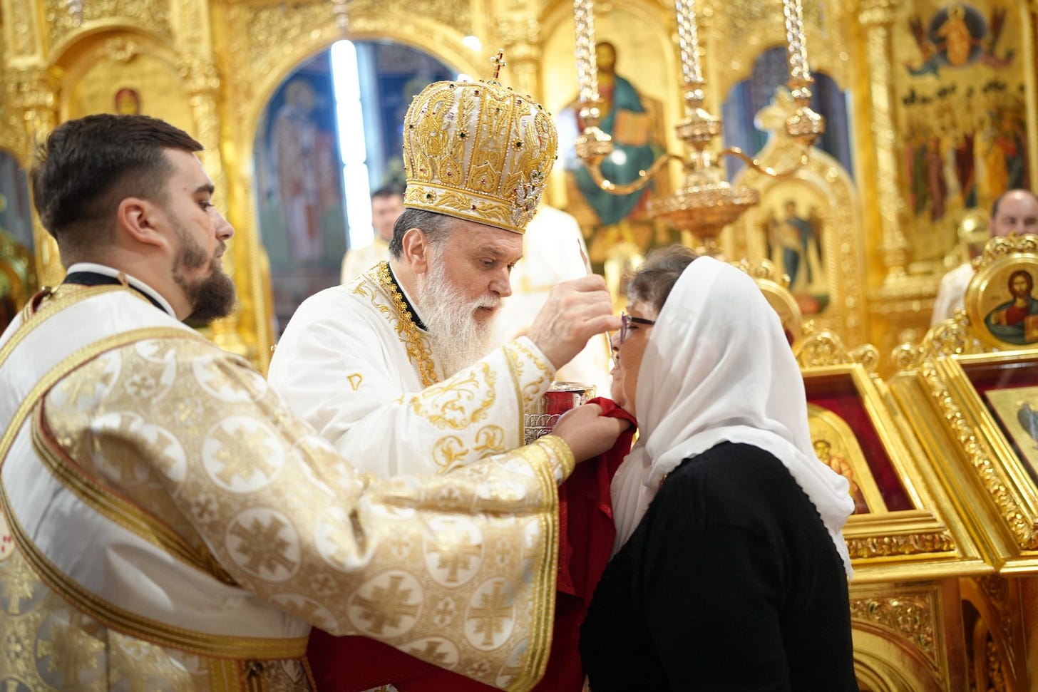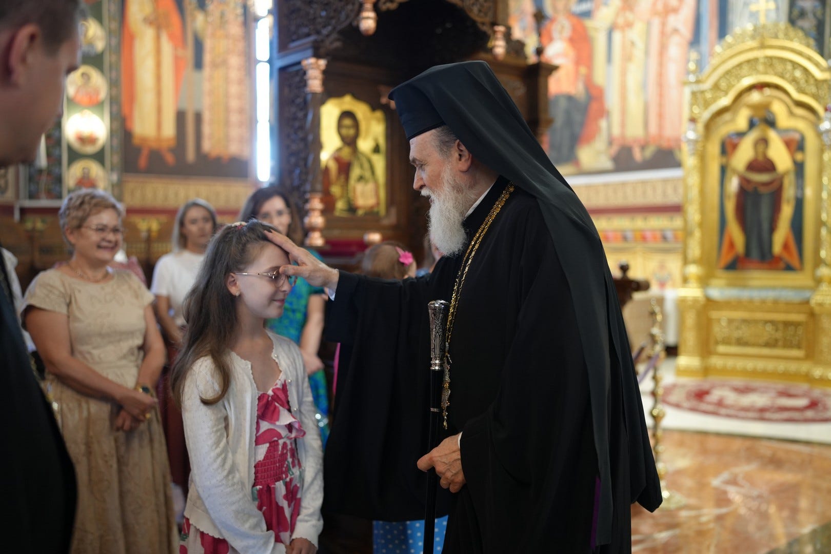 La momentul potrivit, Preasfinția Sa a împărtășit cu Trupul și Sângele Mântuitorului copiii prezenți și pe adulții care au primit dezlegare de la duhovnic.