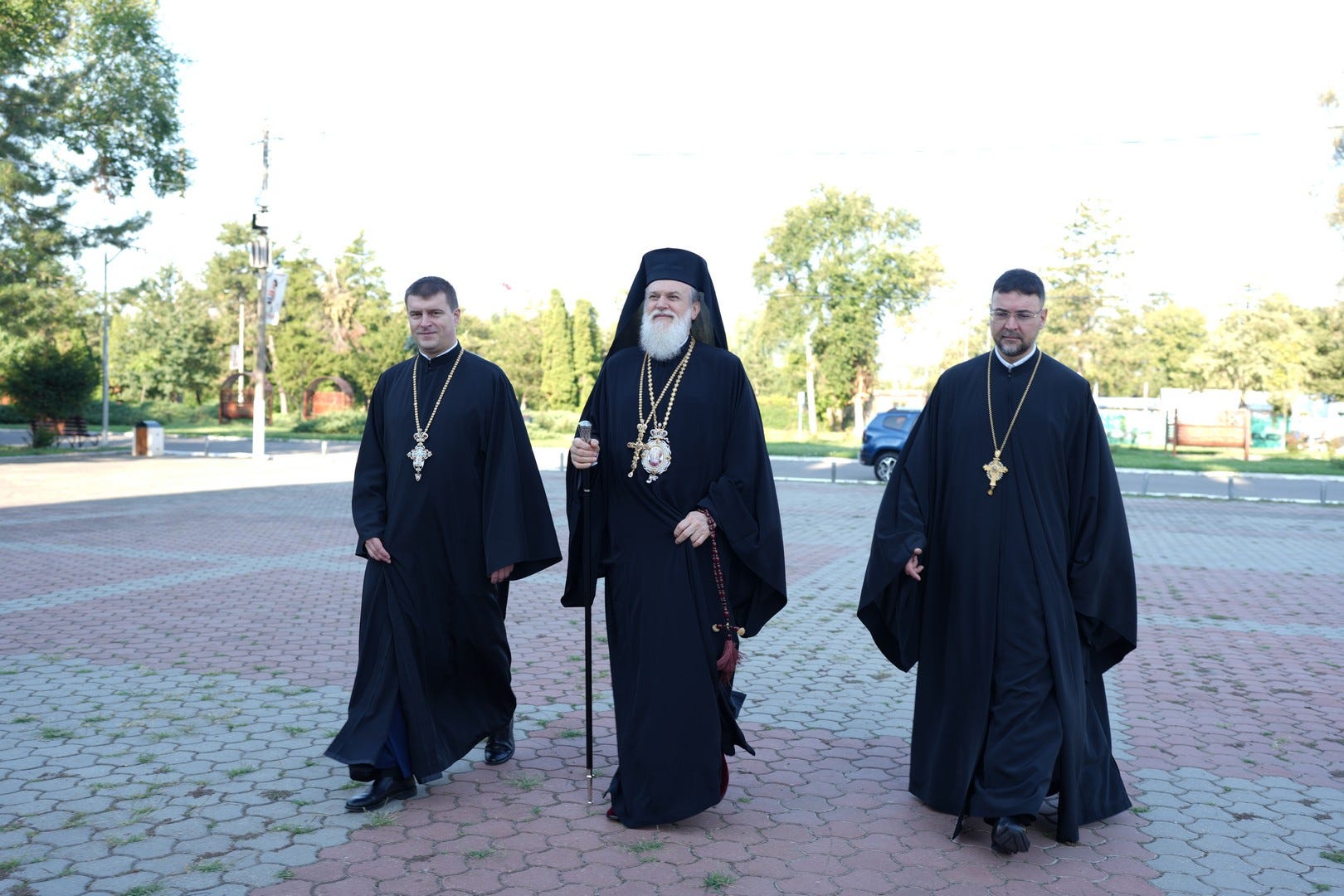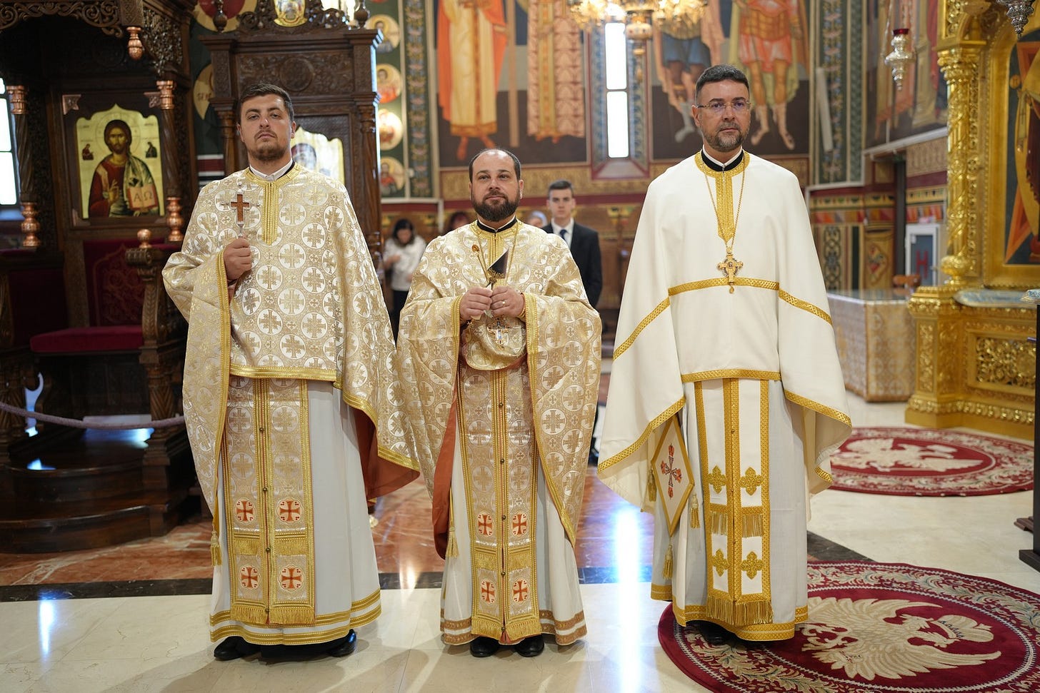 Sub protia Preasfinției Sale au slujit preacucernicii părinți consilieri Florin Ionescu, Marius Gabriel Purcărea și Andrei Cornel Petre, preoții slujitori ai Catedralei Episcopale, arhidiaconi și diaconi.