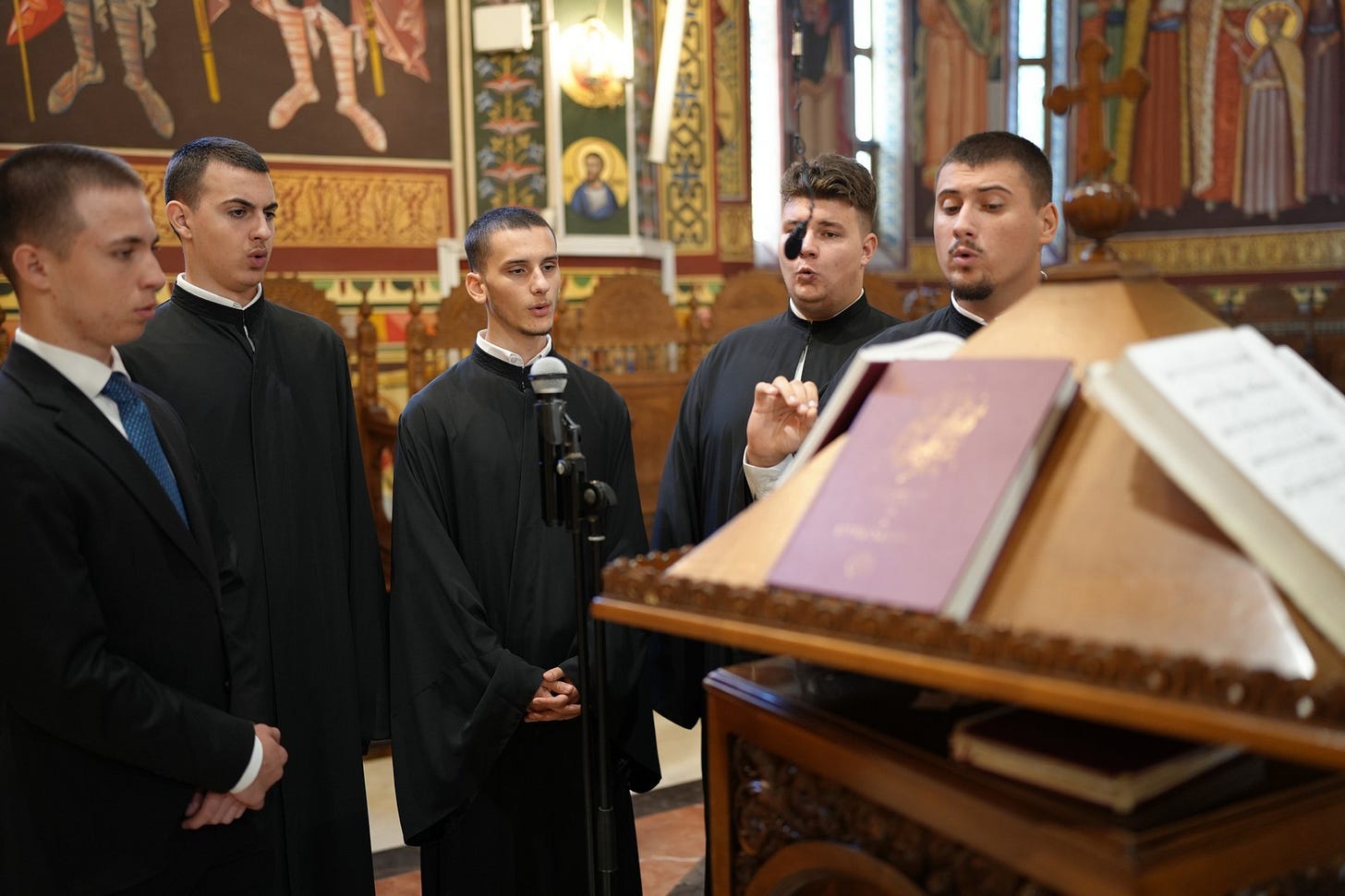 Răspunsurile liturgice au fost date de studenți și elevi ai Seminarului Teologic Ortodox „Sfântul Ioan Gură de Aur” din Slobozia, dirijați de studentul Cristian Andrei Brateș.