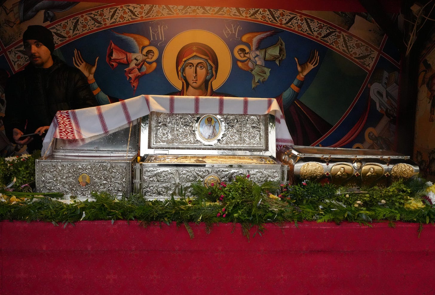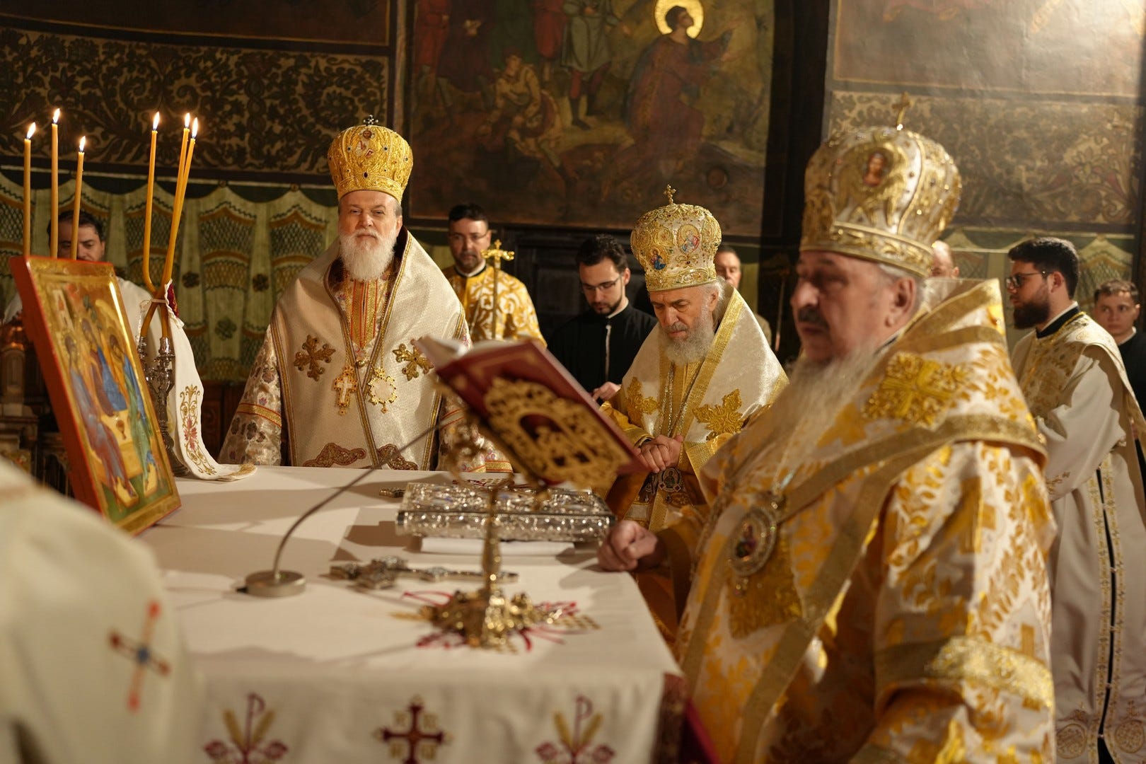 Înainte de Sfânta Liturghie, ierarhii prezenți s-au închinat mai întâi la racla ce adăpostește un fragment din moaștele Sfântului Apostol Andrei, așezată spre venerare în baldachinul de lângă Catedrala Arhiepiscopală, precum și la moaștele Sfântului Ierarh Calinic de la Cernica, ale Sfinților Tămăduitori Pantelimon, Efrem cel Nou, Nectarie de la Eghina și Luca al Crimeei.