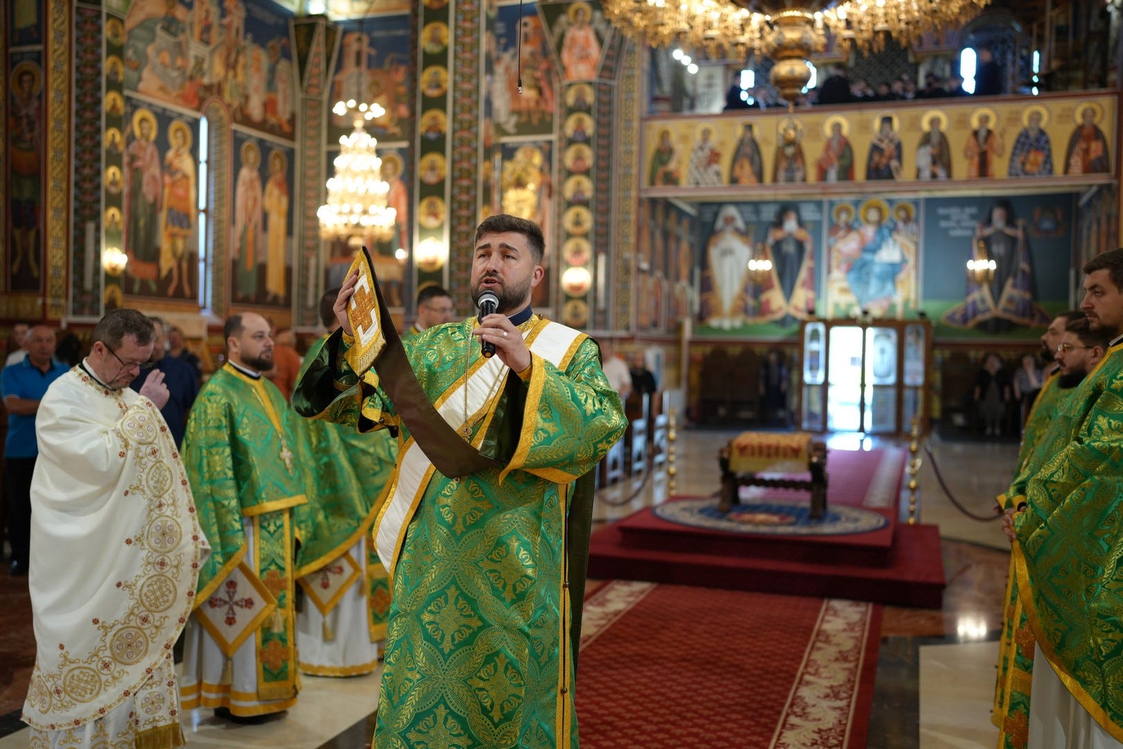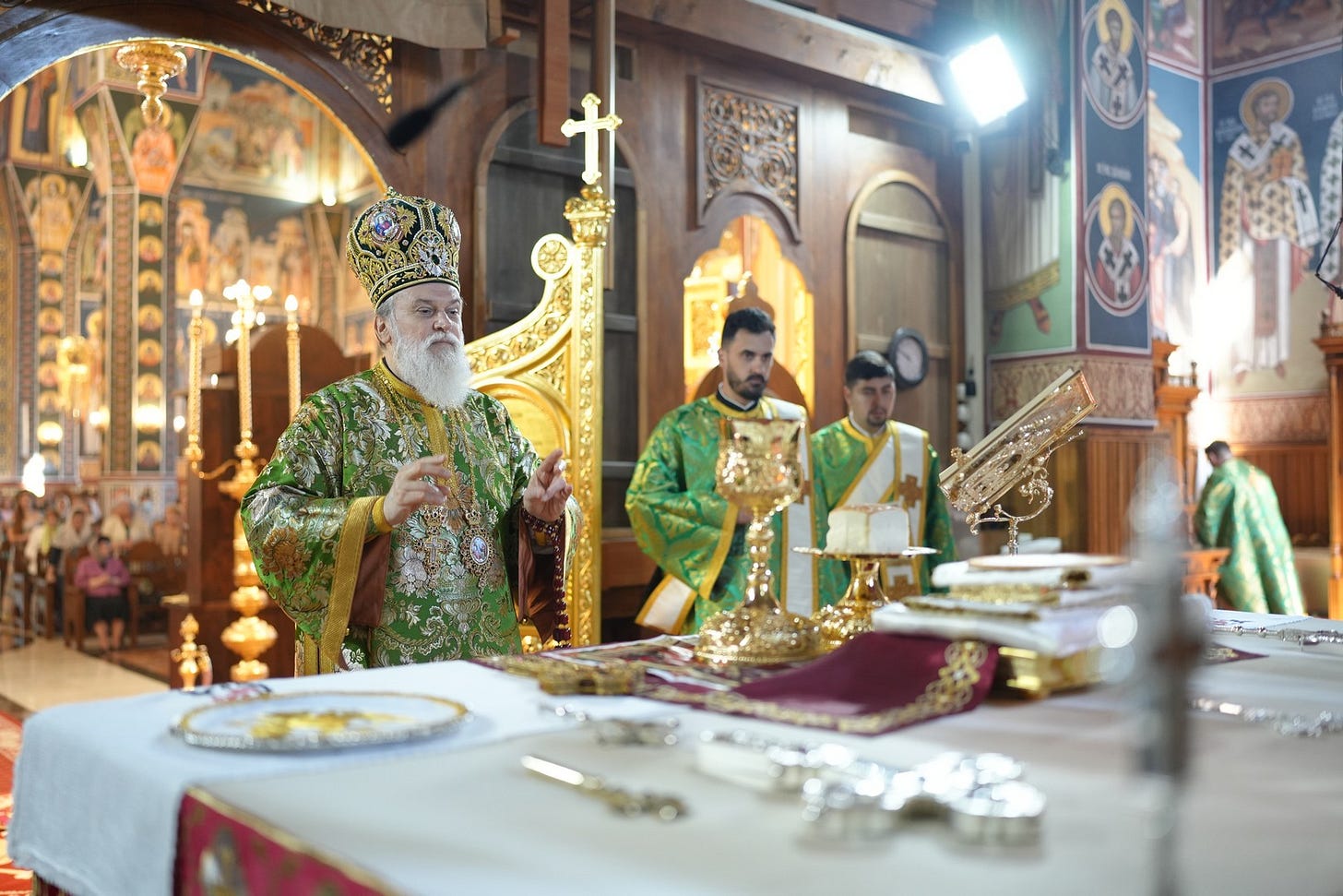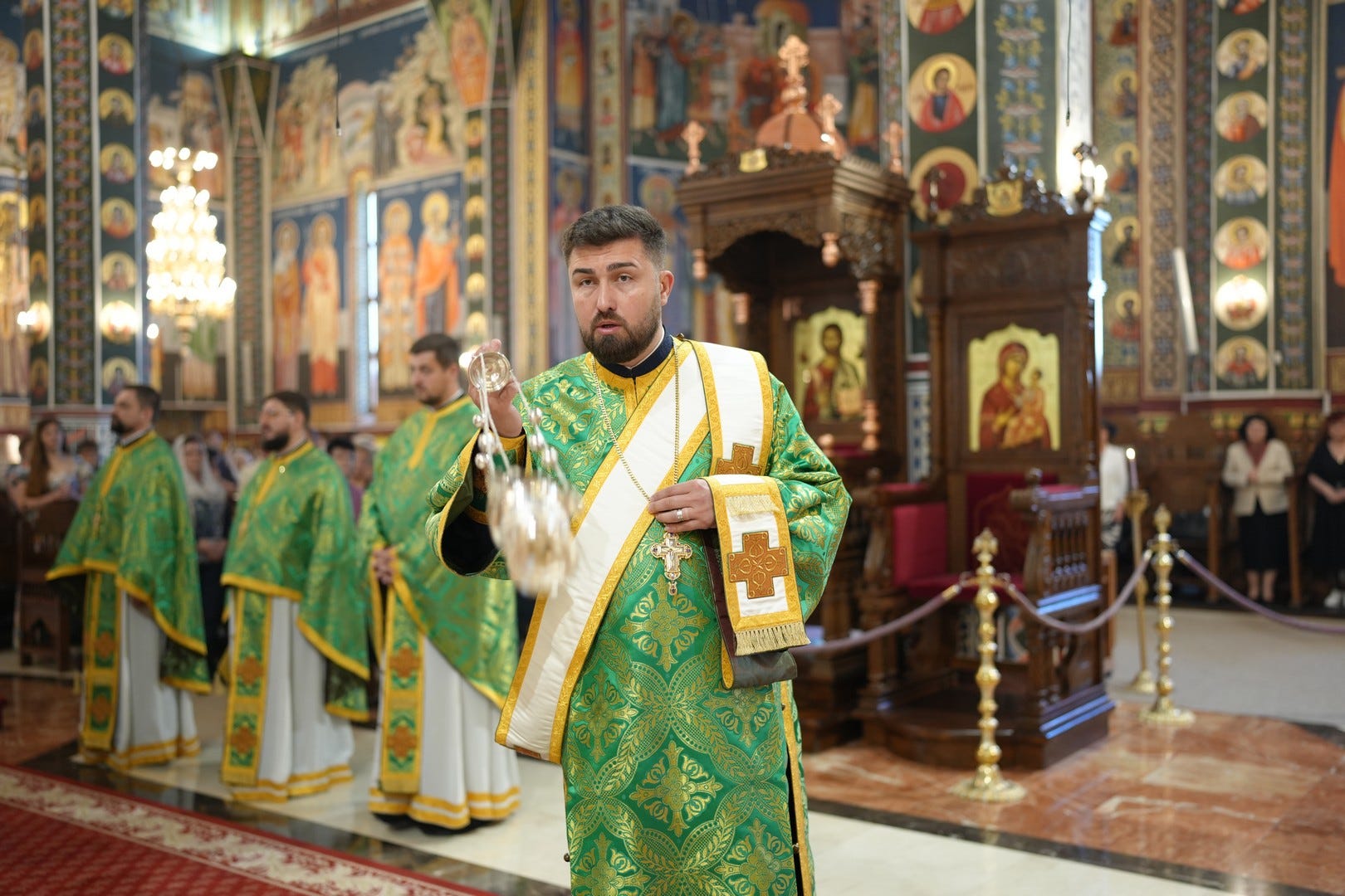 Duminică, 8 iunie 2025, de praznicul Pogorârii Sfântului Duh, Preasfințitul Părinte Episcop Vincențiu a săvârșit Sfânta Liturghie Arhierească la Catedrala Episcopală „Înălțarea Domnului” din Slobozia, înconjurat de un sobor de preoți și diaconi.