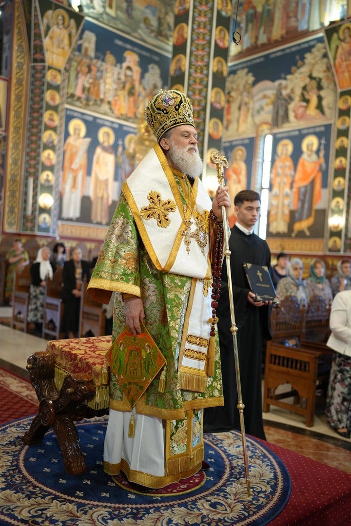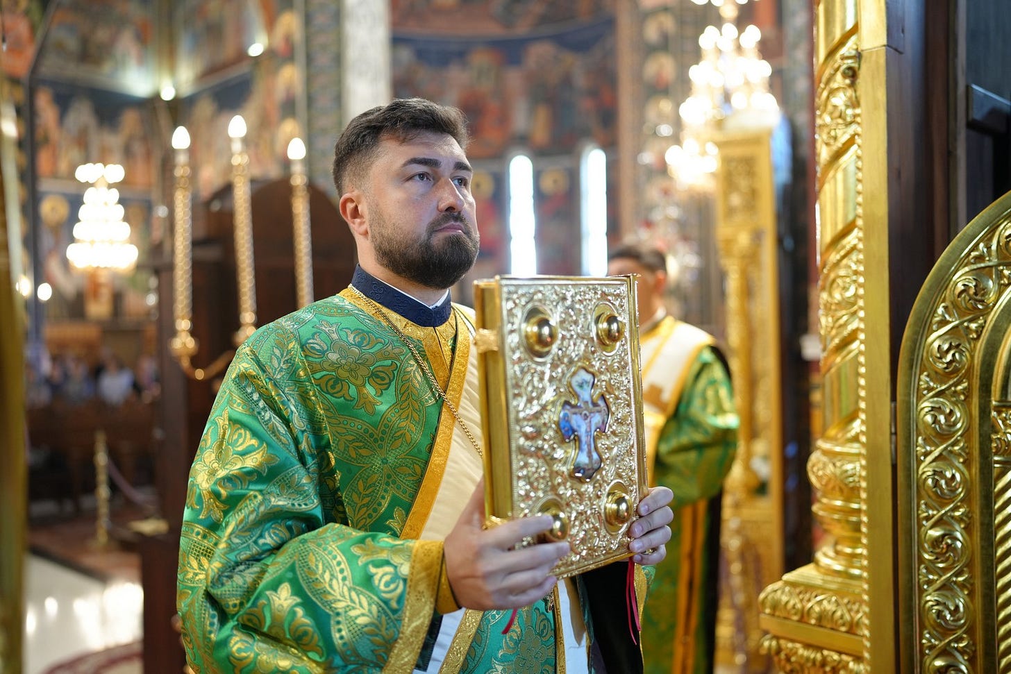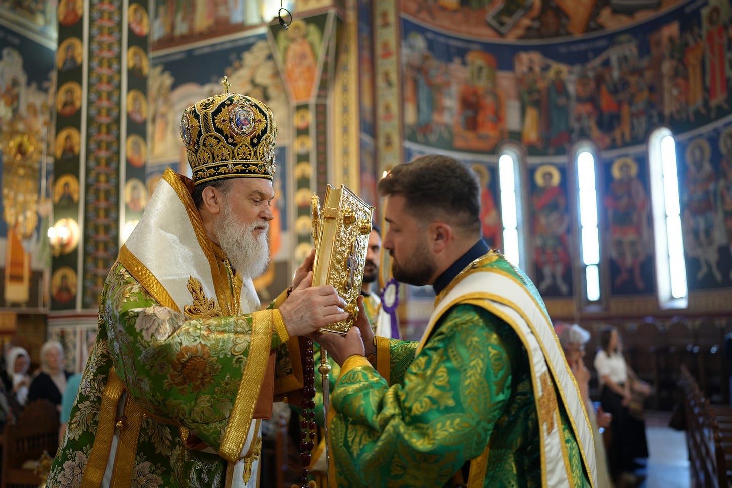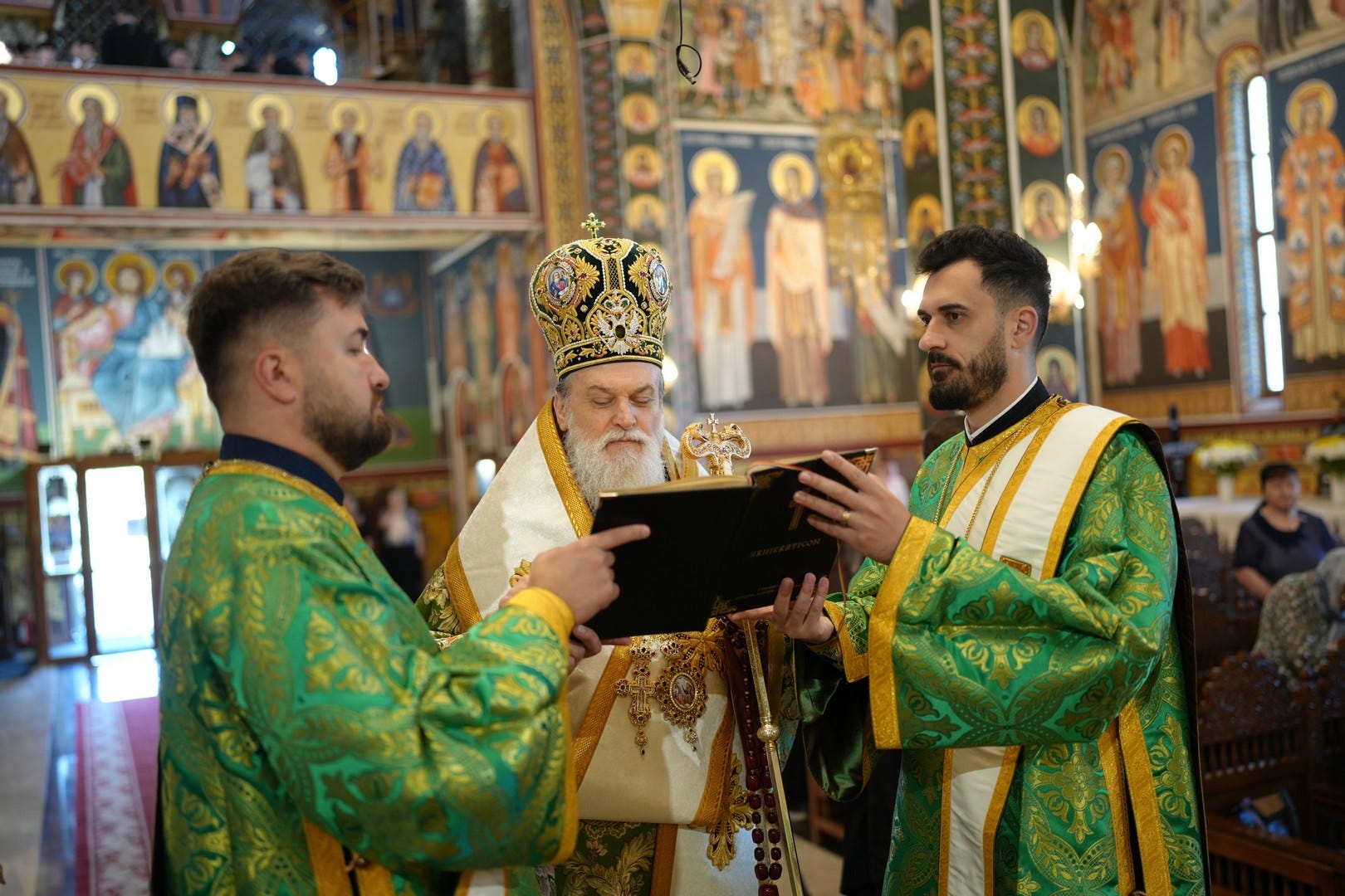 Duminică, 8 iunie 2025, de praznicul Pogorârii Sfântului Duh, Preasfințitul Părinte Episcop Vincențiu a săvârșit Sfânta Liturghie Arhierească la Catedrala Episcopală „Înălțarea Domnului” din Slobozia, înconjurat de un sobor de preoți și diaconi.